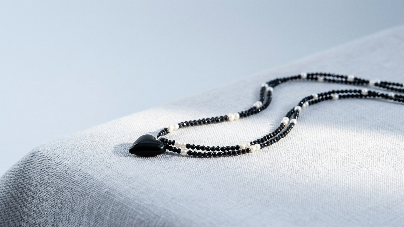 ラピスラズリと淡水パールが静かに輝き、ひと粒ごとの個性があなたらしさを引き立てます。