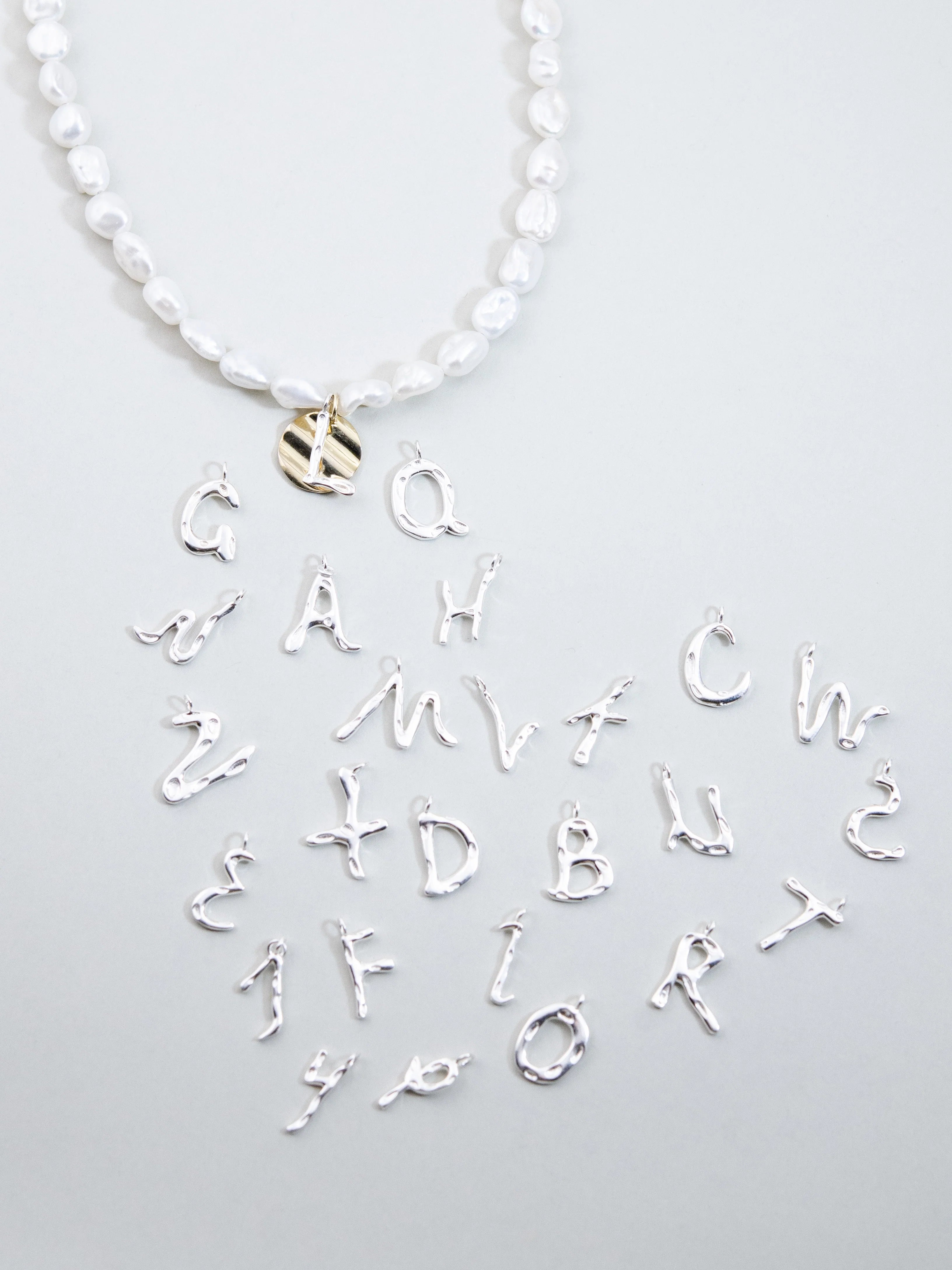 淡水パール & イニシャル ネックレス - 【選べるアルファベット】金銀ミックス / 6月誕生石 SV925 (K14GP)