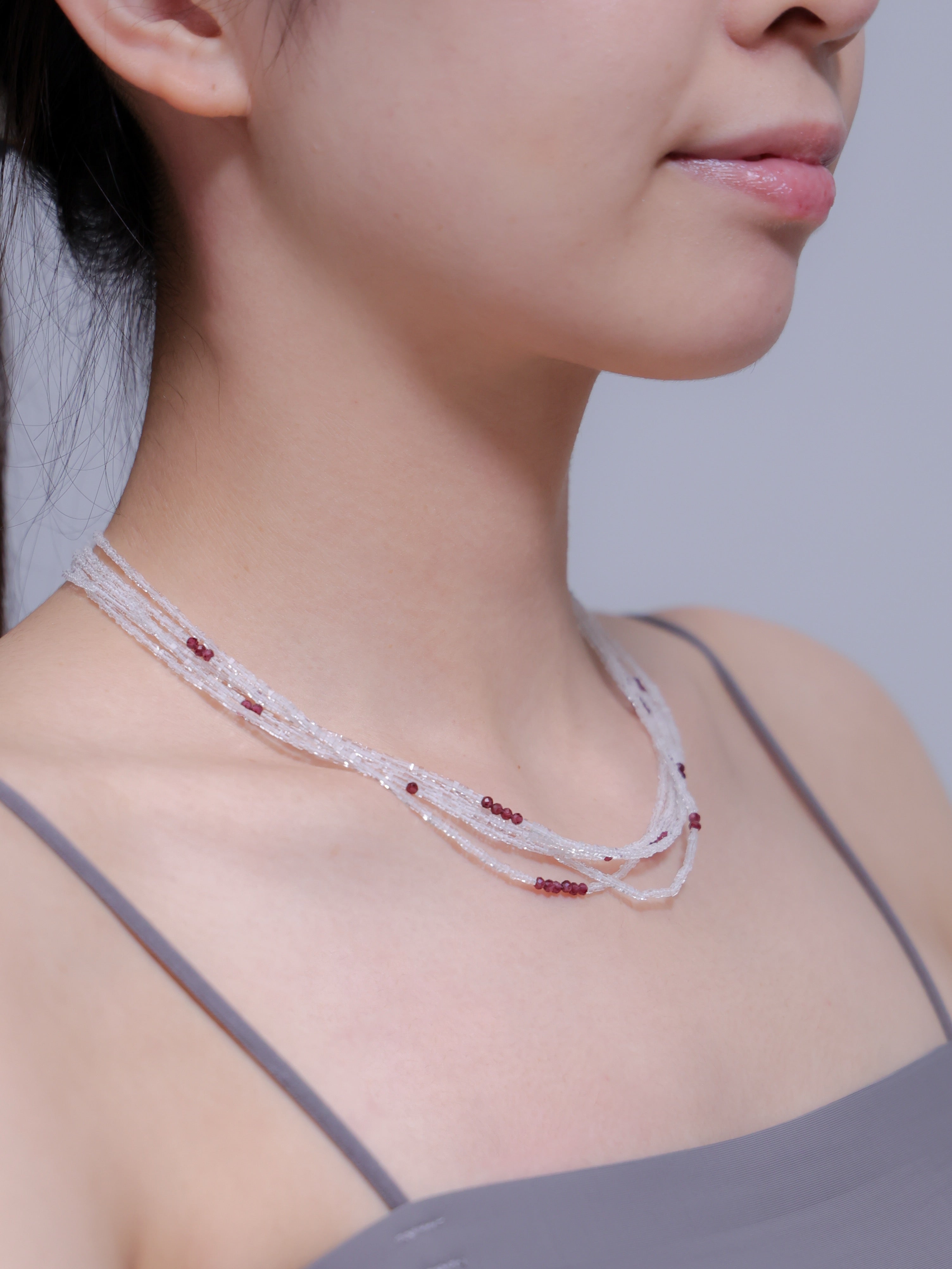 ガーネット 水晶 5連 ネックレス | 華奢 レイヤード SV925