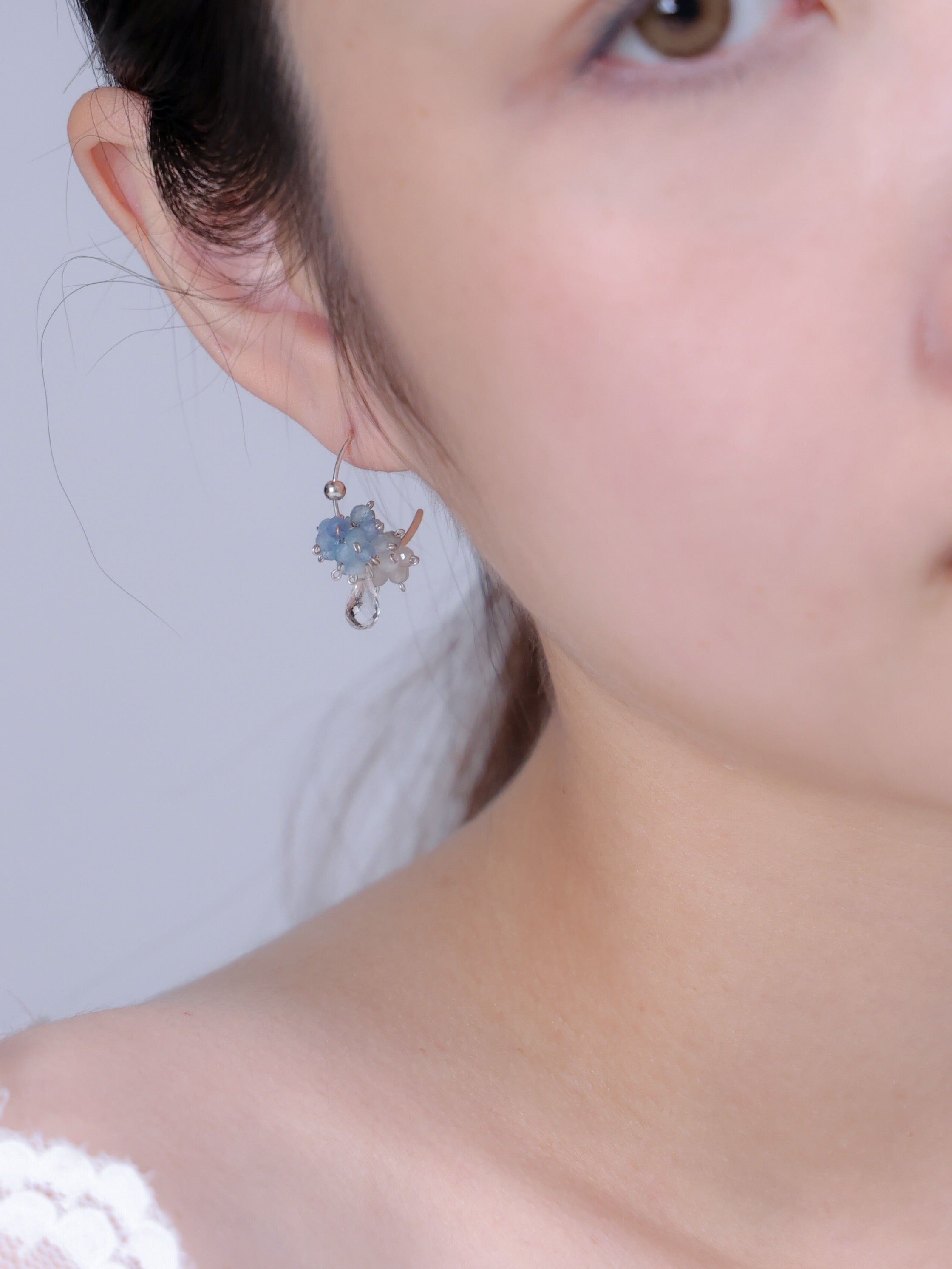 【3月誕生石】アクアマリン & クリスタル フープピアス | 氷の雫・アシンメトリー (SV925)