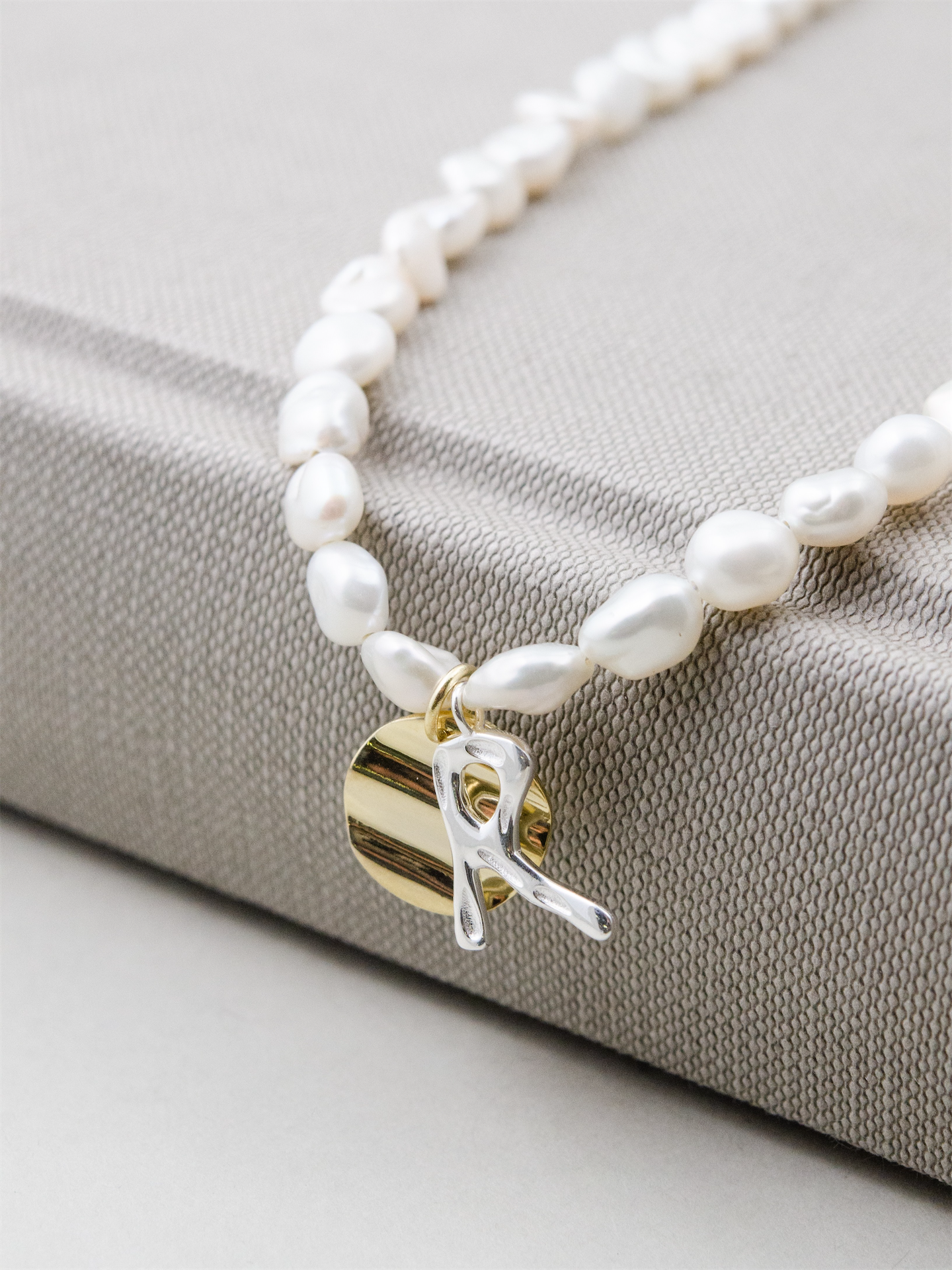 淡水パール & イニシャル ネックレス - 【選べるアルファベット】金銀ミックス / 6月誕生石 SV925 (K14GP)