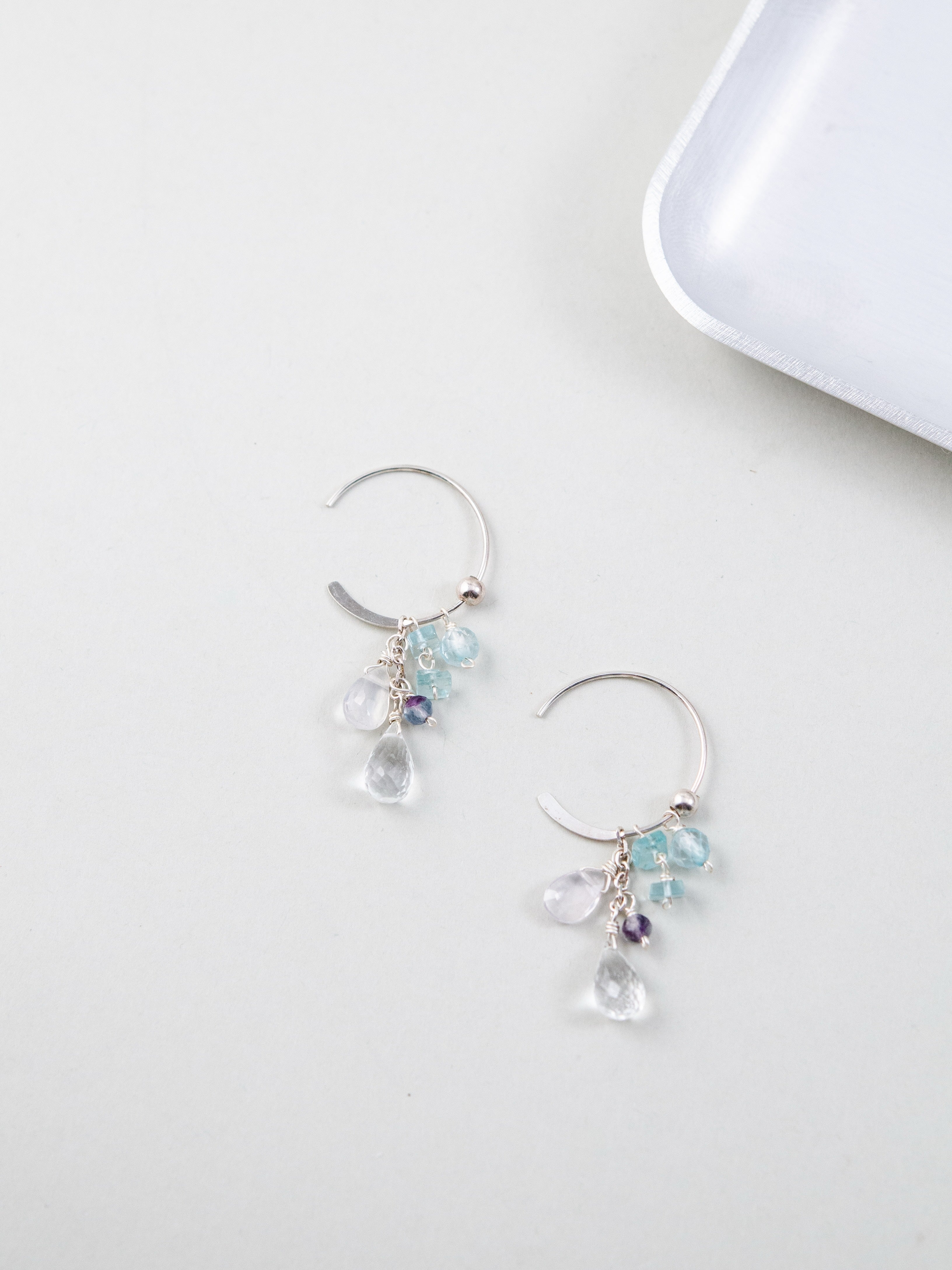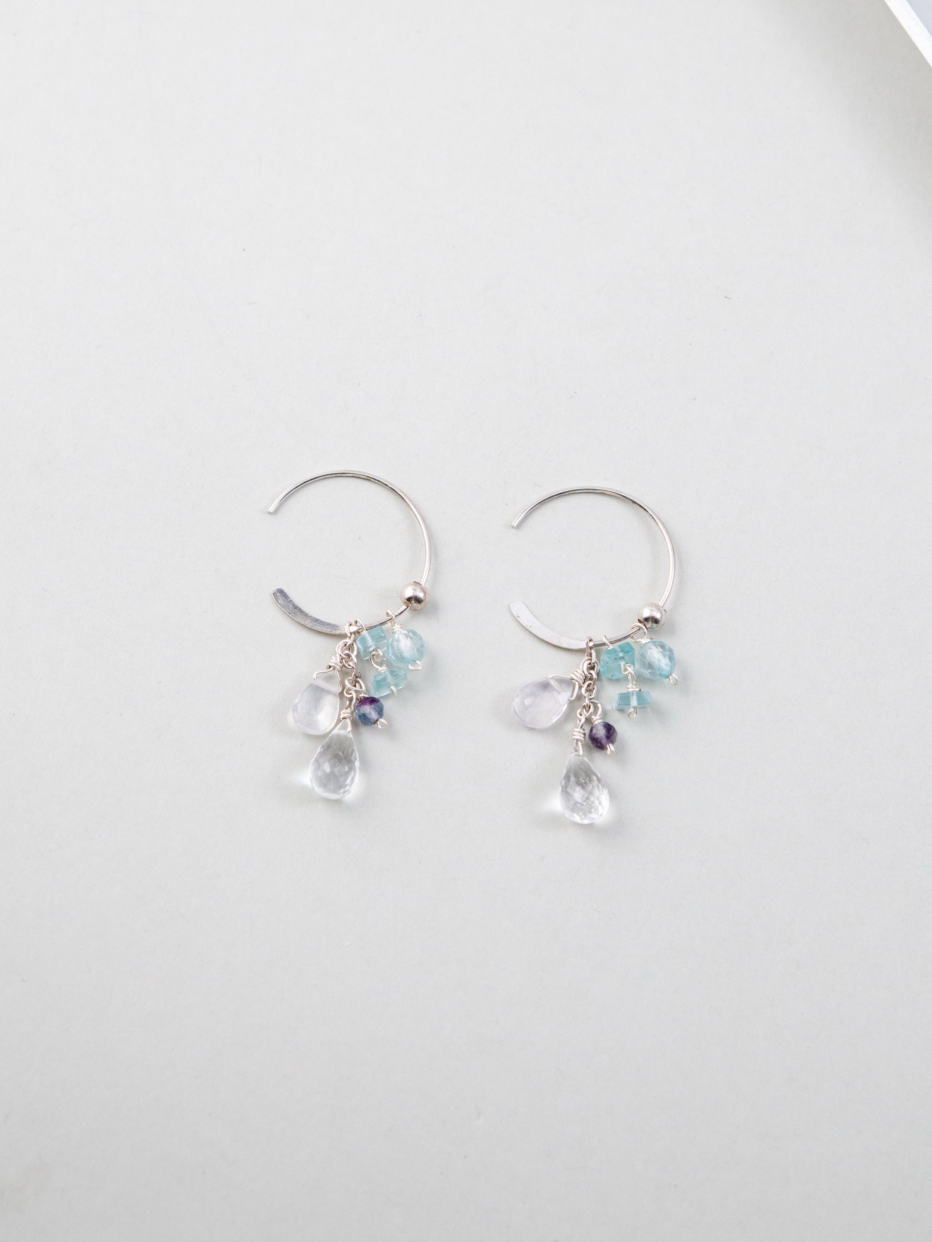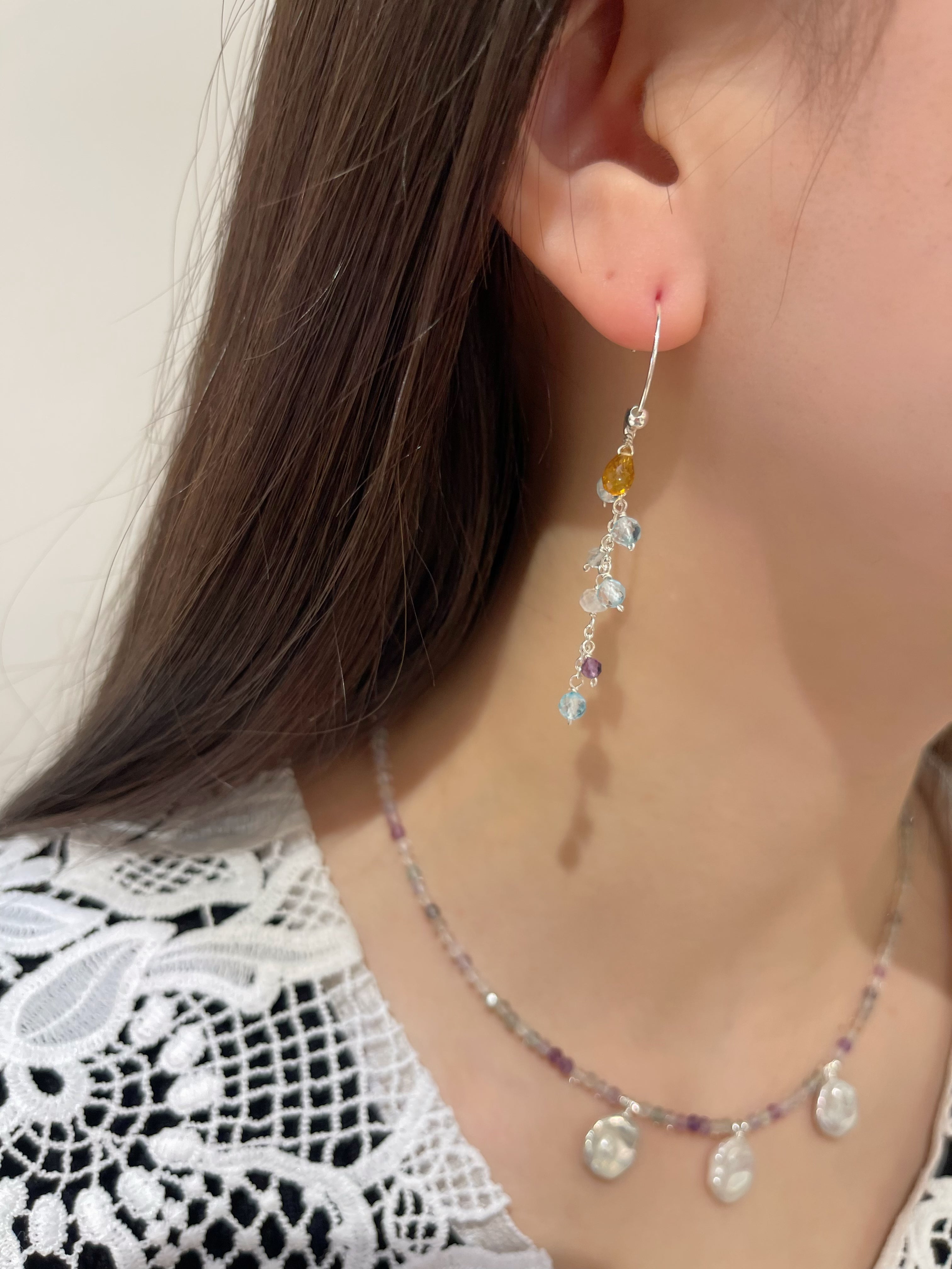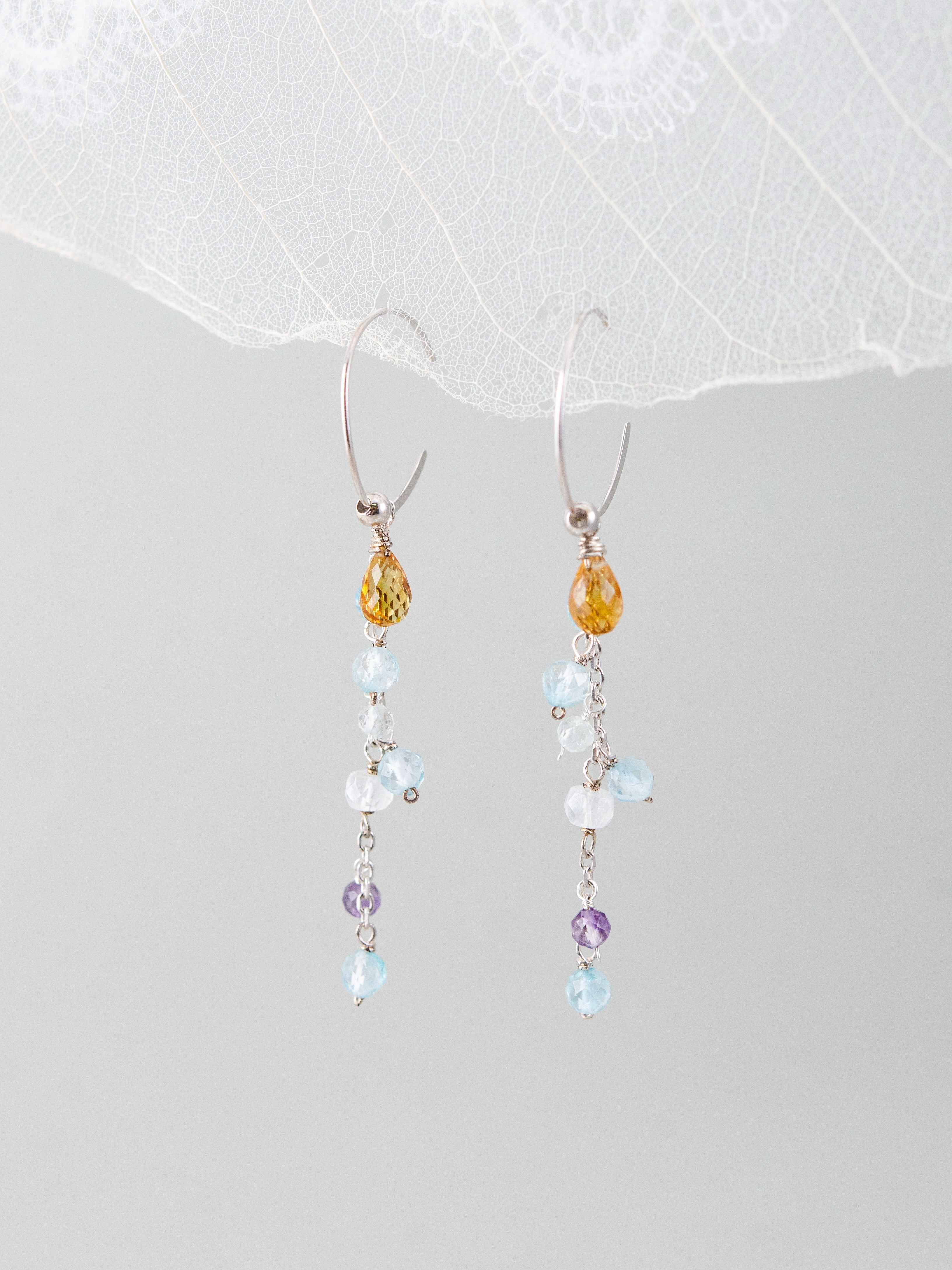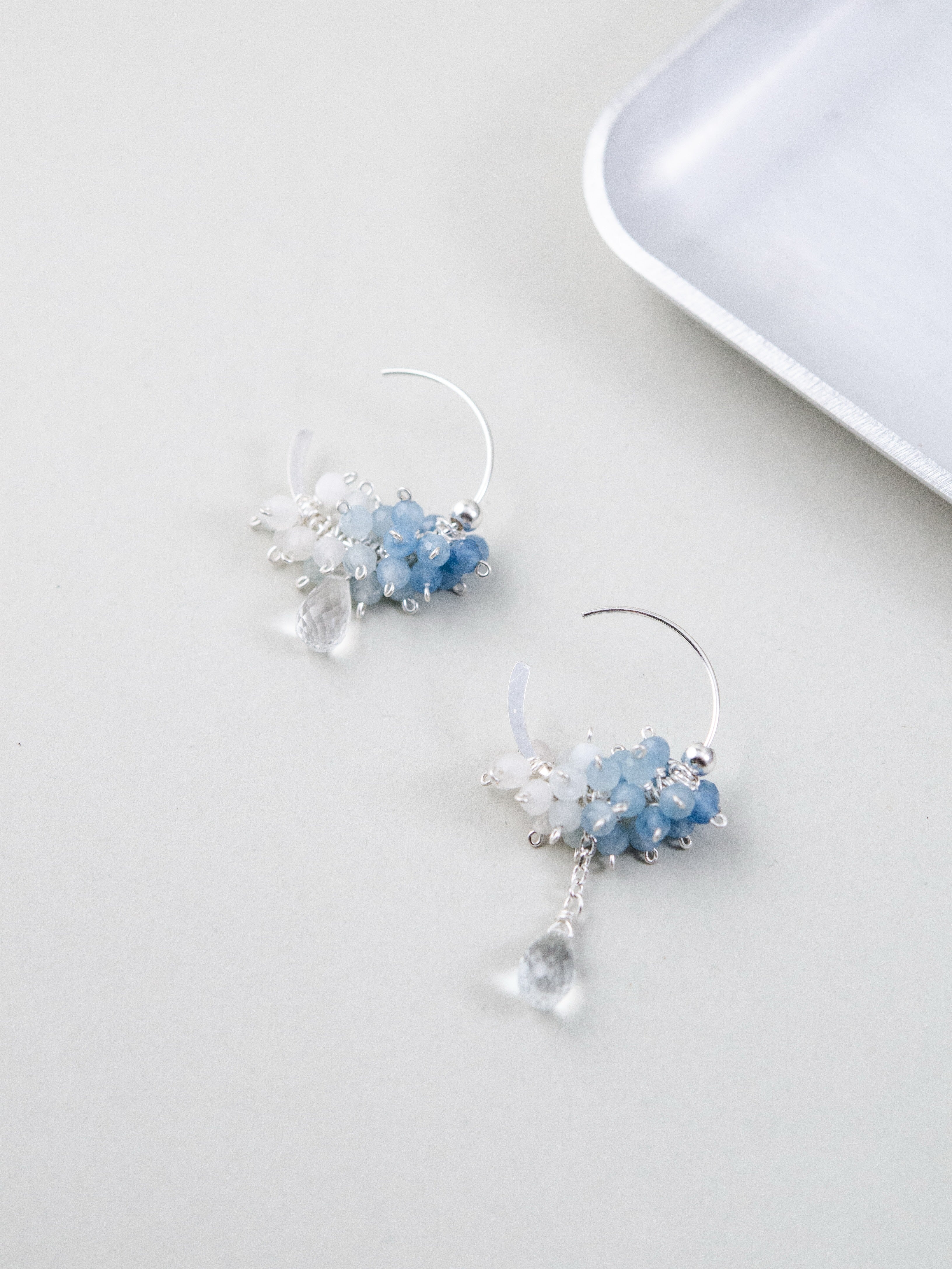 透明感のあるカラーストーンや淡水パールを、神戸のアトリエで一点ずつ丁寧に仕立てています。S925や14kgfなど肌に配慮した金具で、日常にも特別な日にも上品に。