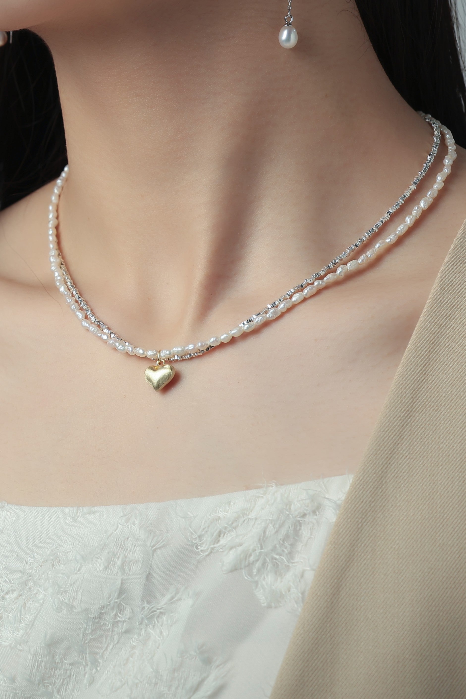 主な石:淡水パール、ゴールド/シルバーハート