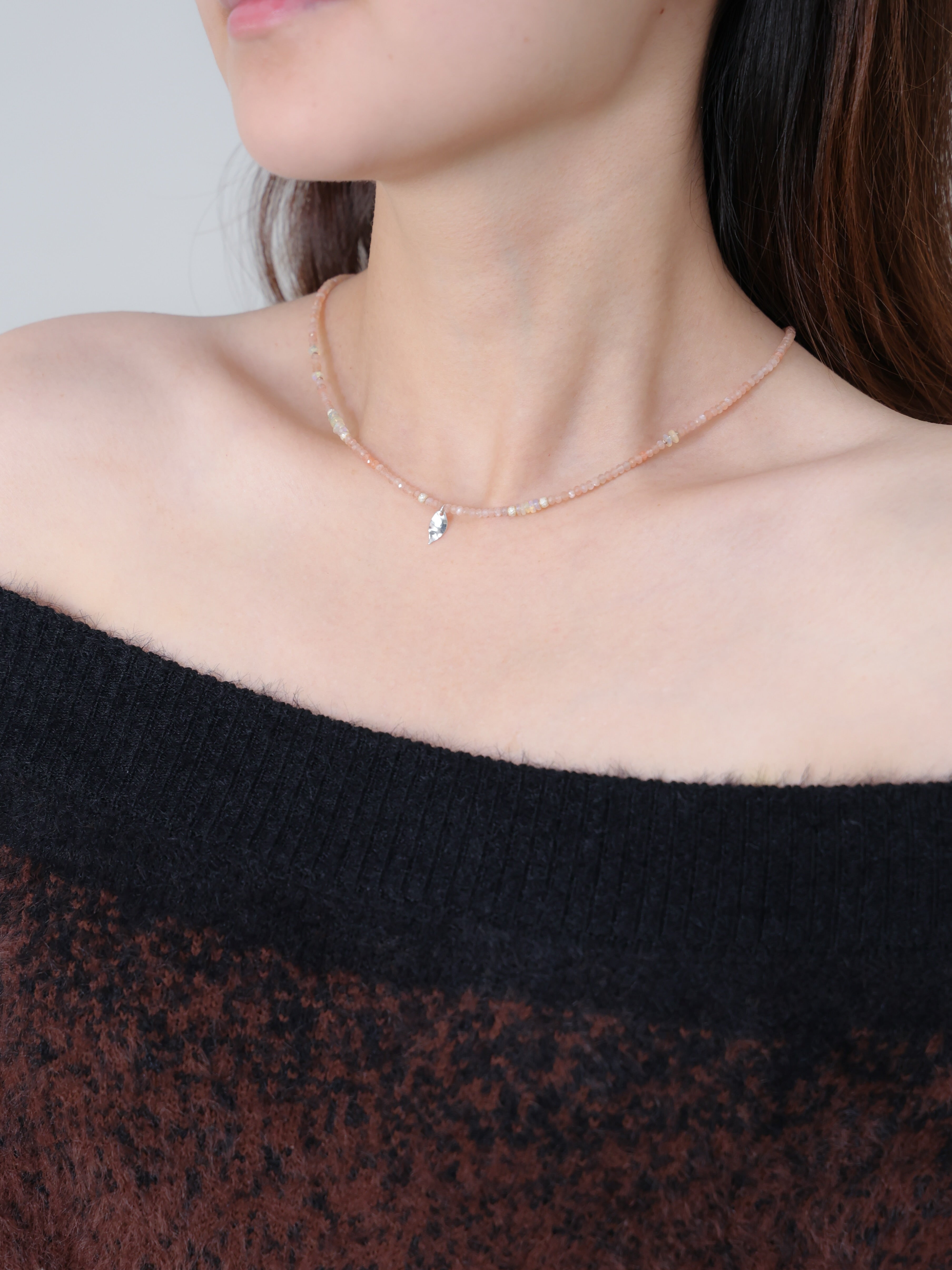 【上品・華奢】サンストーン ネックレス | リーフ コーラルピンク SV925
