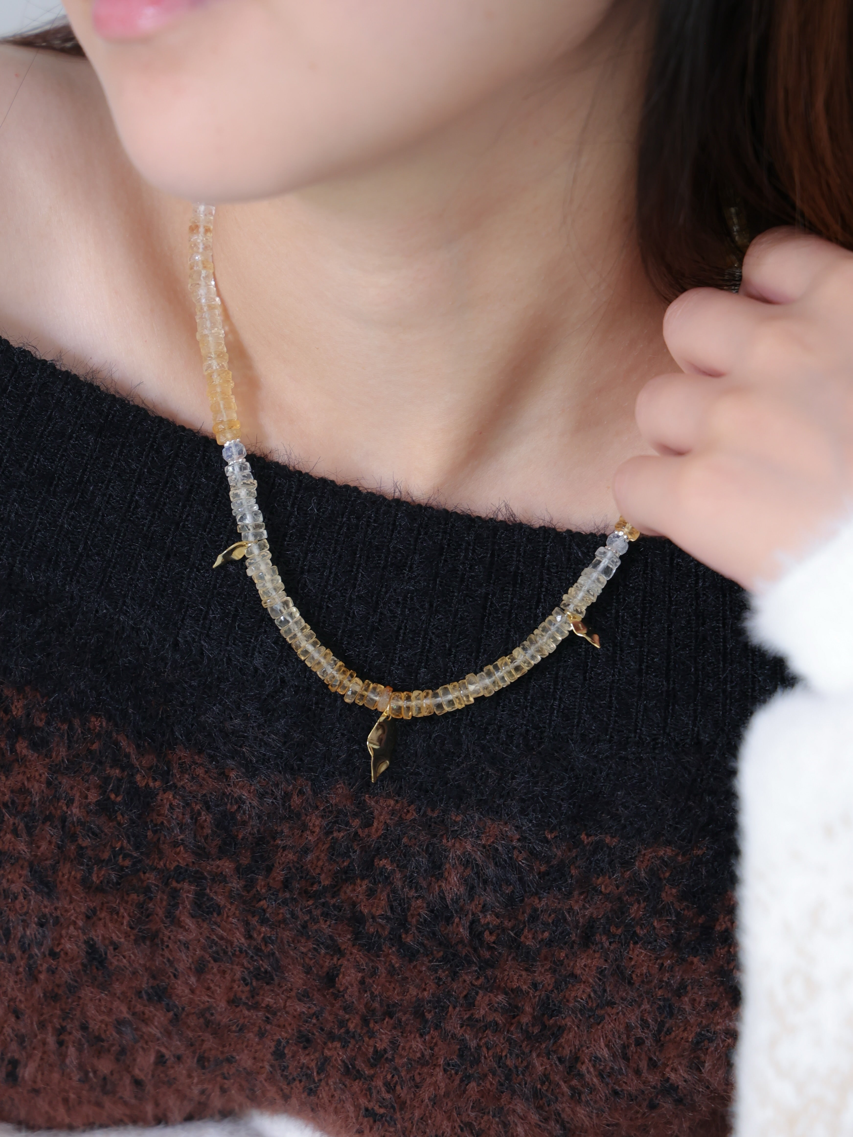 【葉】シトリン グラデーション リーフ ネックレス|SV925(K14メッキ)