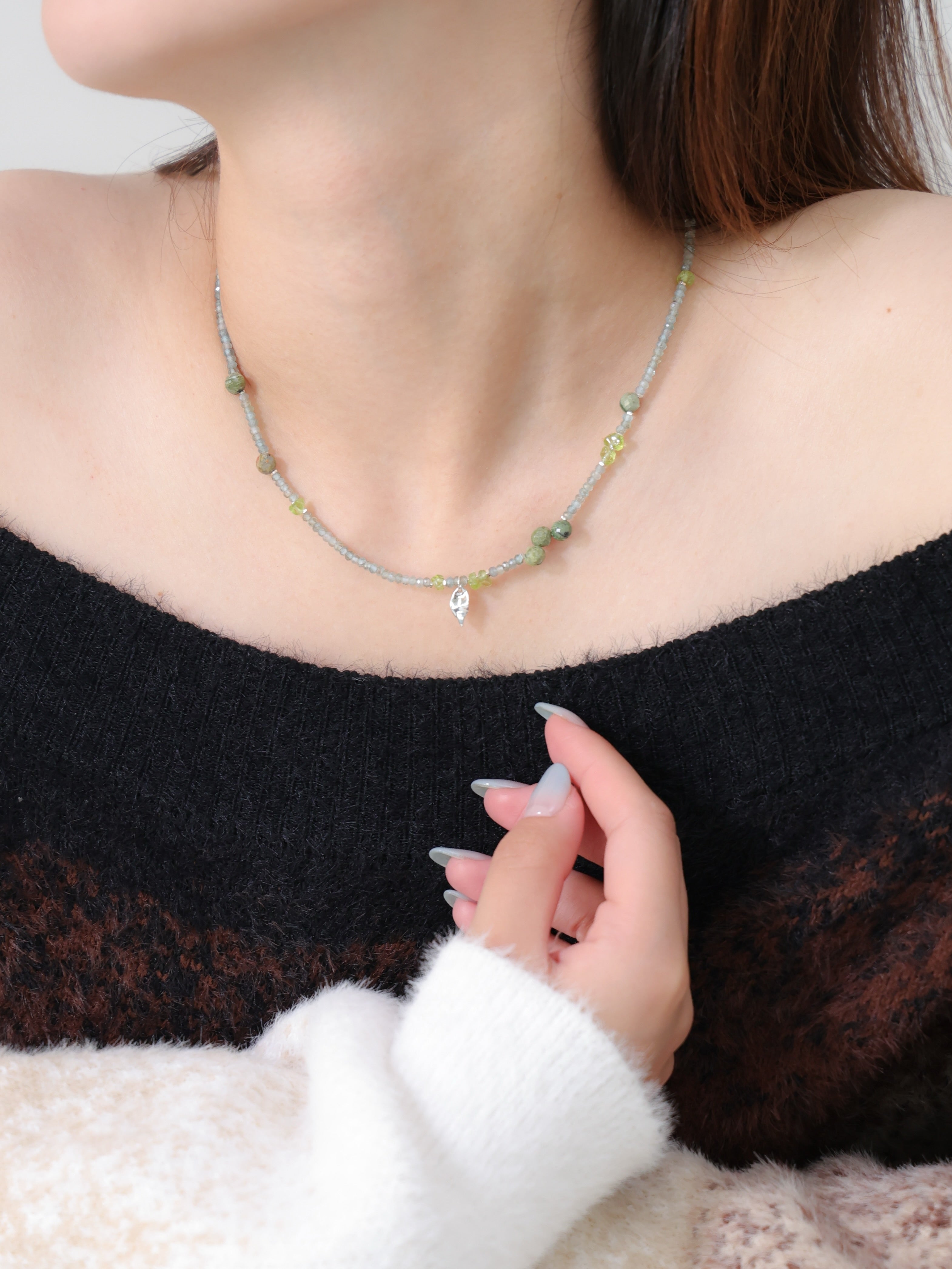 【お守り・華奢】グリーン 天然石 ネックレス | リーフ SV925