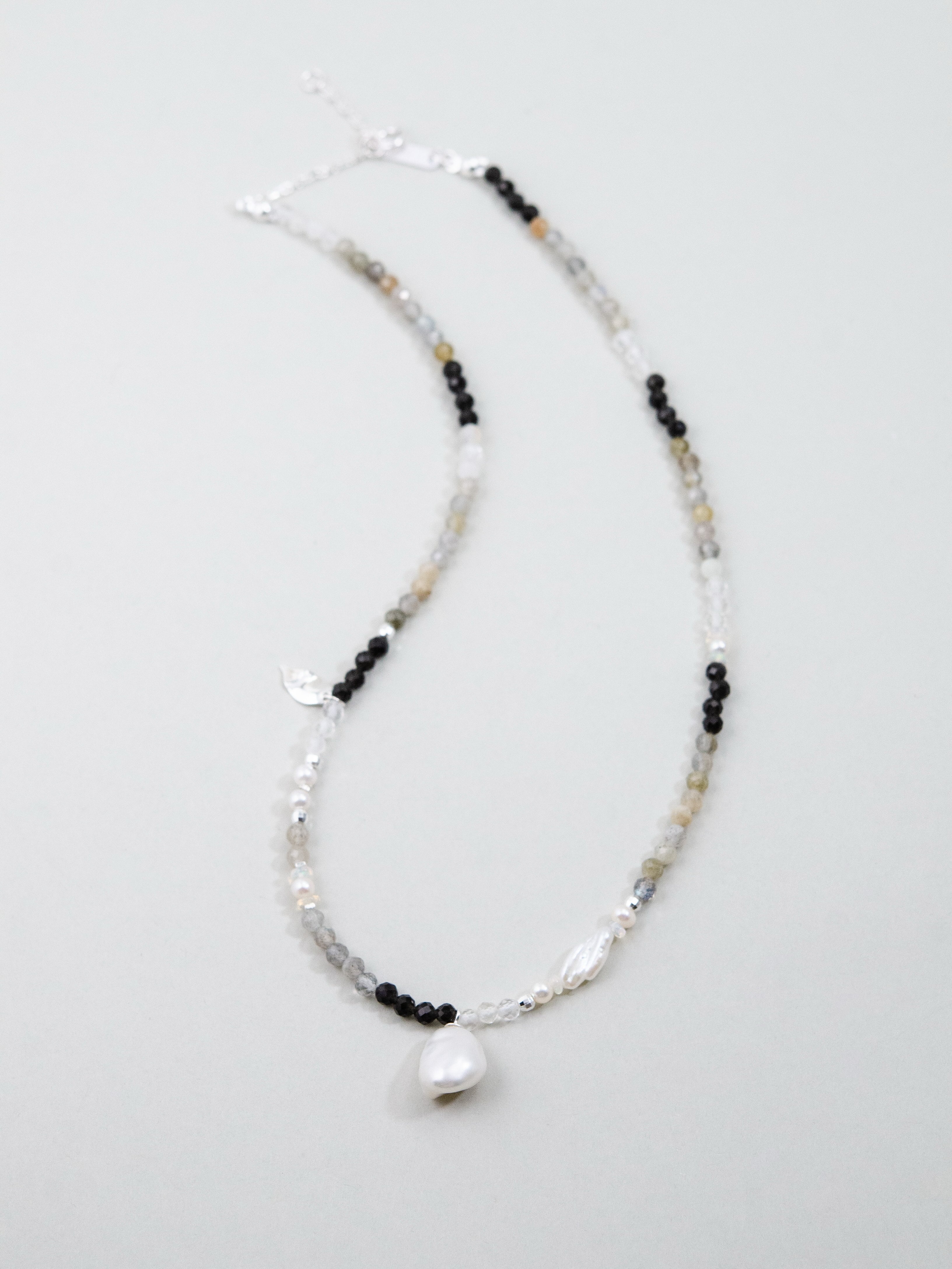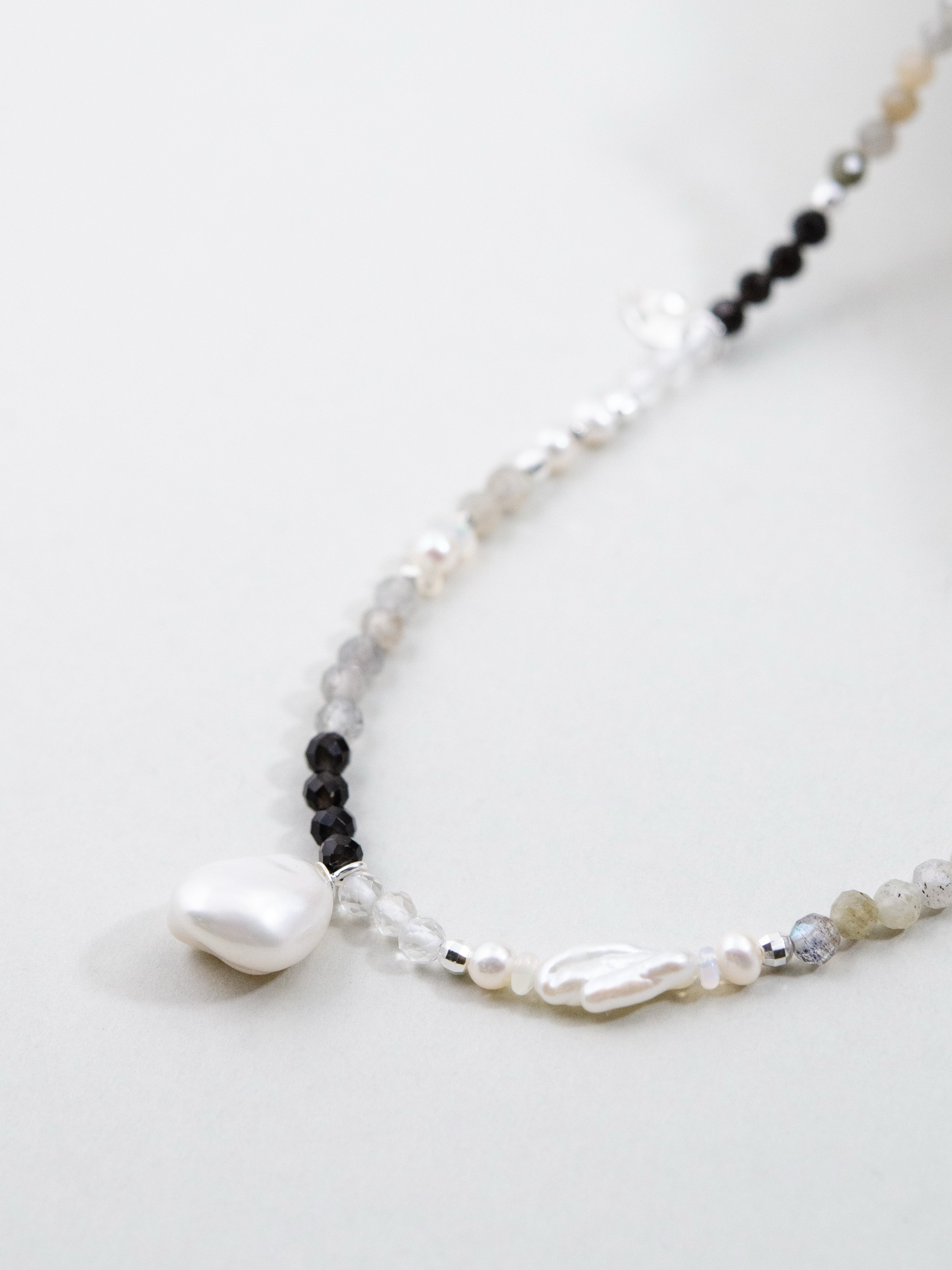 天然石や淡水パールのやわらかな艶を合わせ、神戸のアトリエで一点ずつ丁寧に仕立てています。