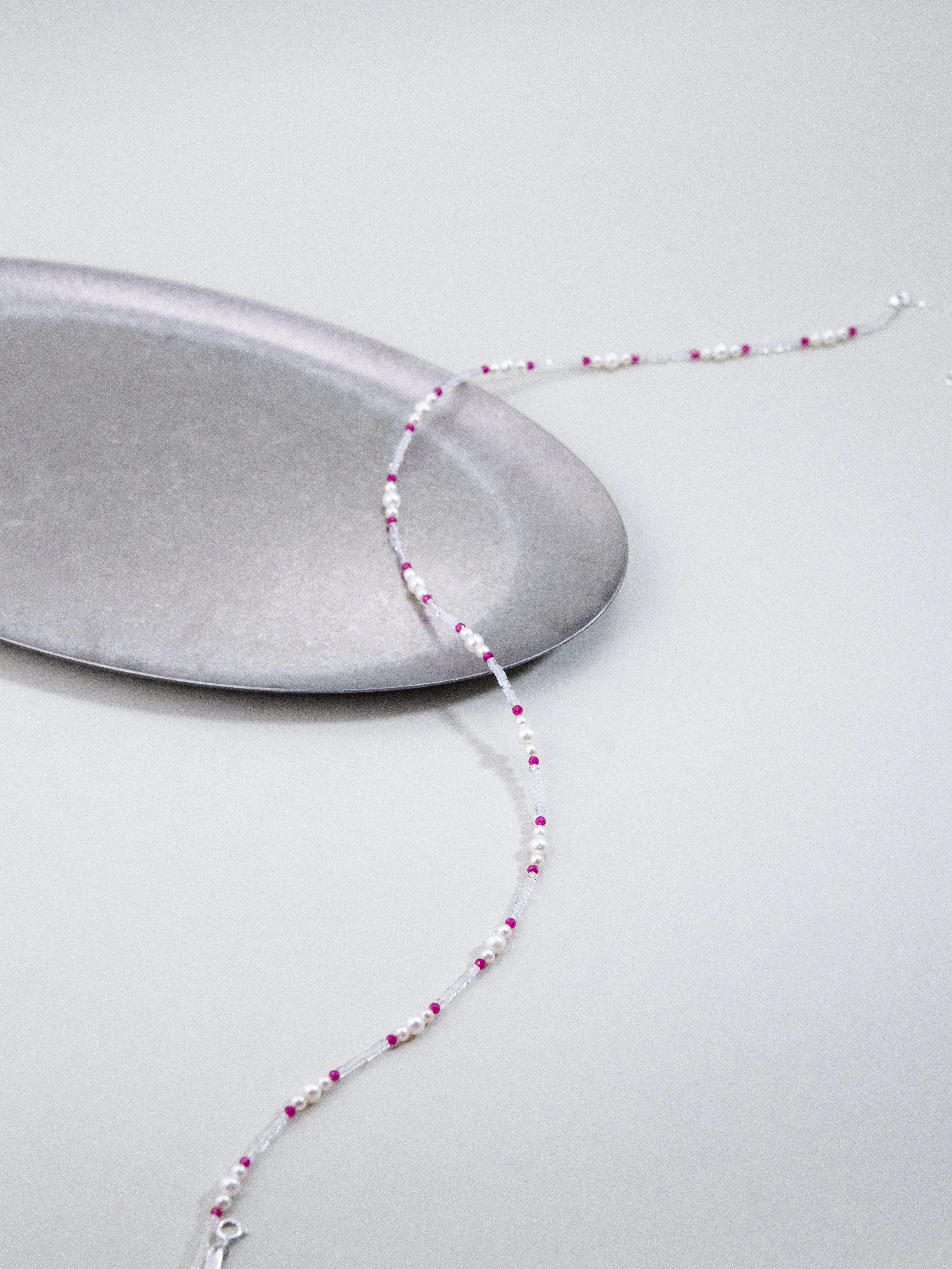 首元にさらりと沿う「スキンジュエリー」は、Tシャツやブラウスなど、毎日の装いにさりげない彩りを添えてくれます。