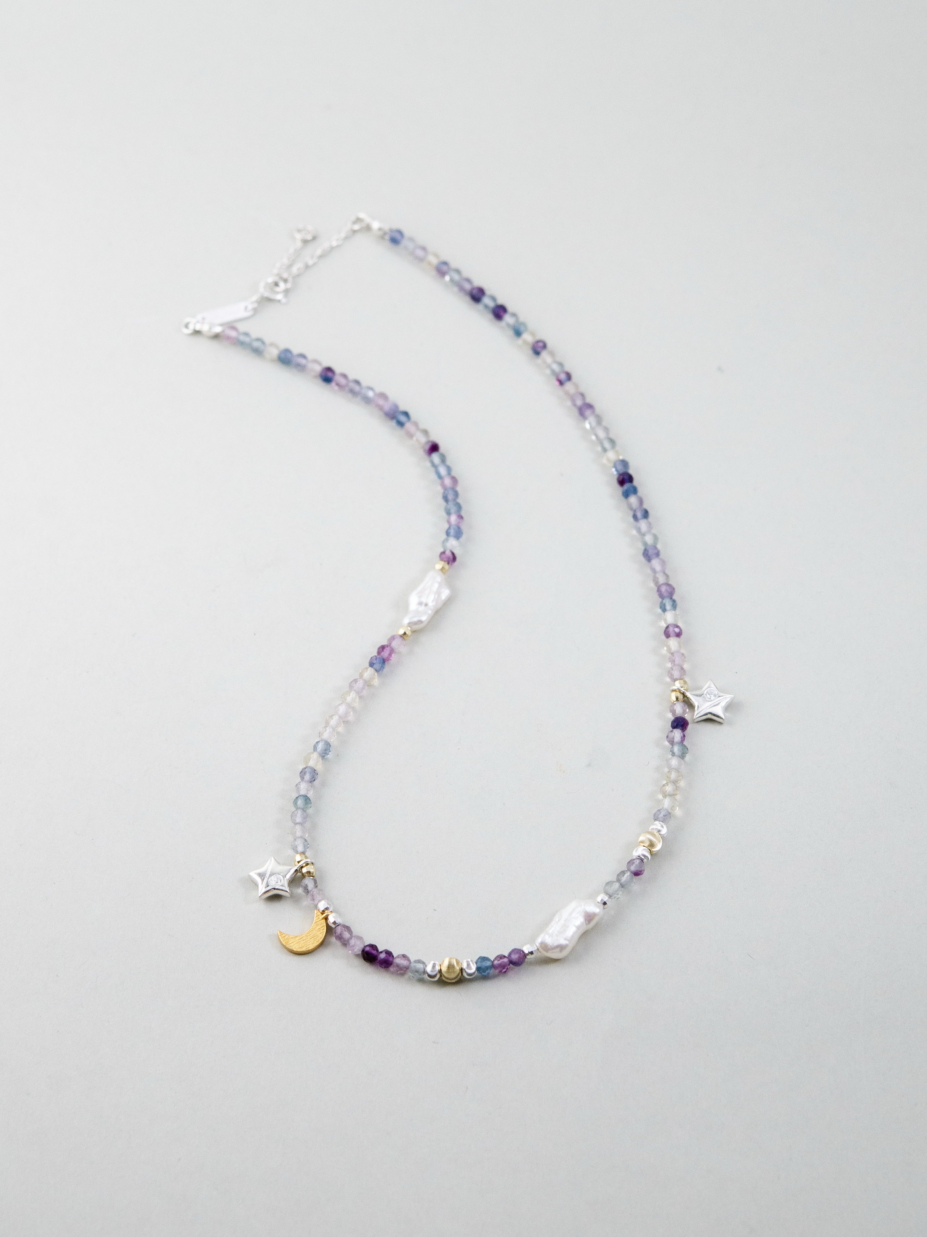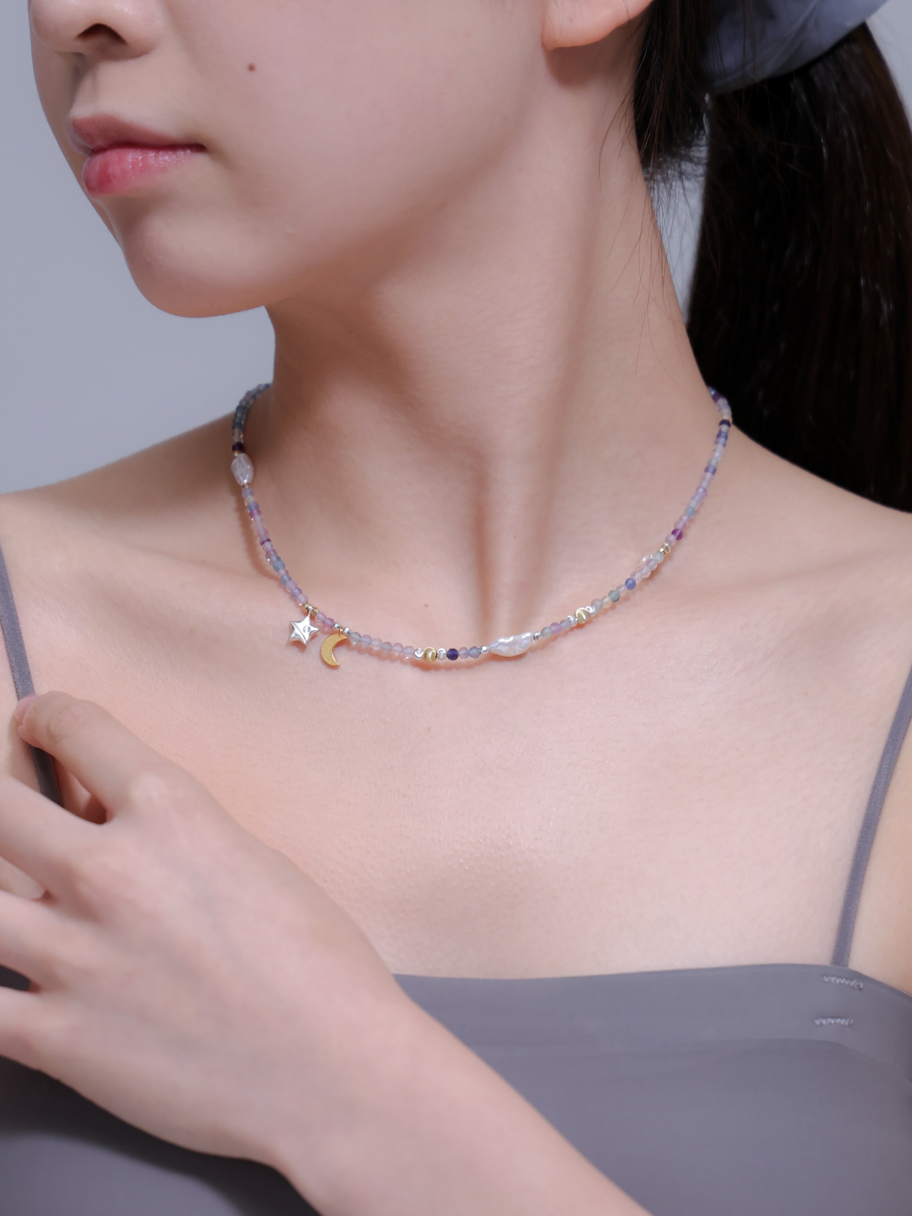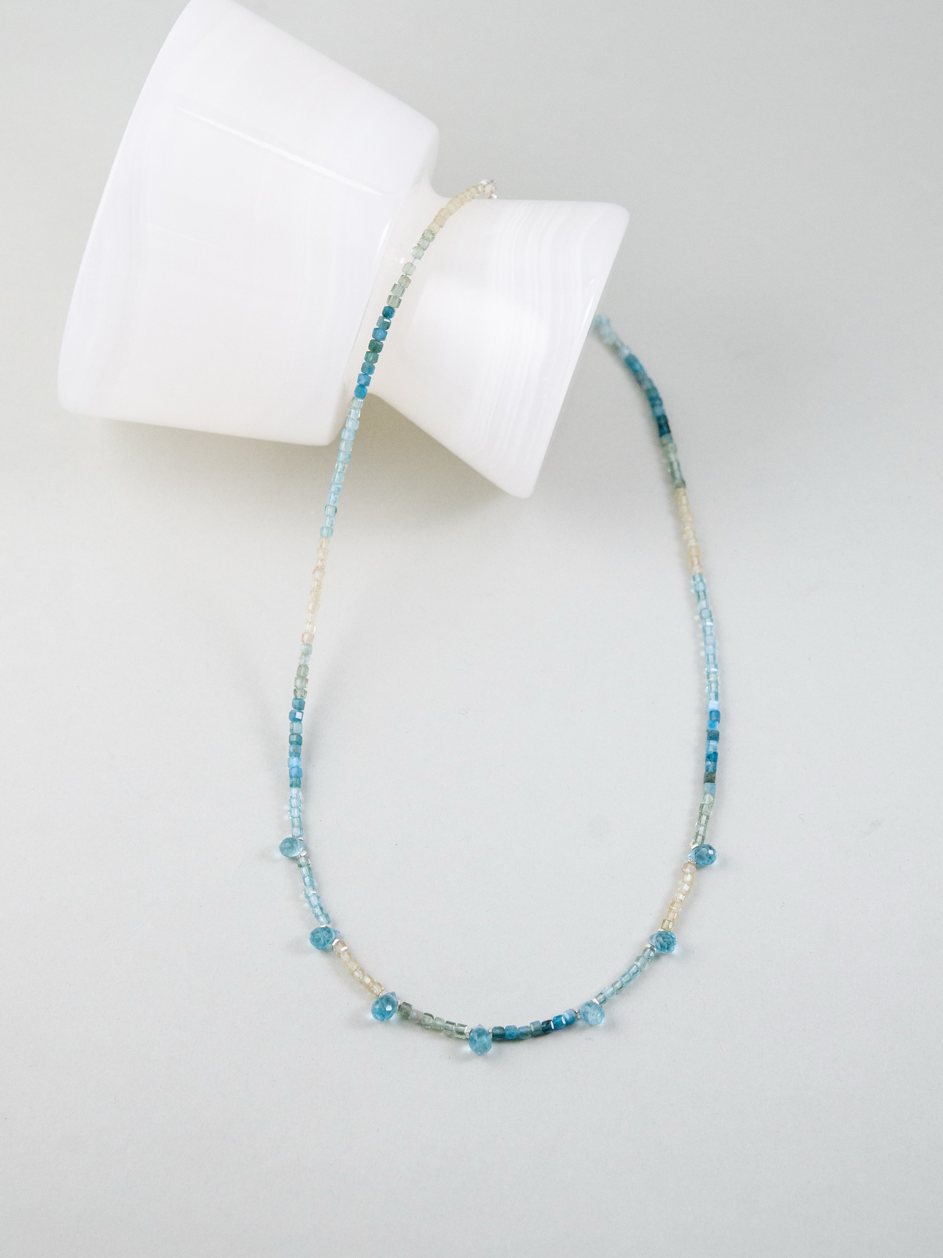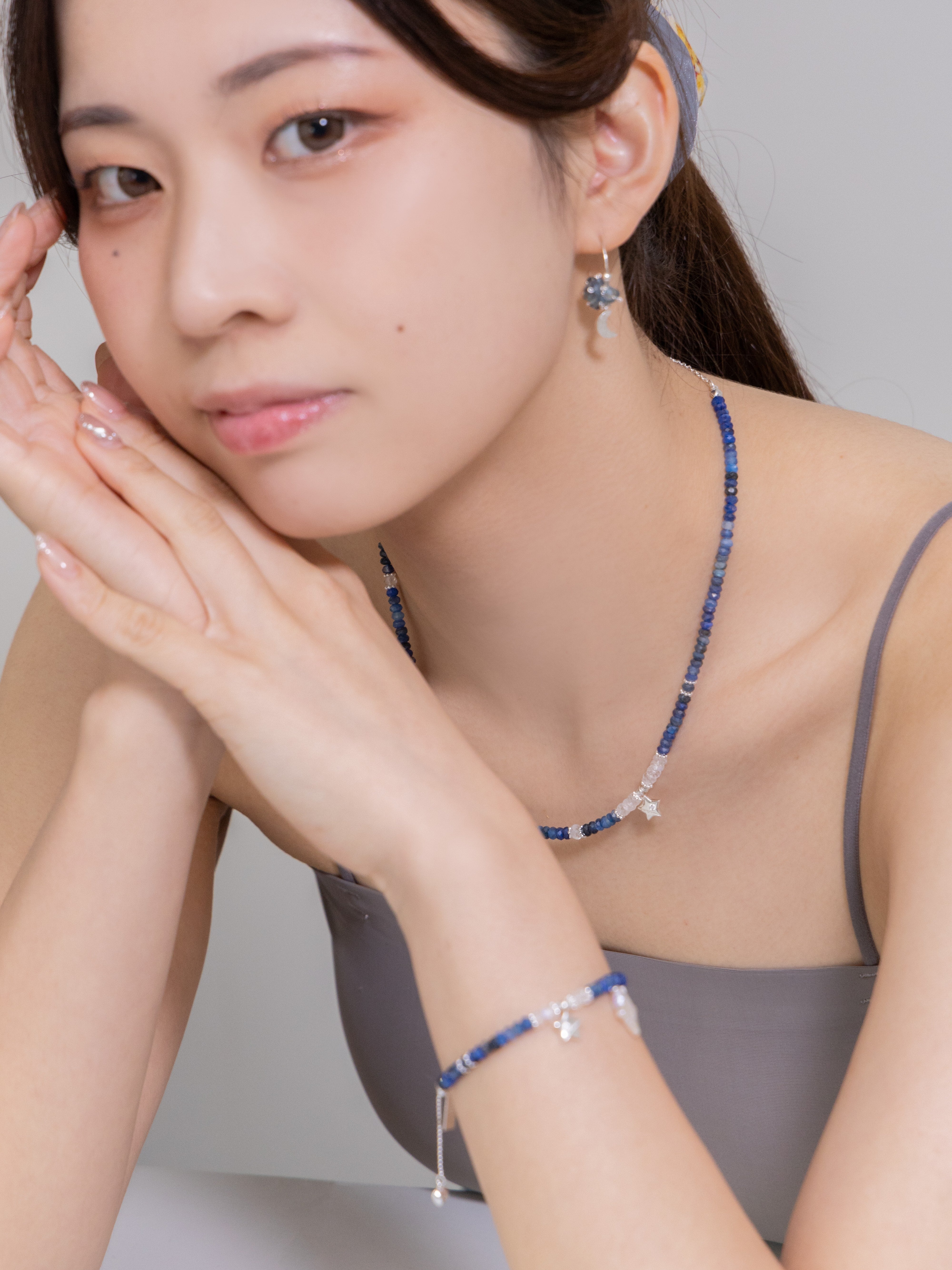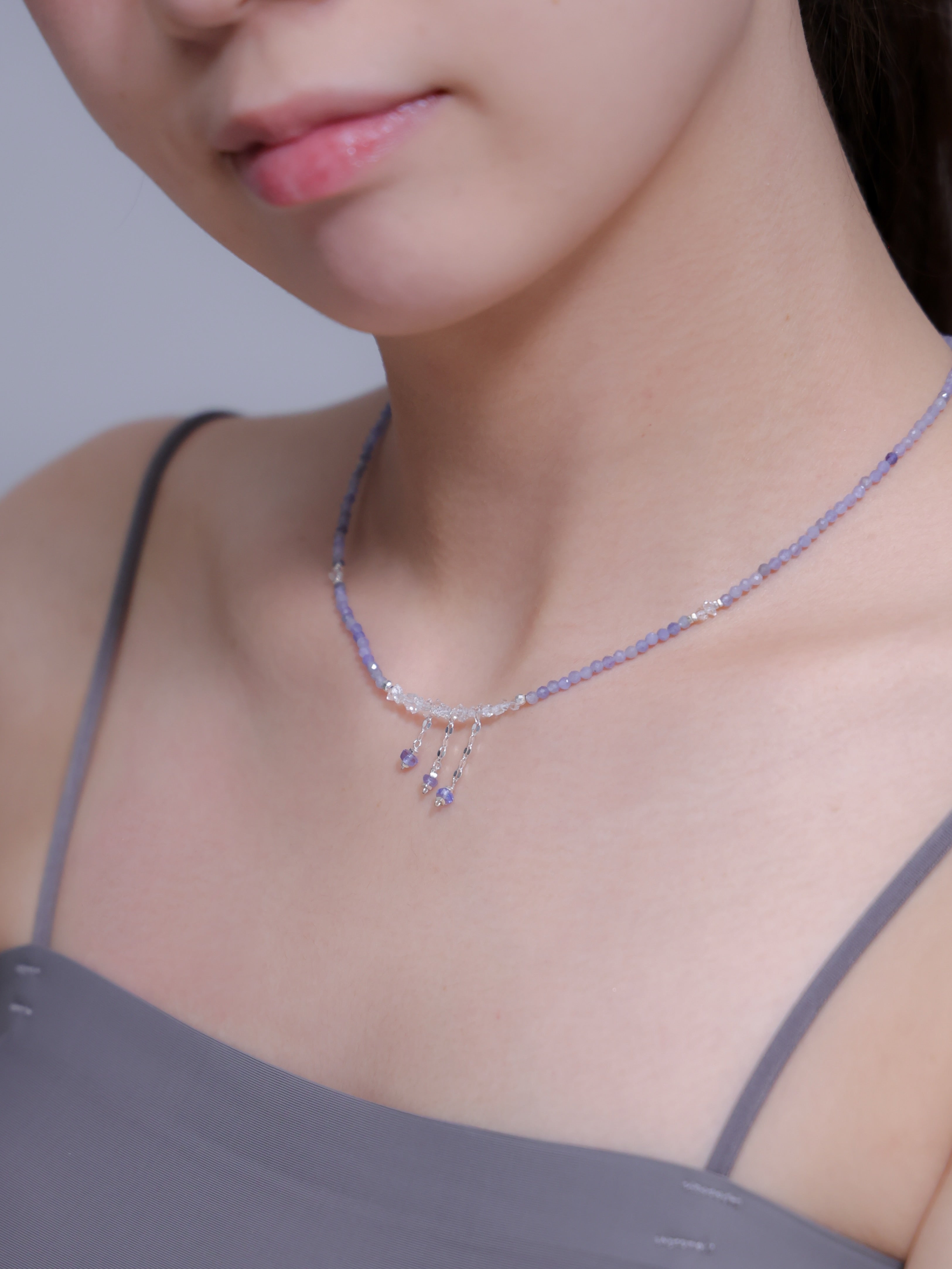 LUCINEのネックレスは、天然石や淡水パールの表情を活かし、神戸のアトリエで一点ずつ仕立てています。肌に触れる金具は S925・14kgf を中心に採用。日常にも特別な日にも、上品でタイムレスな輝きを。