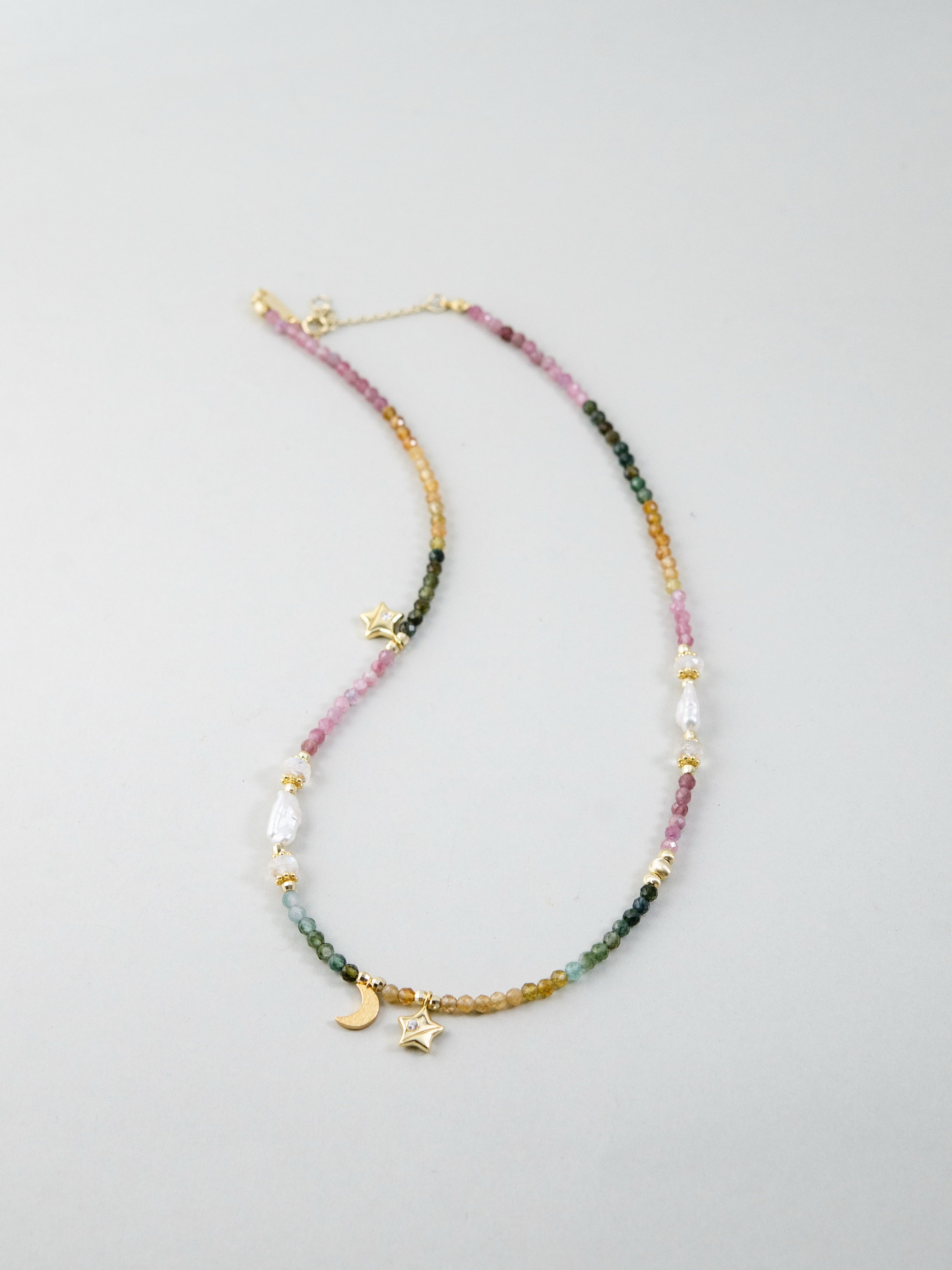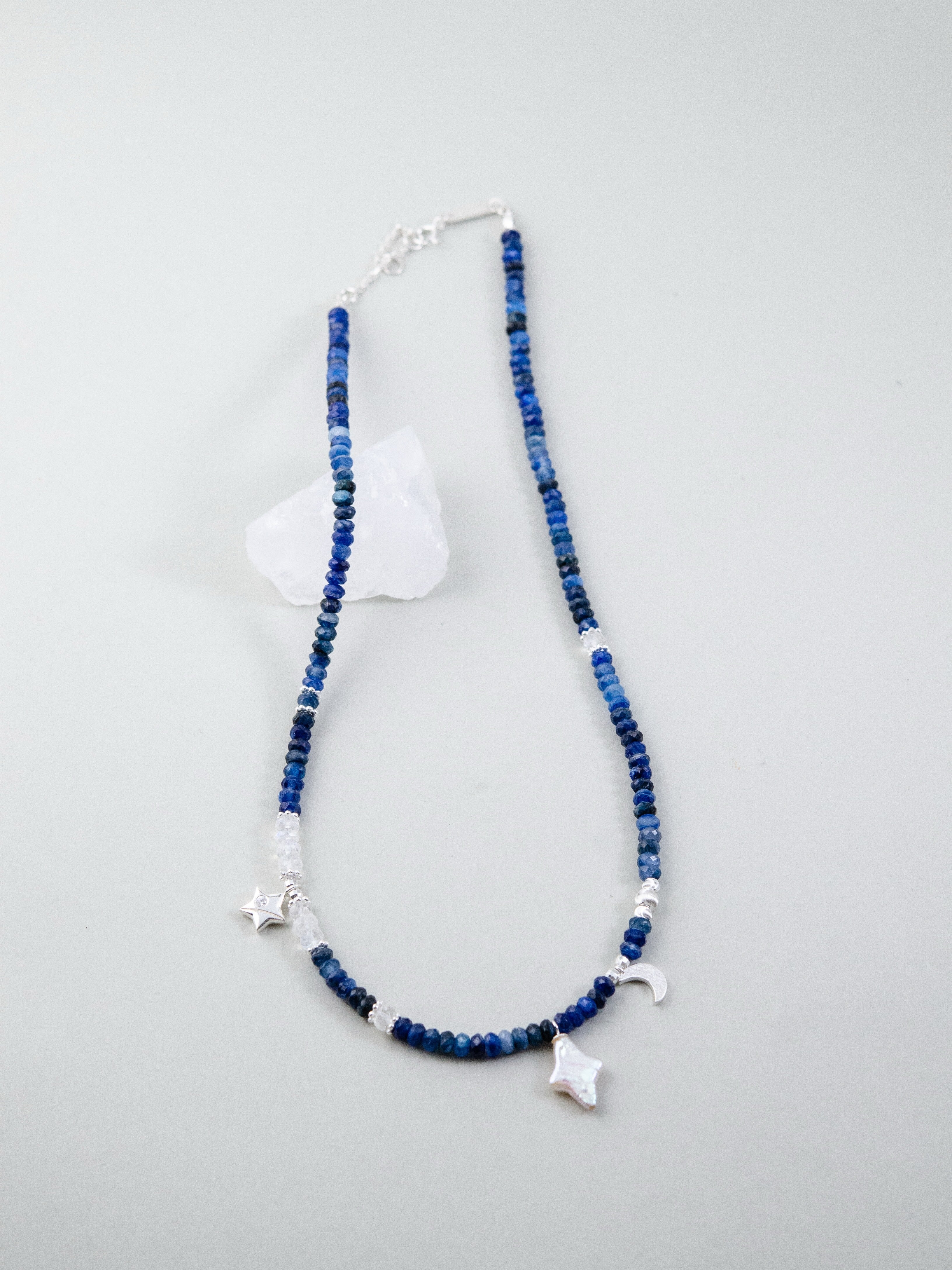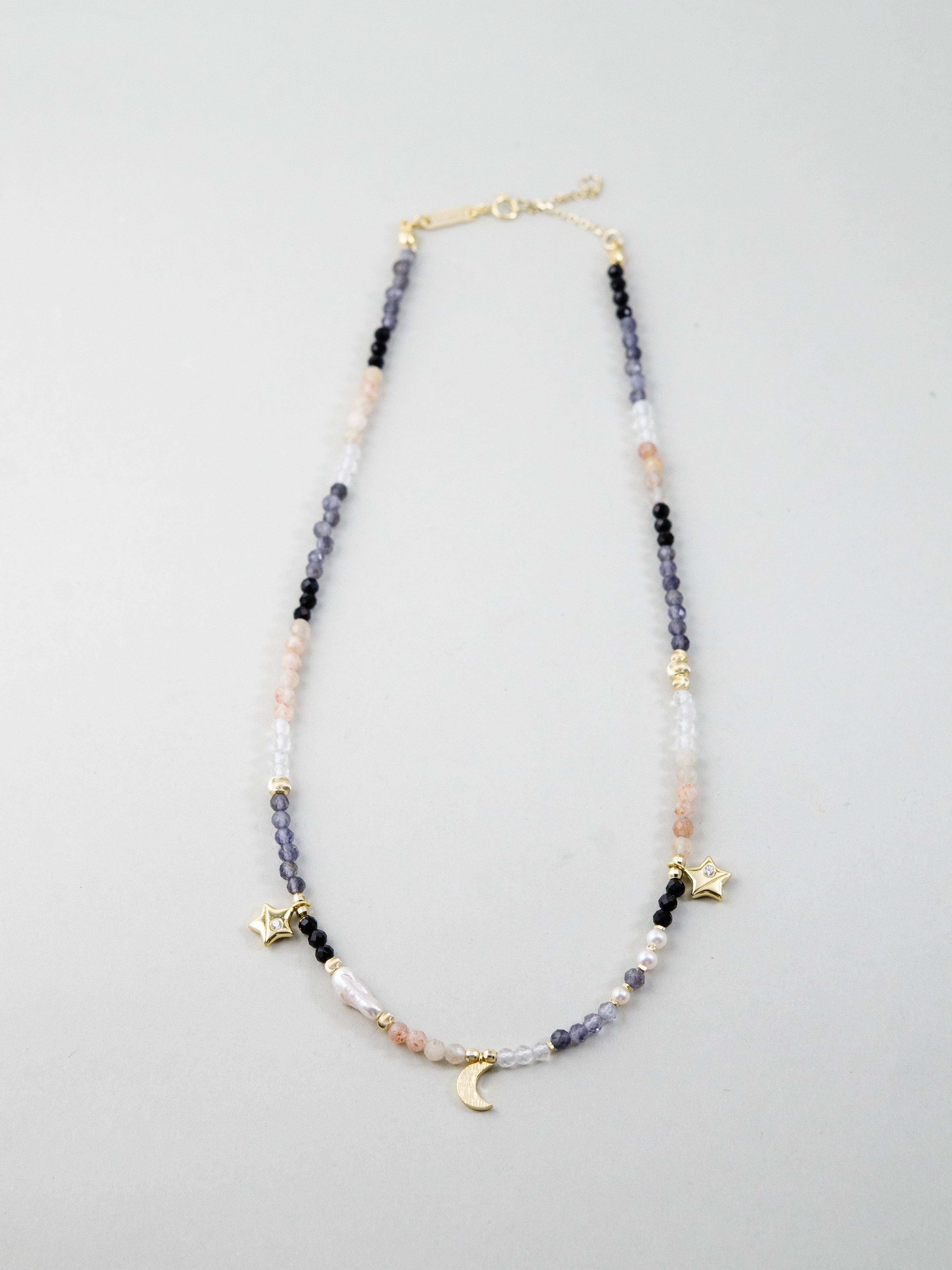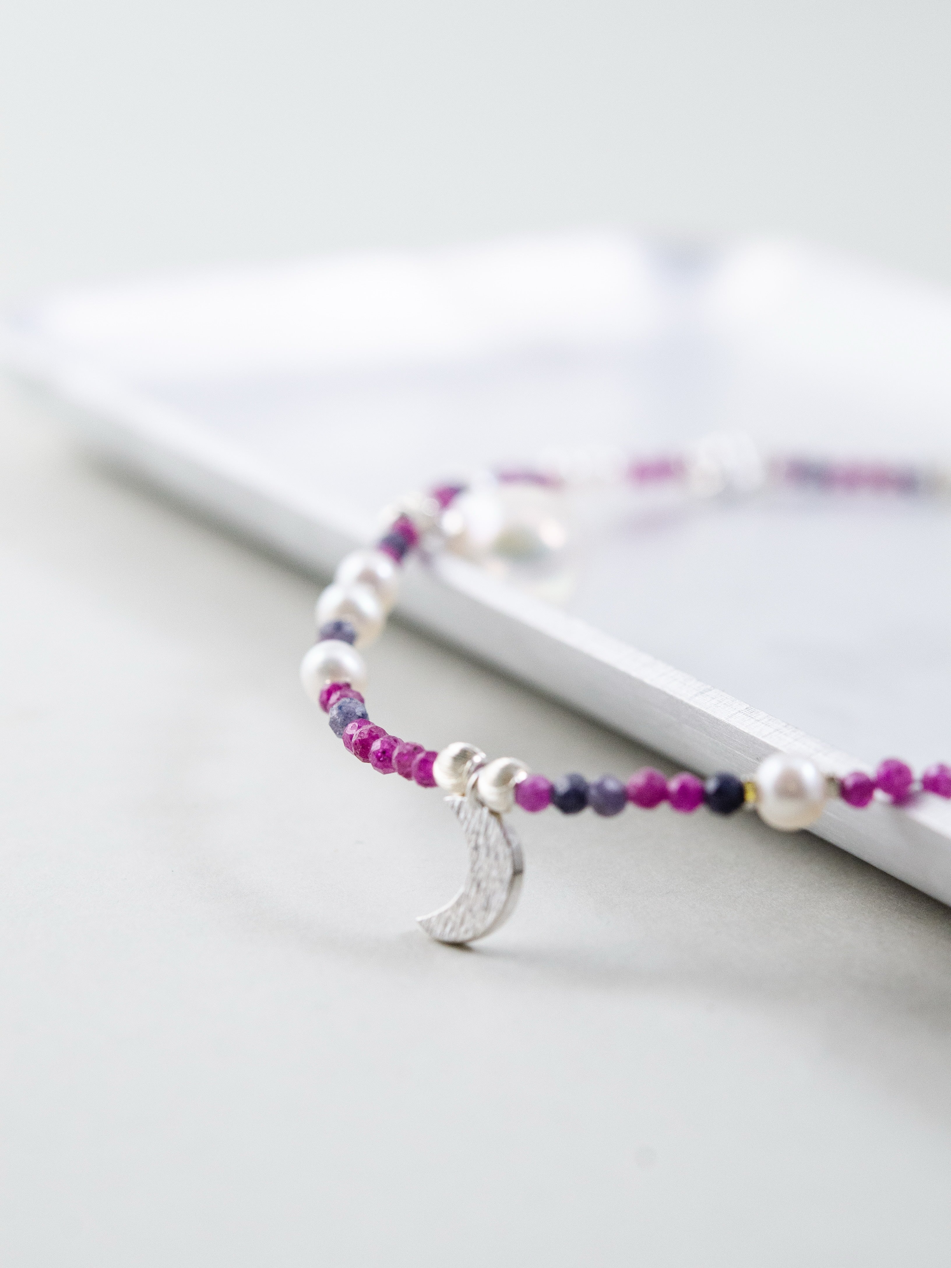 LUCINEのネックレスは、天然石や淡水パールの表情を活かし、神戸のアトリエで一点ずつ仕立てています。肌に触れる金具は S925・14kgf を中心に採用。日常にも特別な日にも、上品でタイムレスな輝きを。