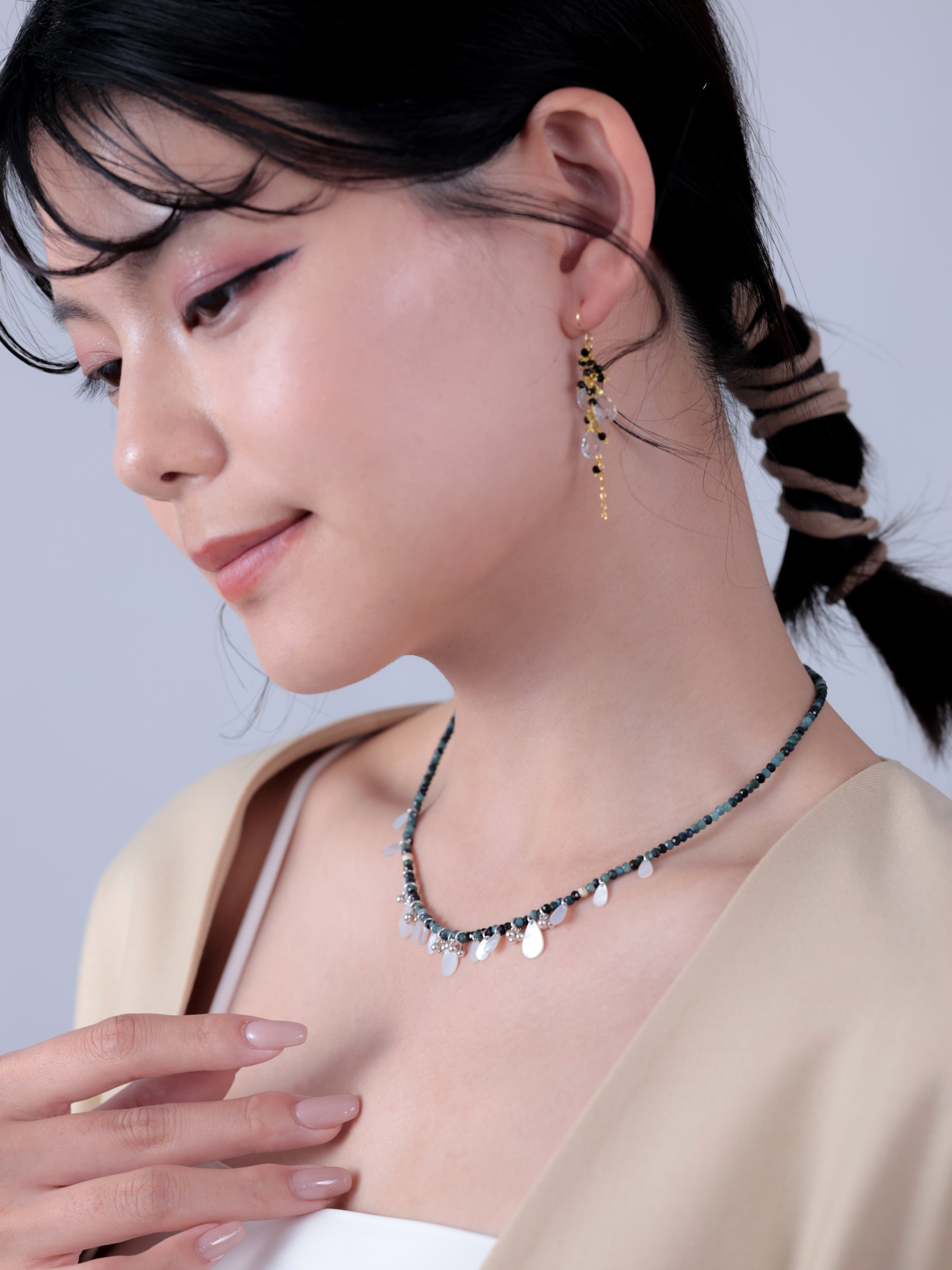トルマリン & 白蝶貝 ネックレス - 【森と泉の滴】深き緑と純白の輝き / 10月誕生石 SV925