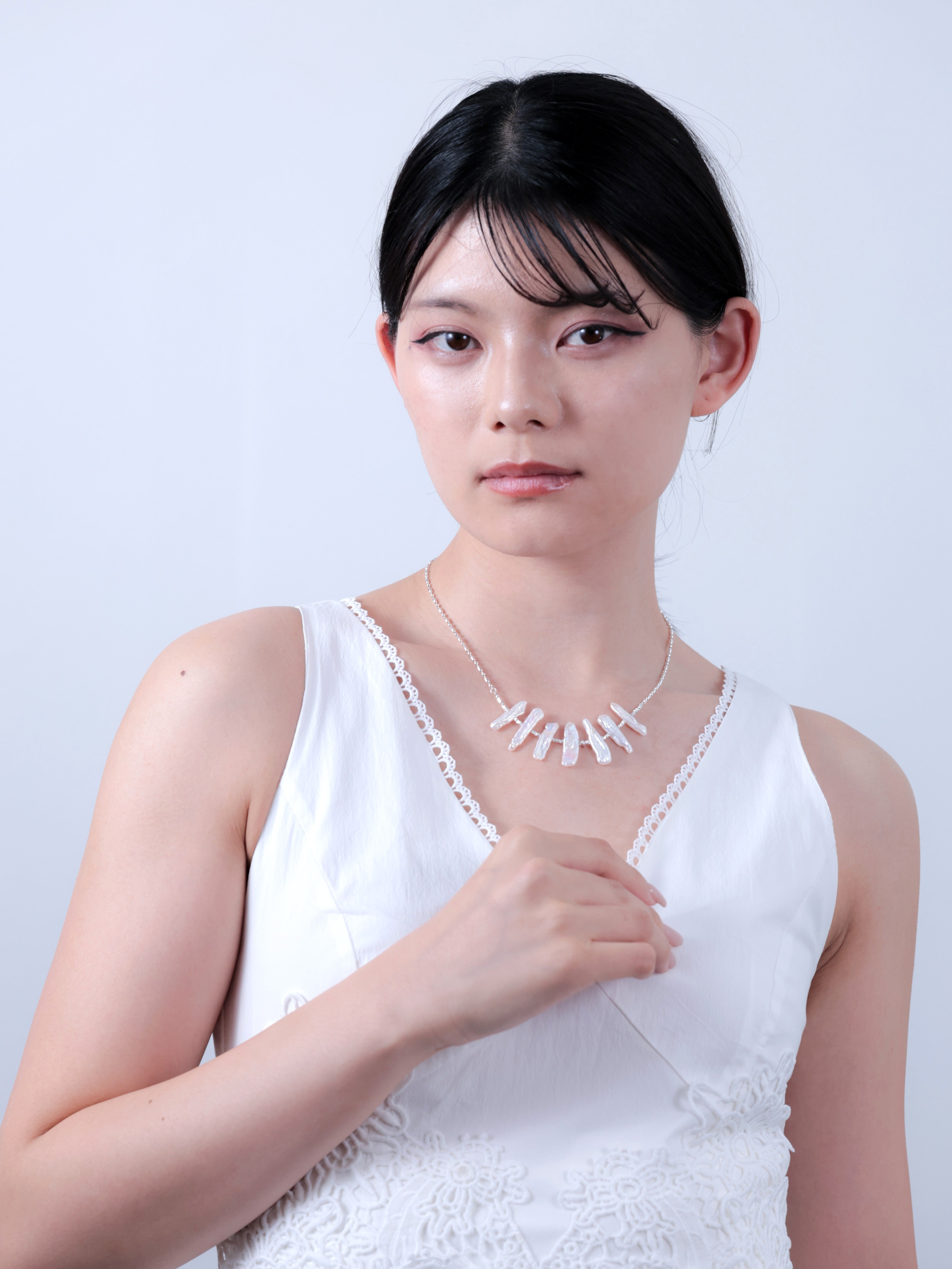 スティックパール フリンジ ネックレス - 【光の翼】縦長真珠のモダンな連なり / SV925