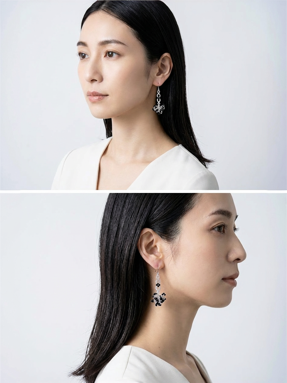 ブラックスピネル ピアス/イヤリング - 【夜華の房】銀糸のタティングレース / 選べる金具