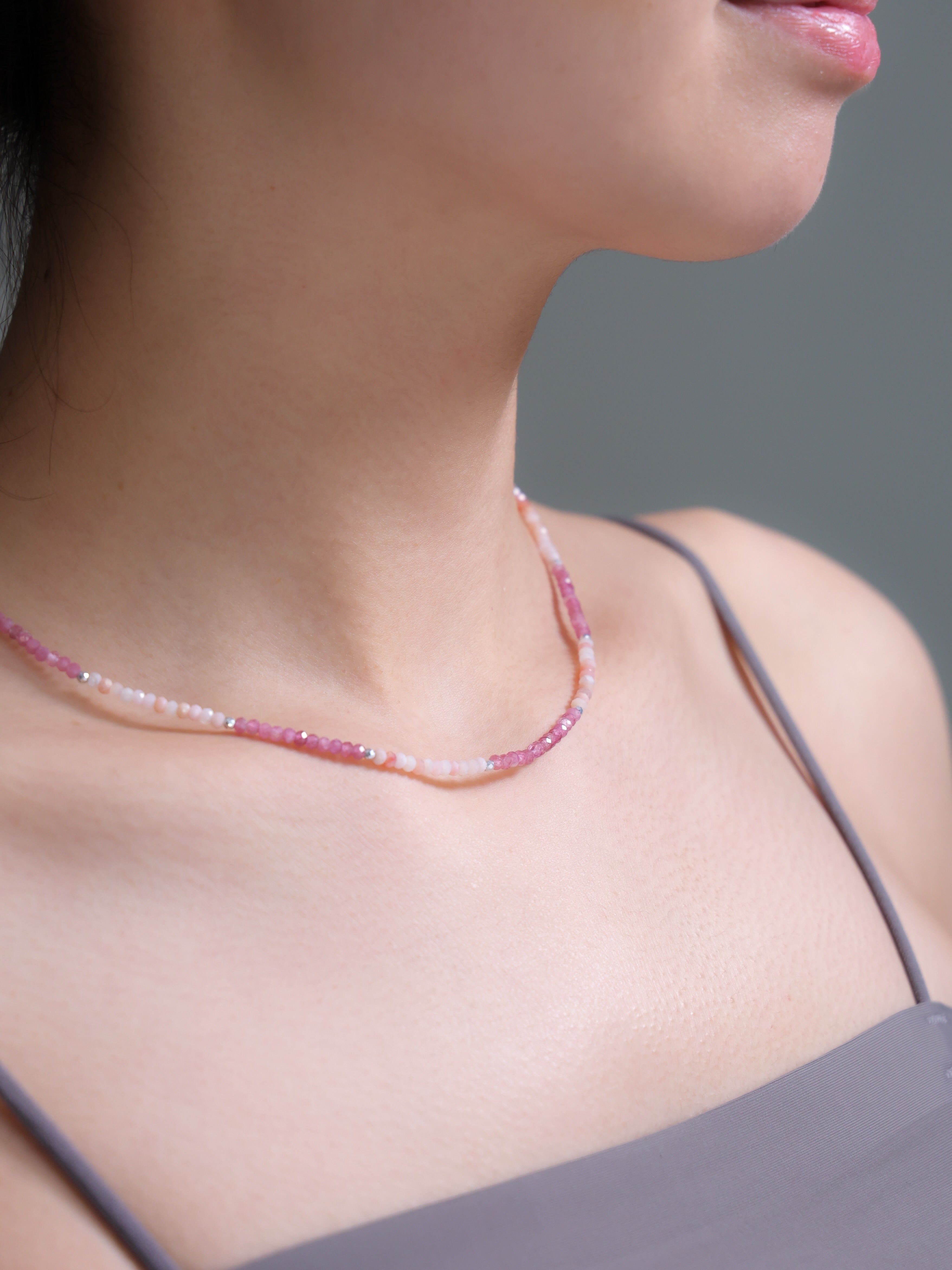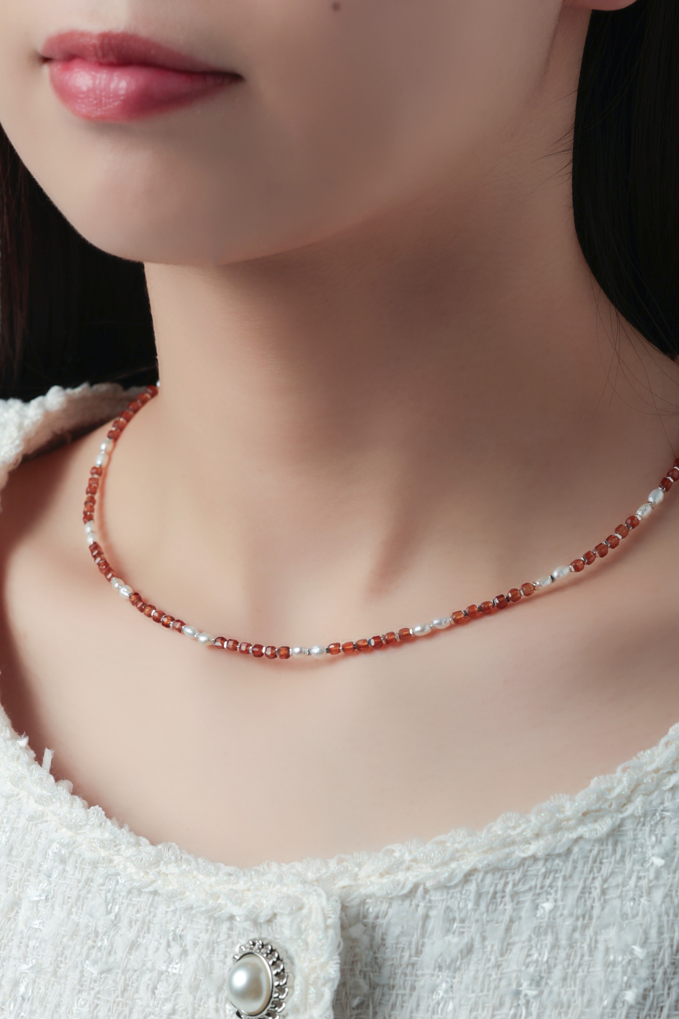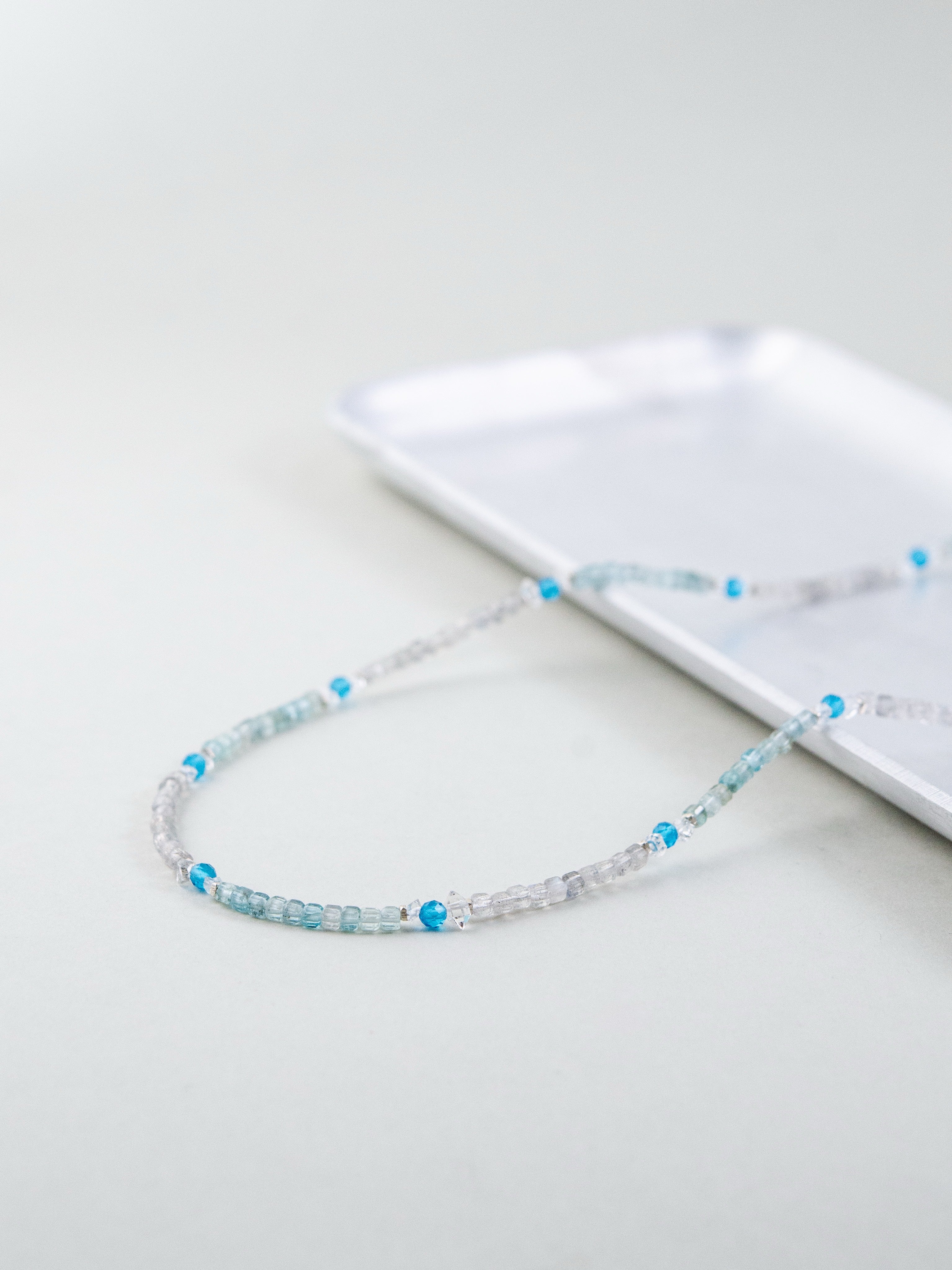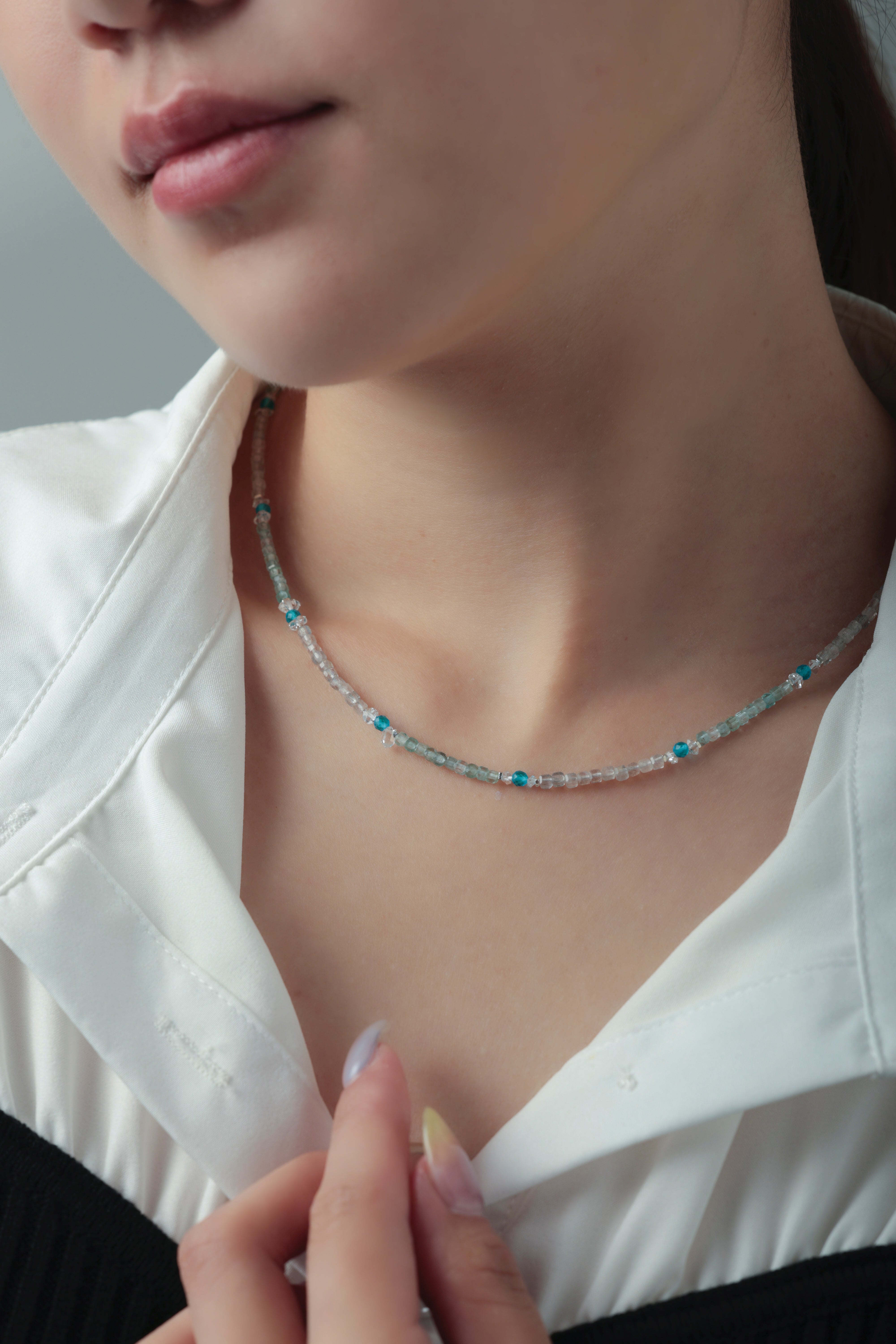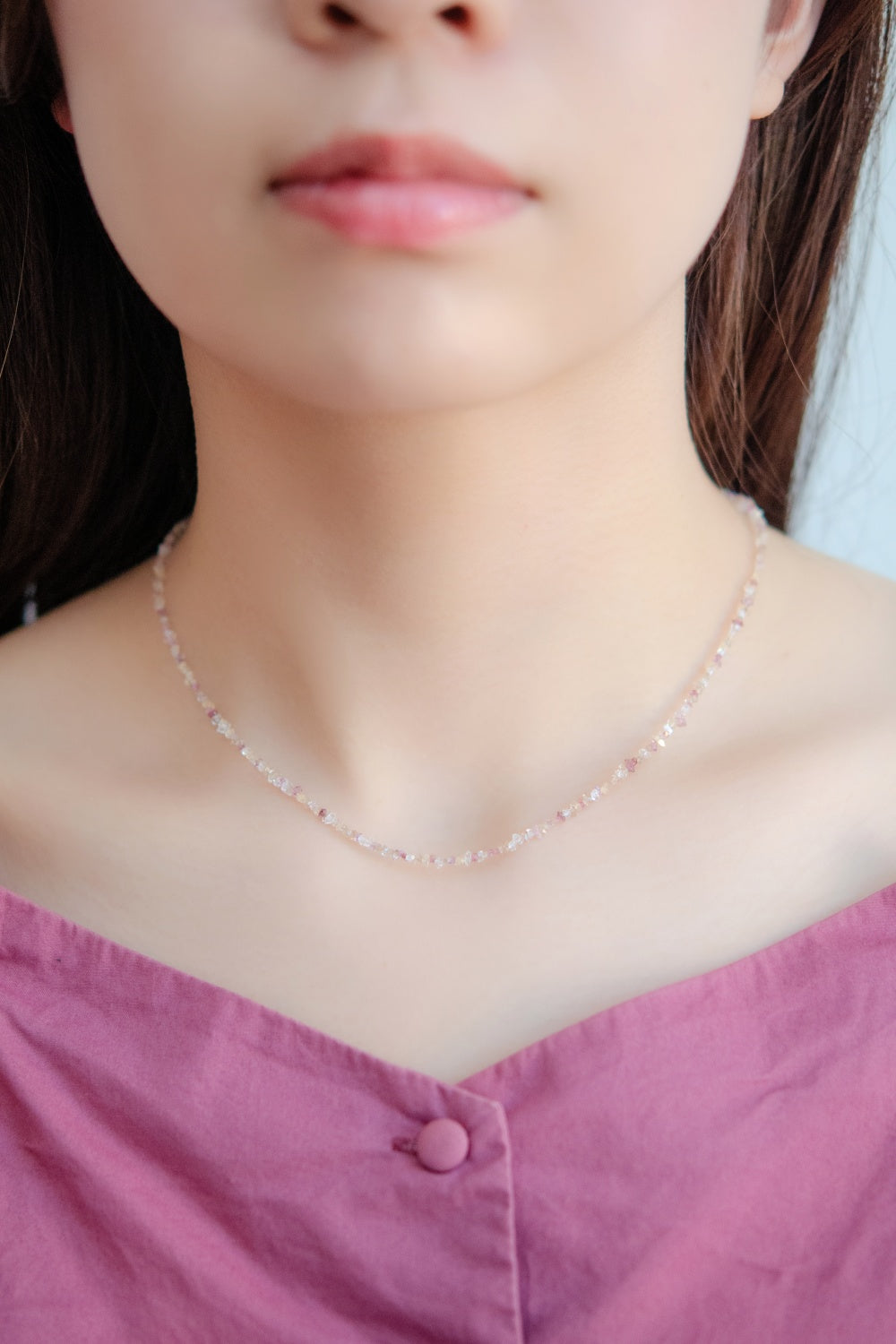 ・ネックレスは1粒や短めチェーンでミニマルに。重ねづけで奥行きをプラス。