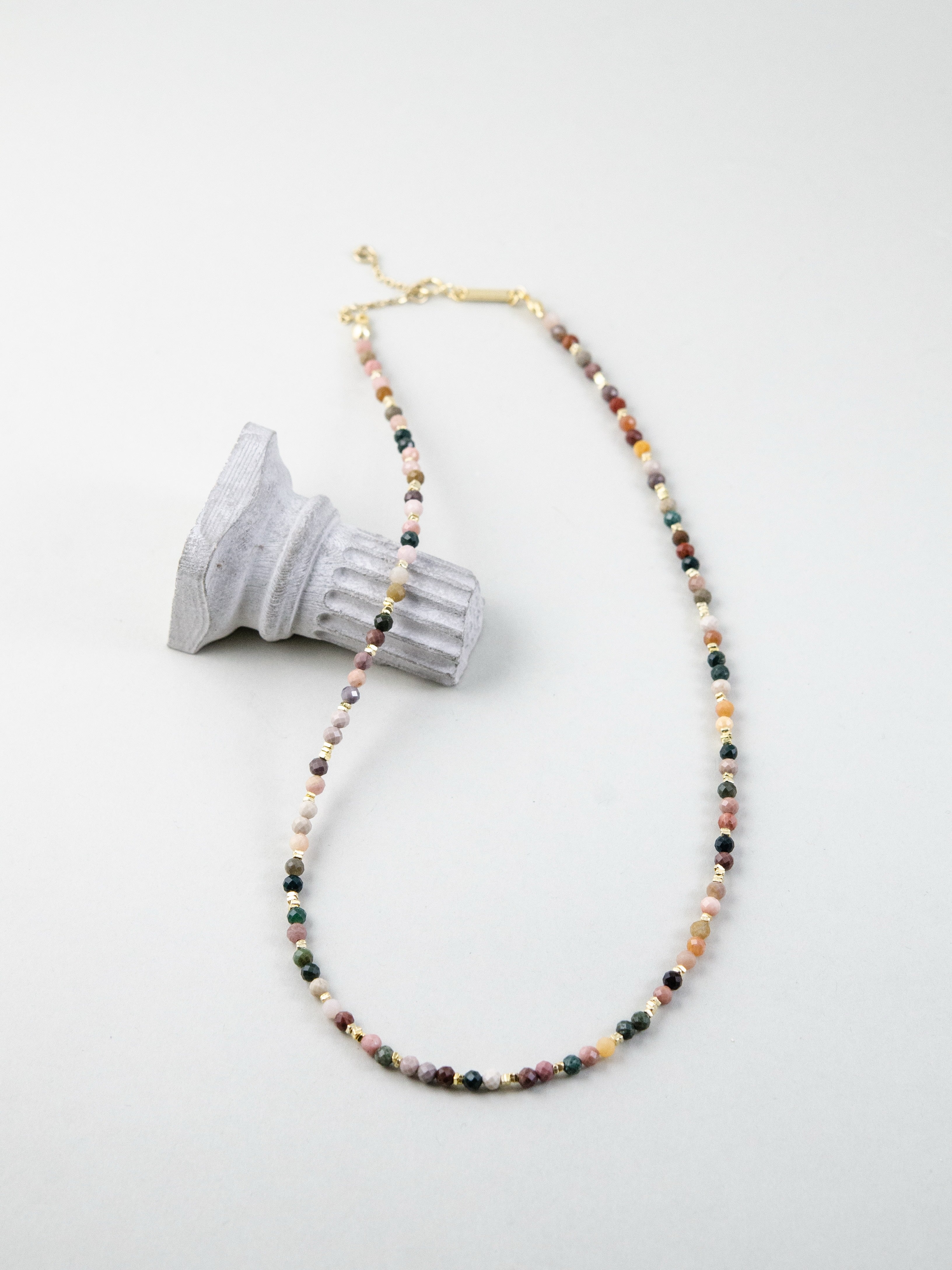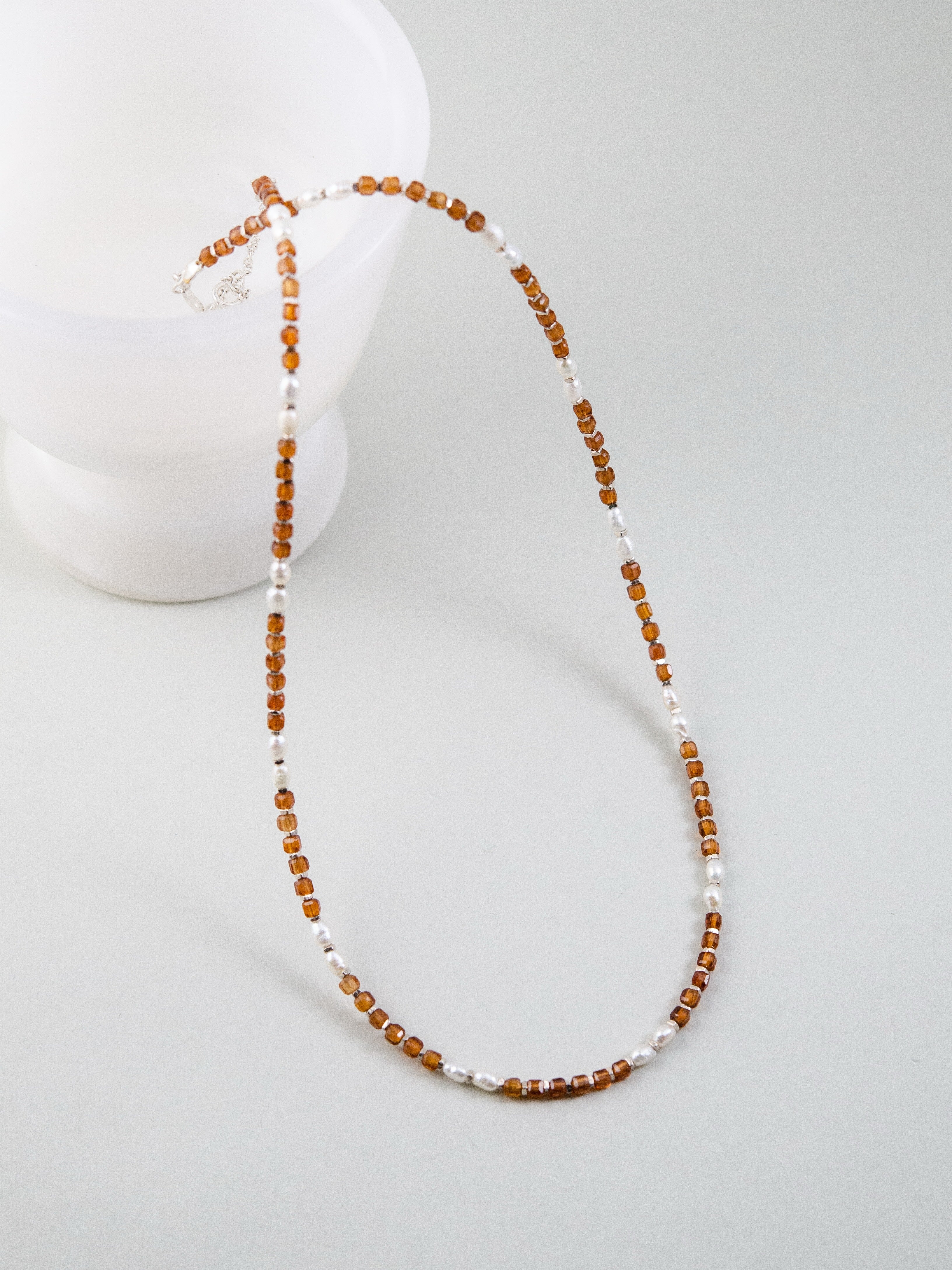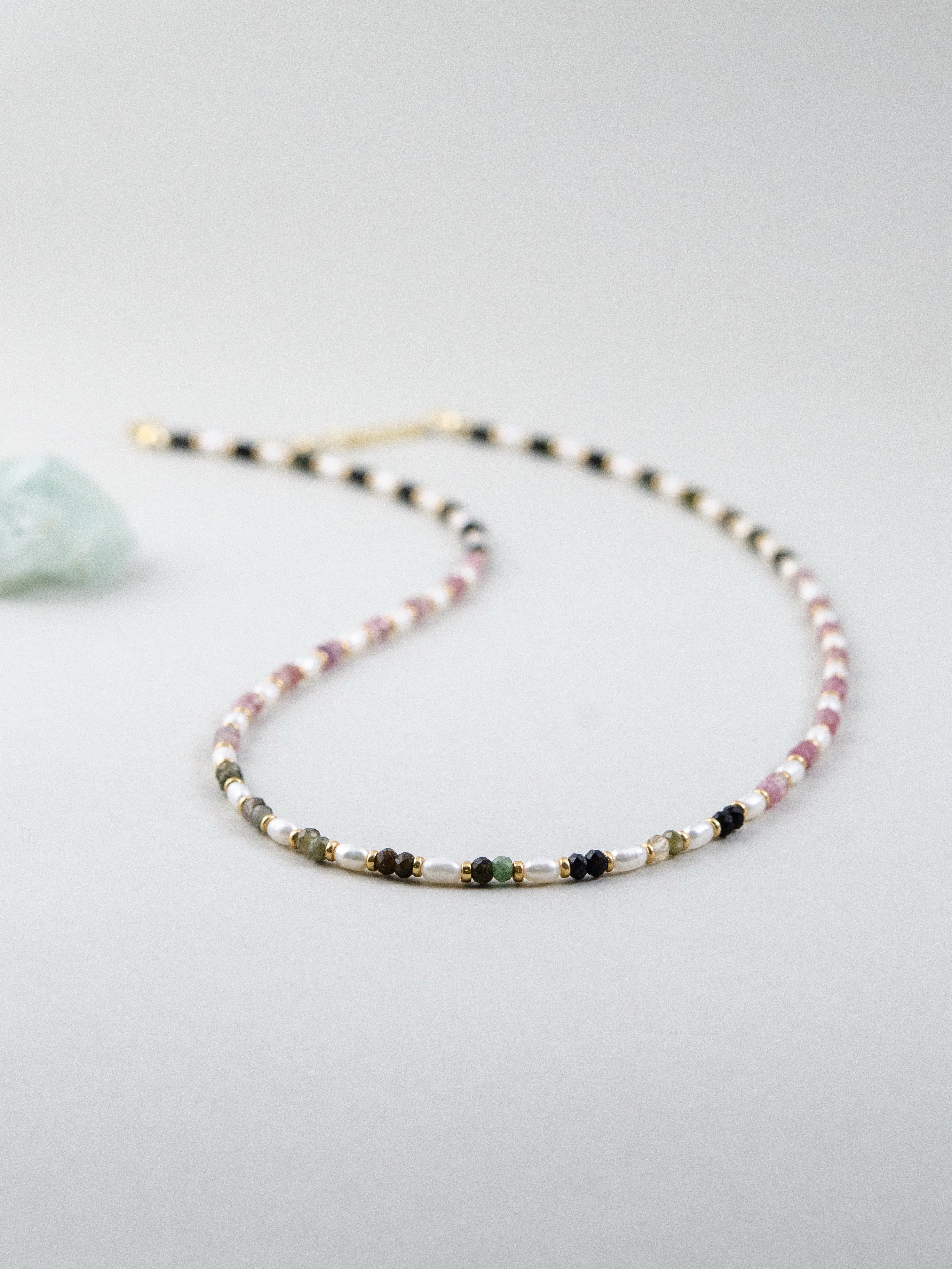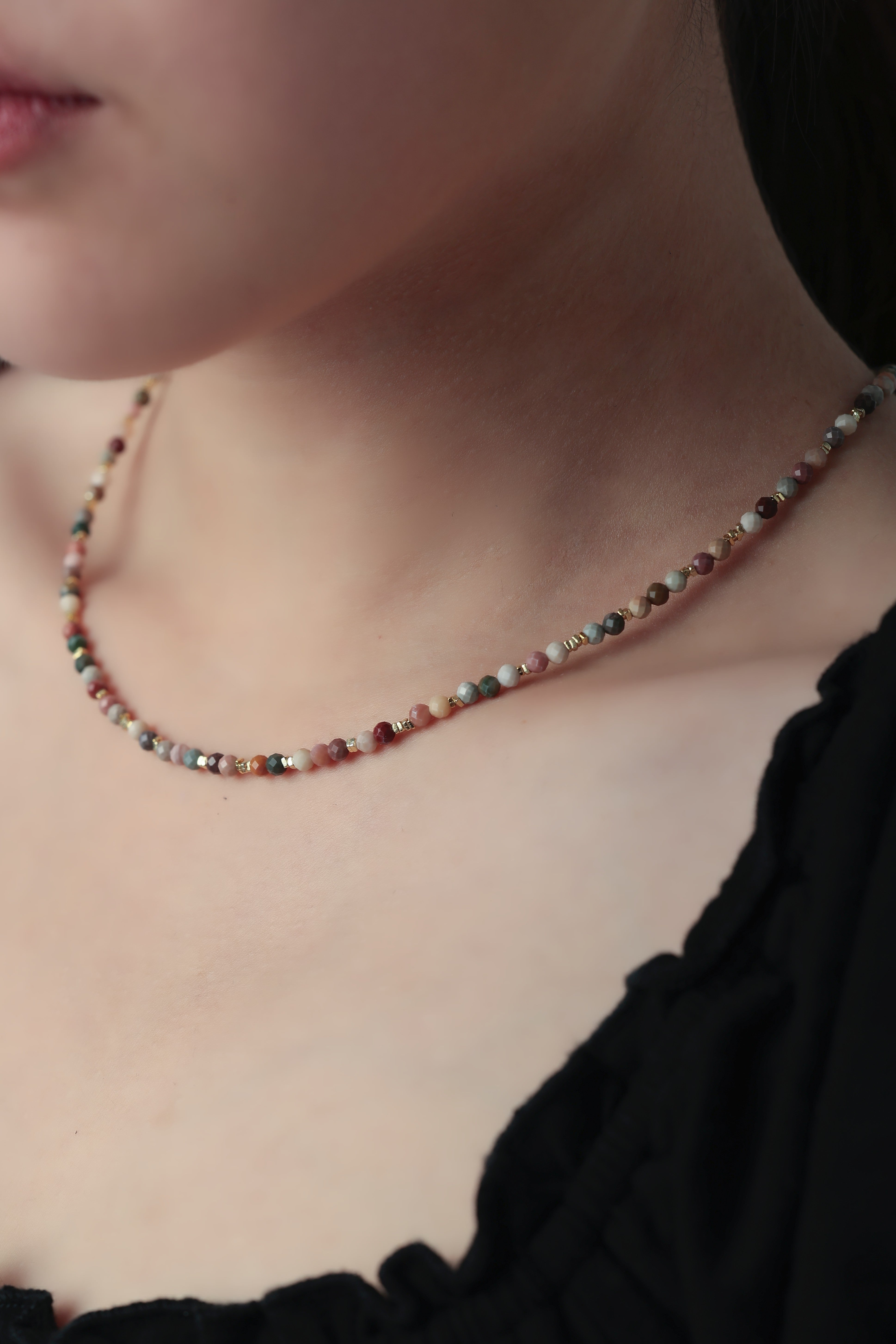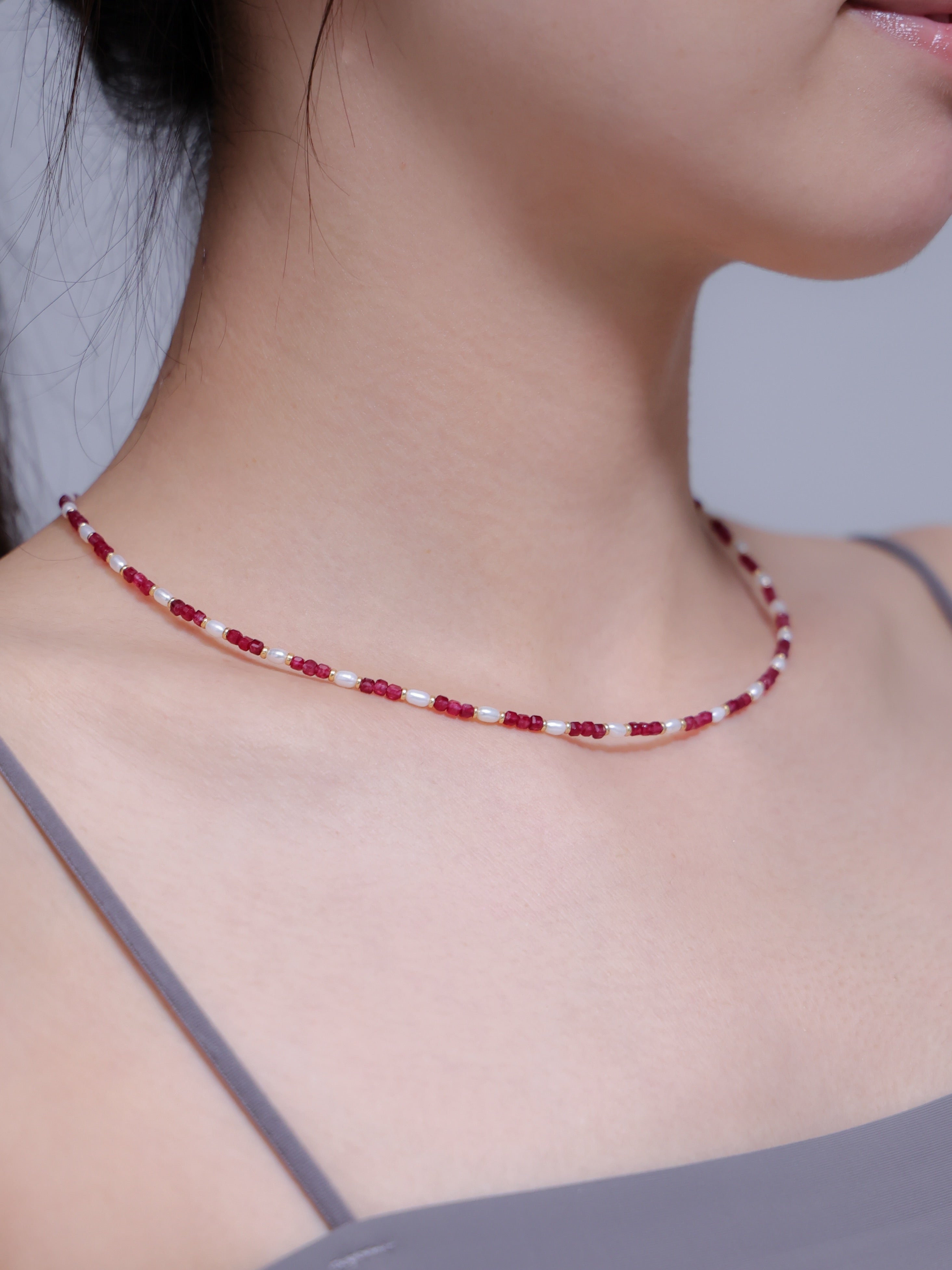 ・ネックレスは1粒や短めチェーンでミニマルに。重ねづけで奥行きをプラス。