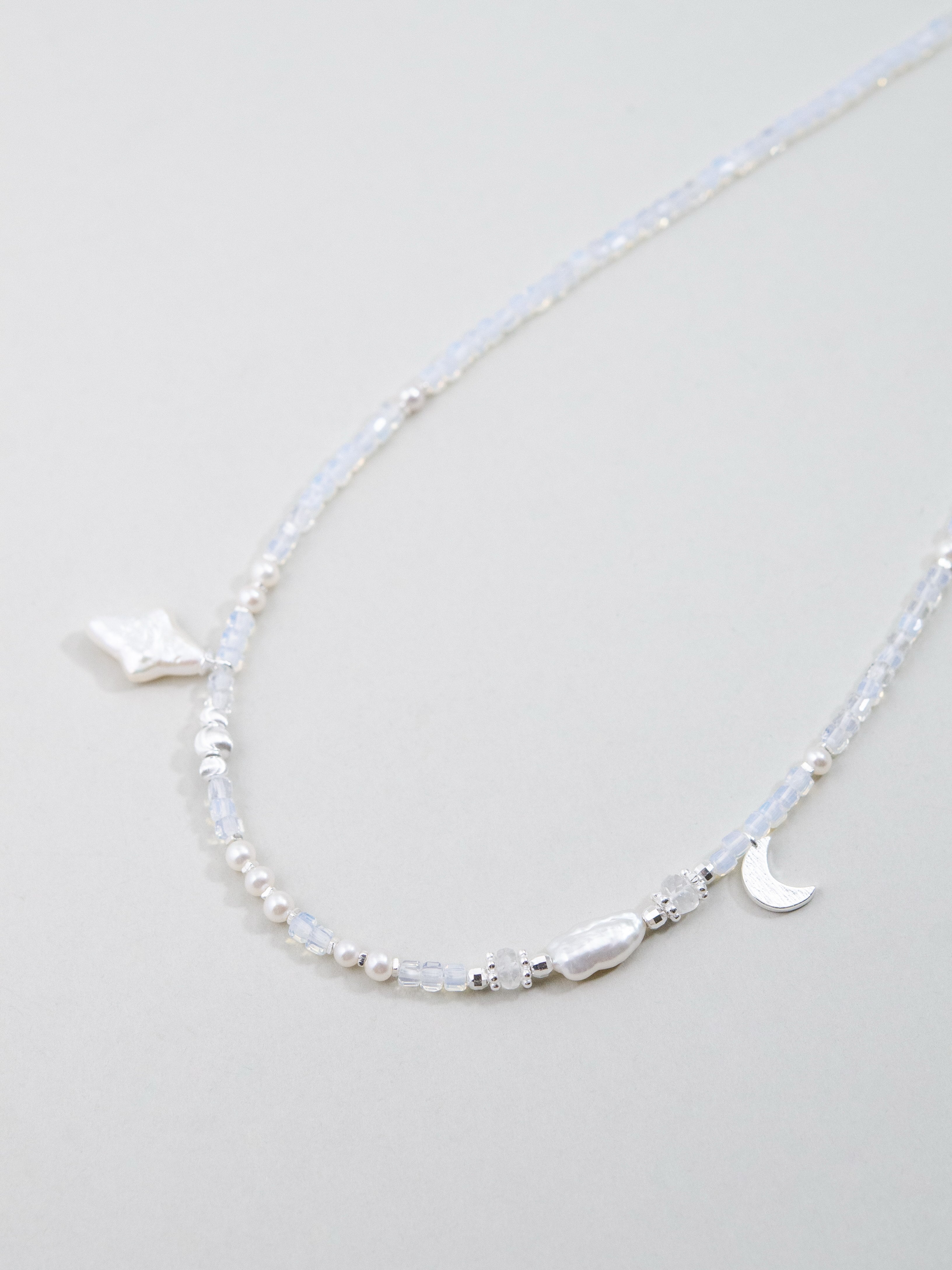 ネックレスは重ねづけで夜空の濃淡を、ピアスは左右で星と月を遊ばせるアシンメトリーもおすすめ。ギフトにも最適です。