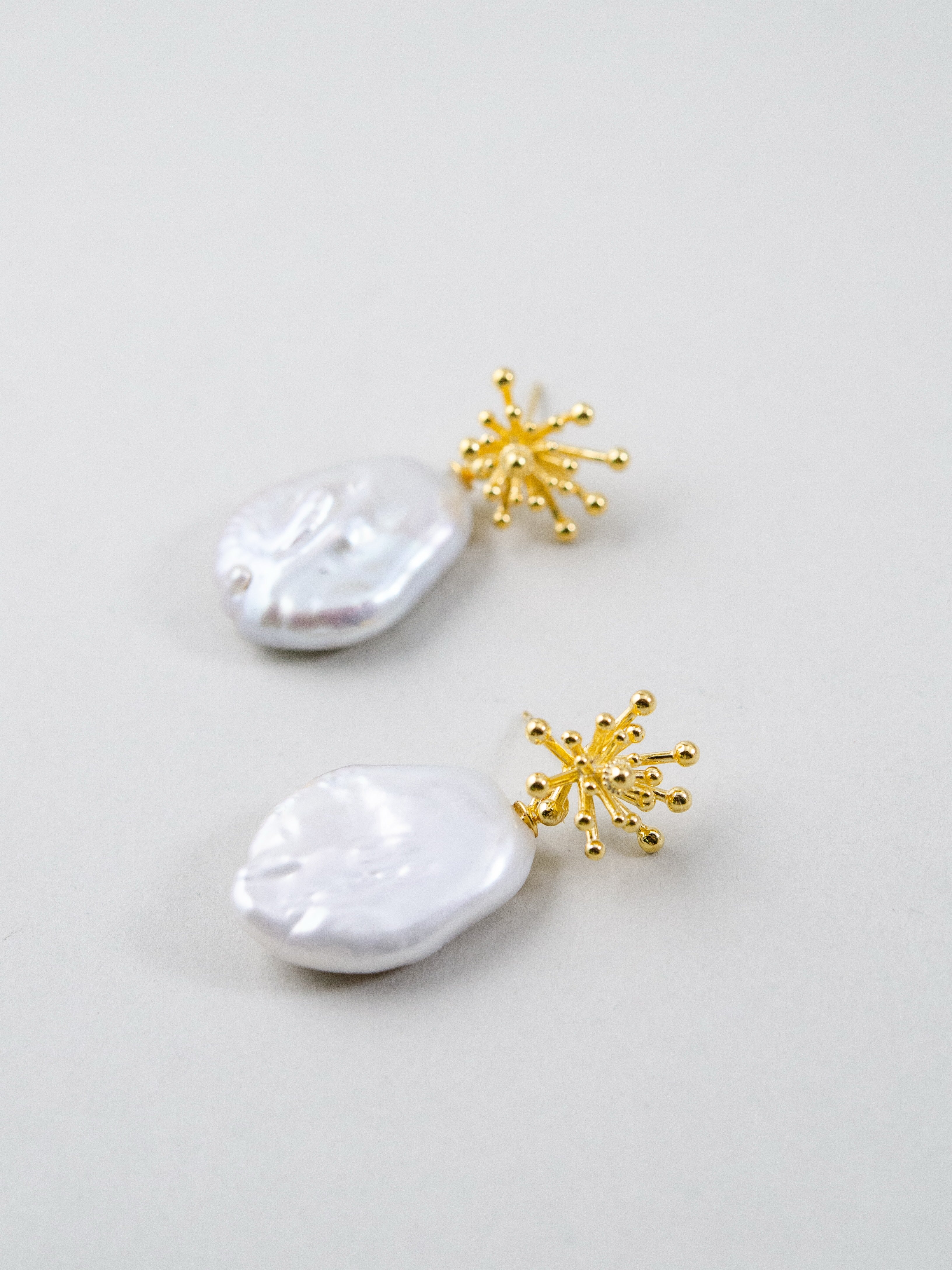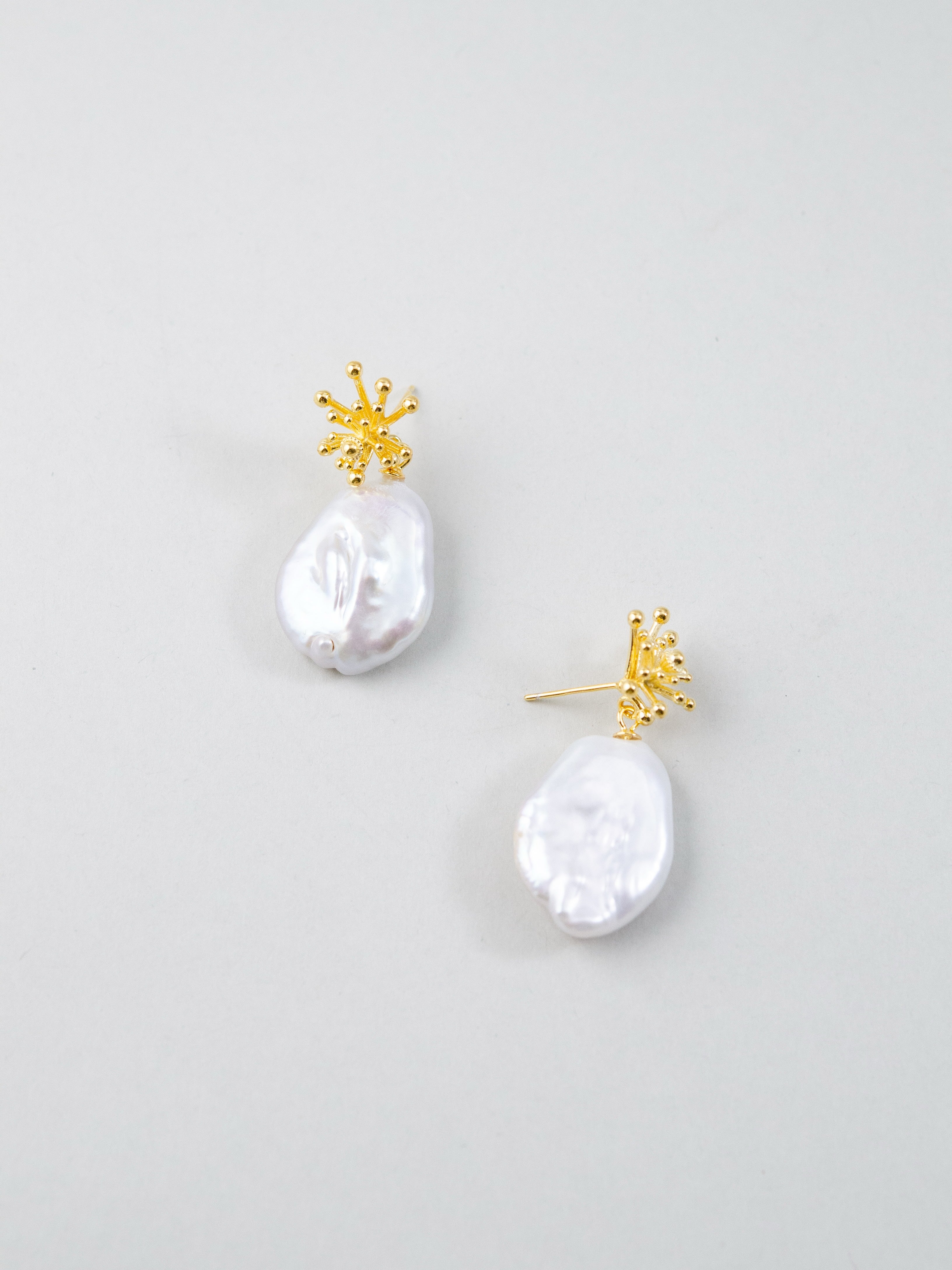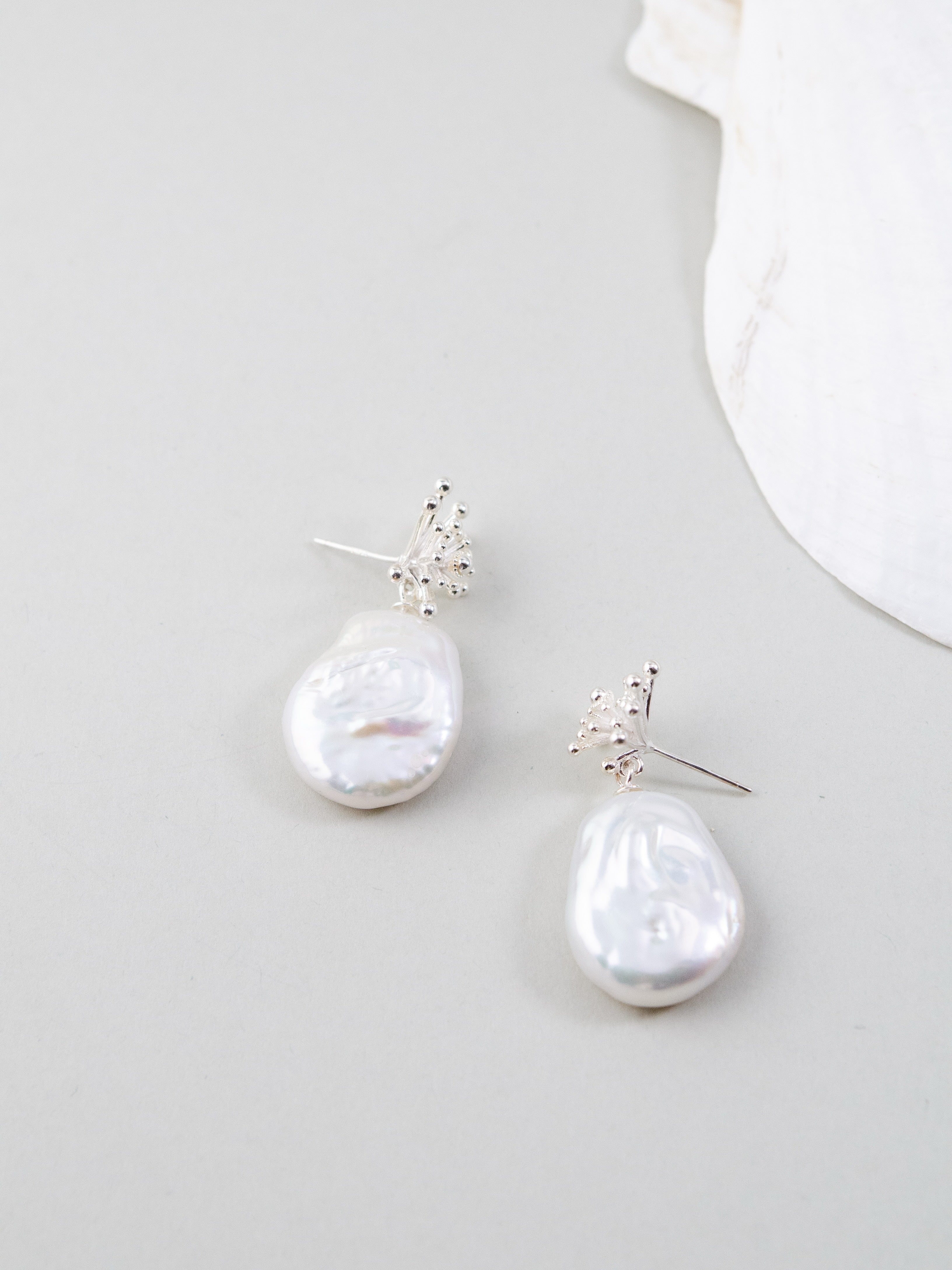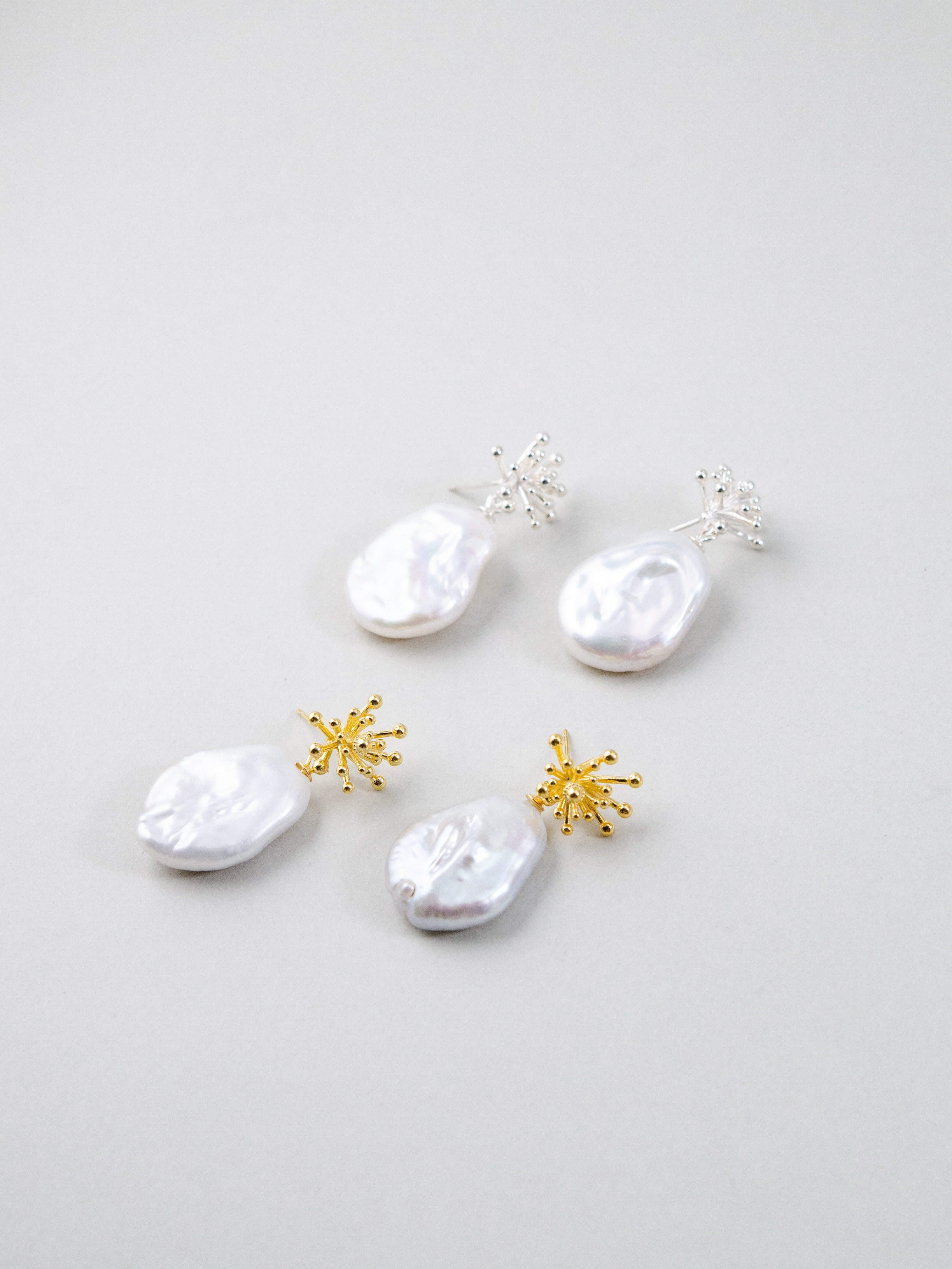 천연의 바로크 펄을 사용하고 있기 때문에, 색미나 형상에는 개체차이가 있습니다.각각의 피어스는, 세계에 하나만의 독특한 아름다움을 가지고 있습니다.실버의 부분은 세세한 디테일까지 정중하게 만들어져 내구성도 뛰어납니다.