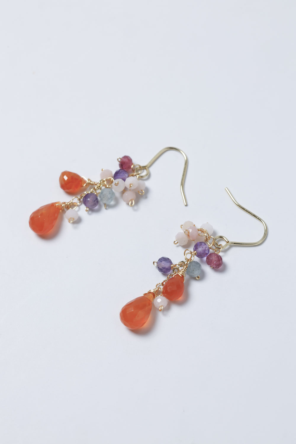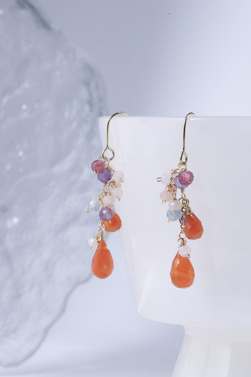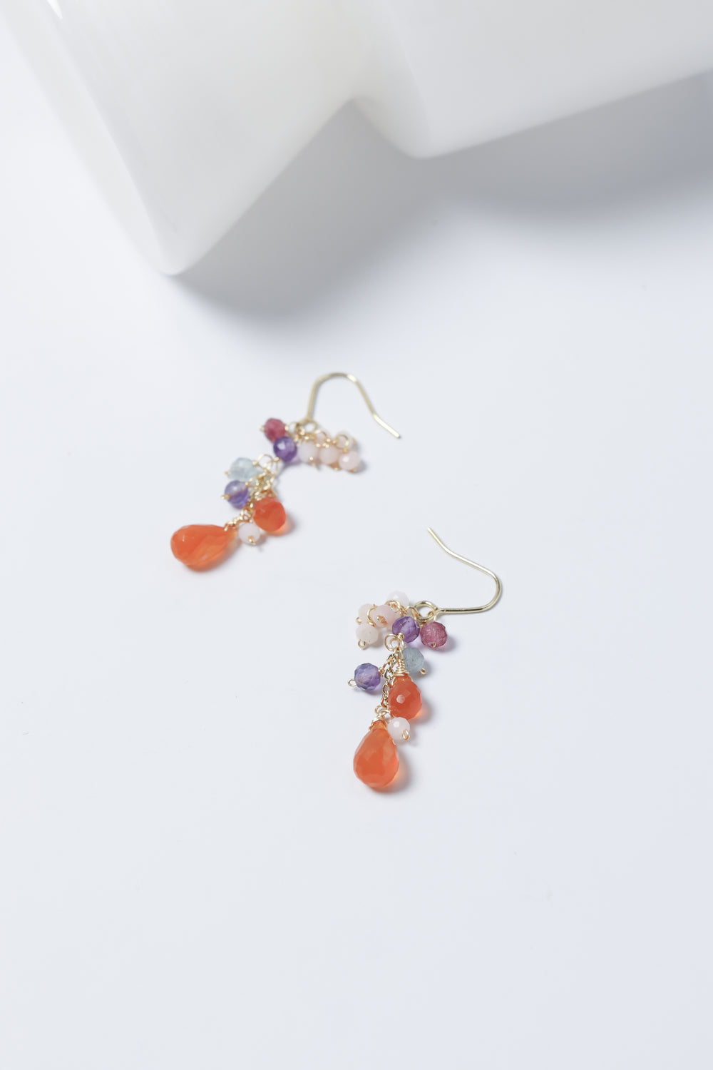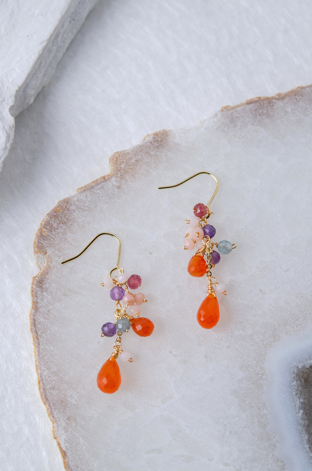 🌿 에디자인 컨셉 <br>열정적인 오렌지 카네리안을 주역으로 투명감 넘치는 플로라이트와 부드러운 색조의 오팔을 맞춘, 풍부한 귀걸이입니다.