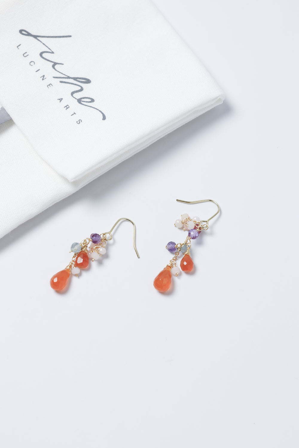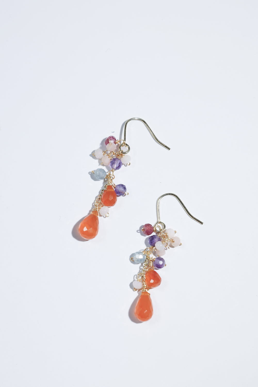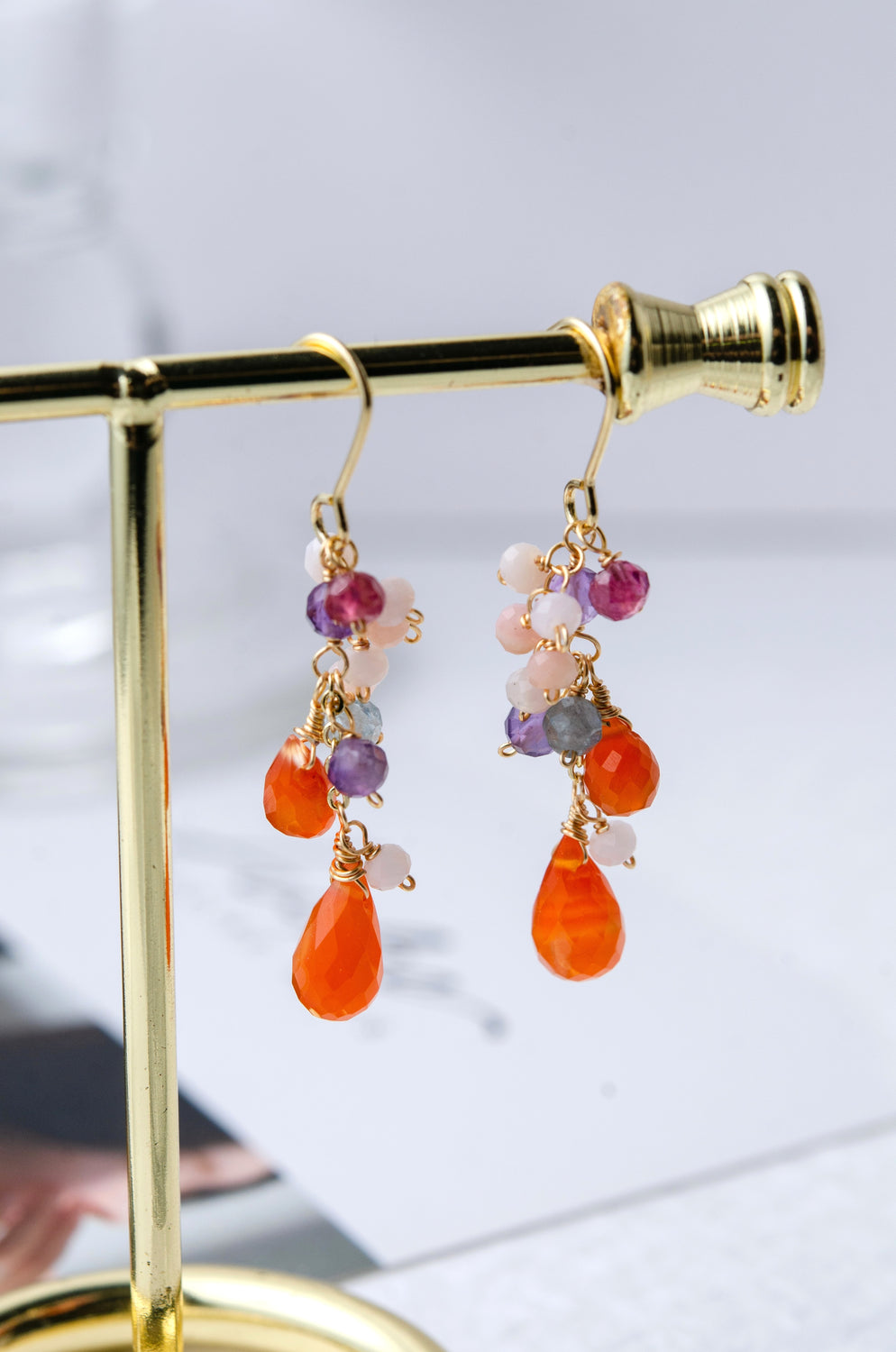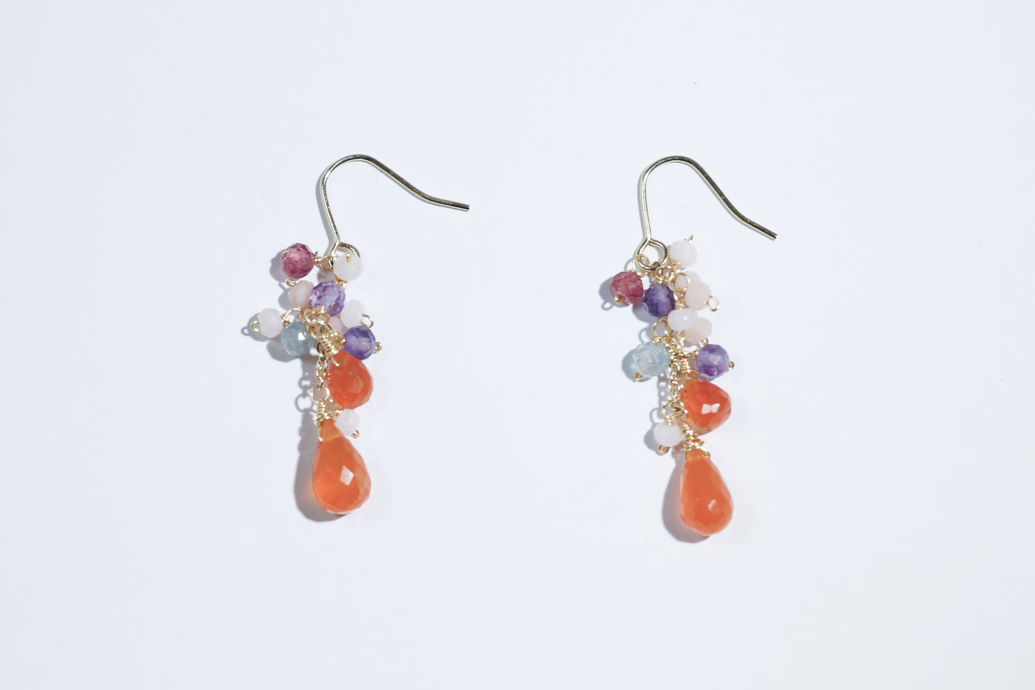 🌿 에디자인 컨셉 <br>열정적인 오렌지 카네리안을 주역으로 투명감 넘치는 플로라이트와 부드러운 색조의 오팔을 맞춘, 풍부한 귀걸이입니다.