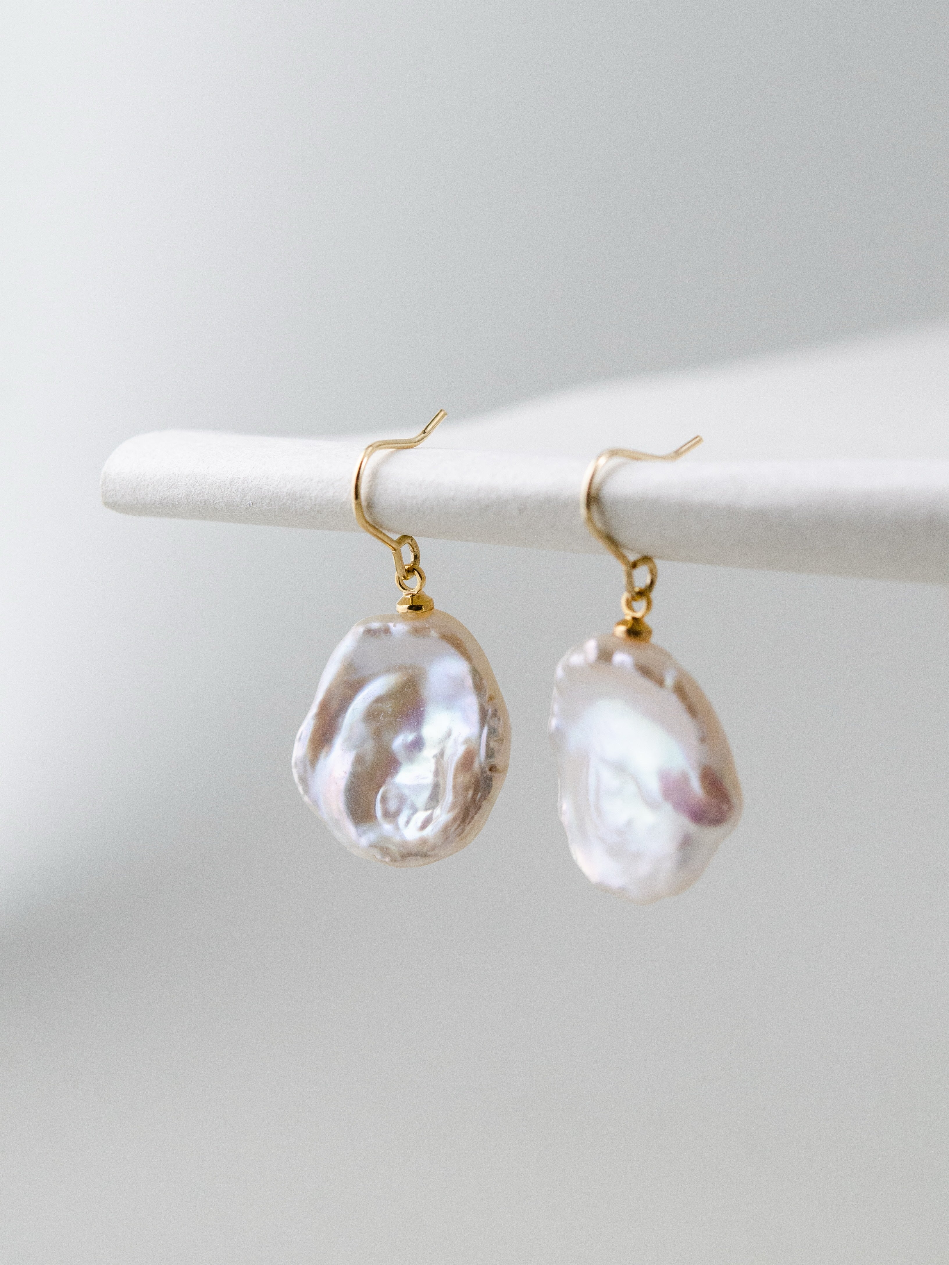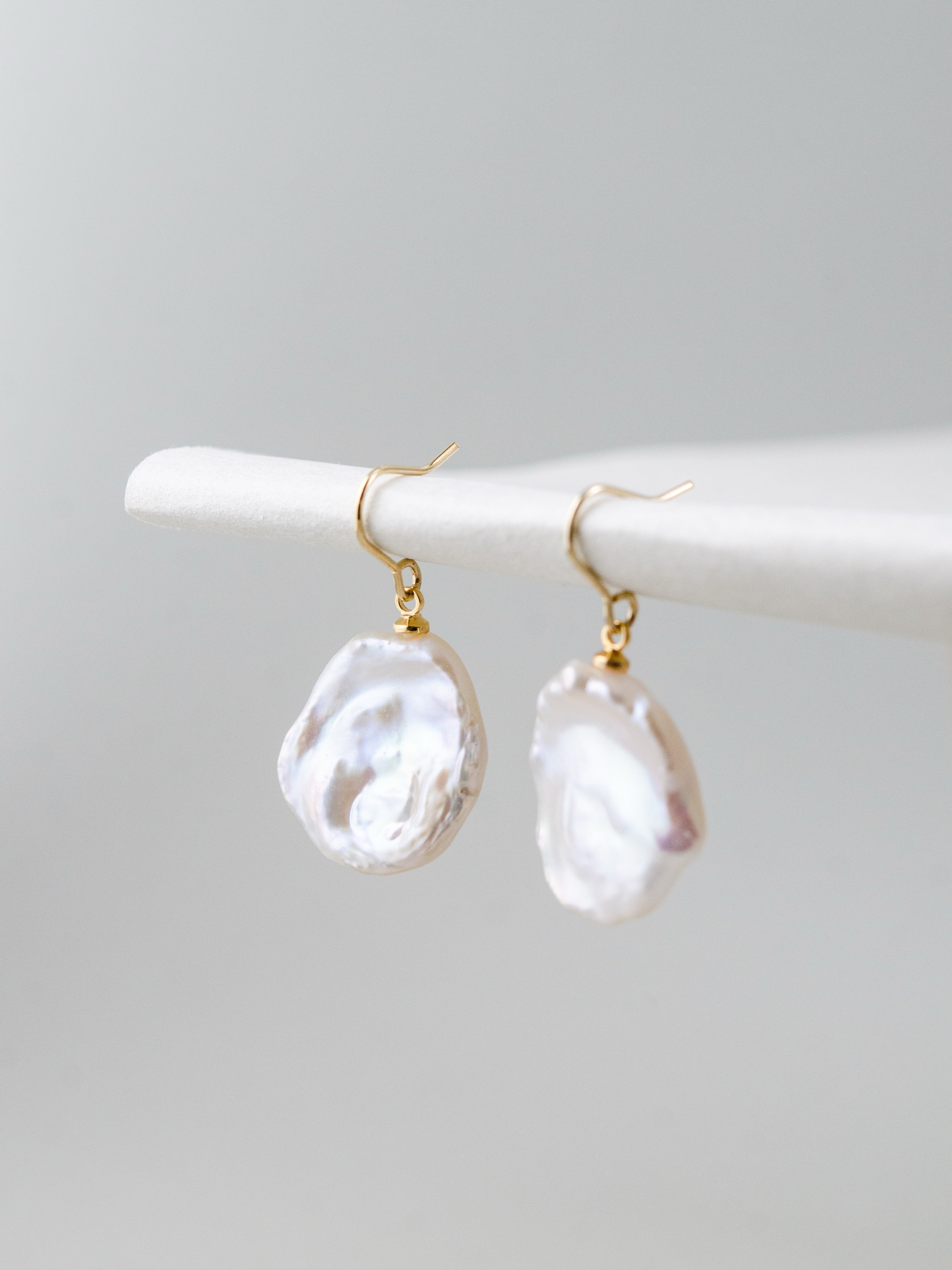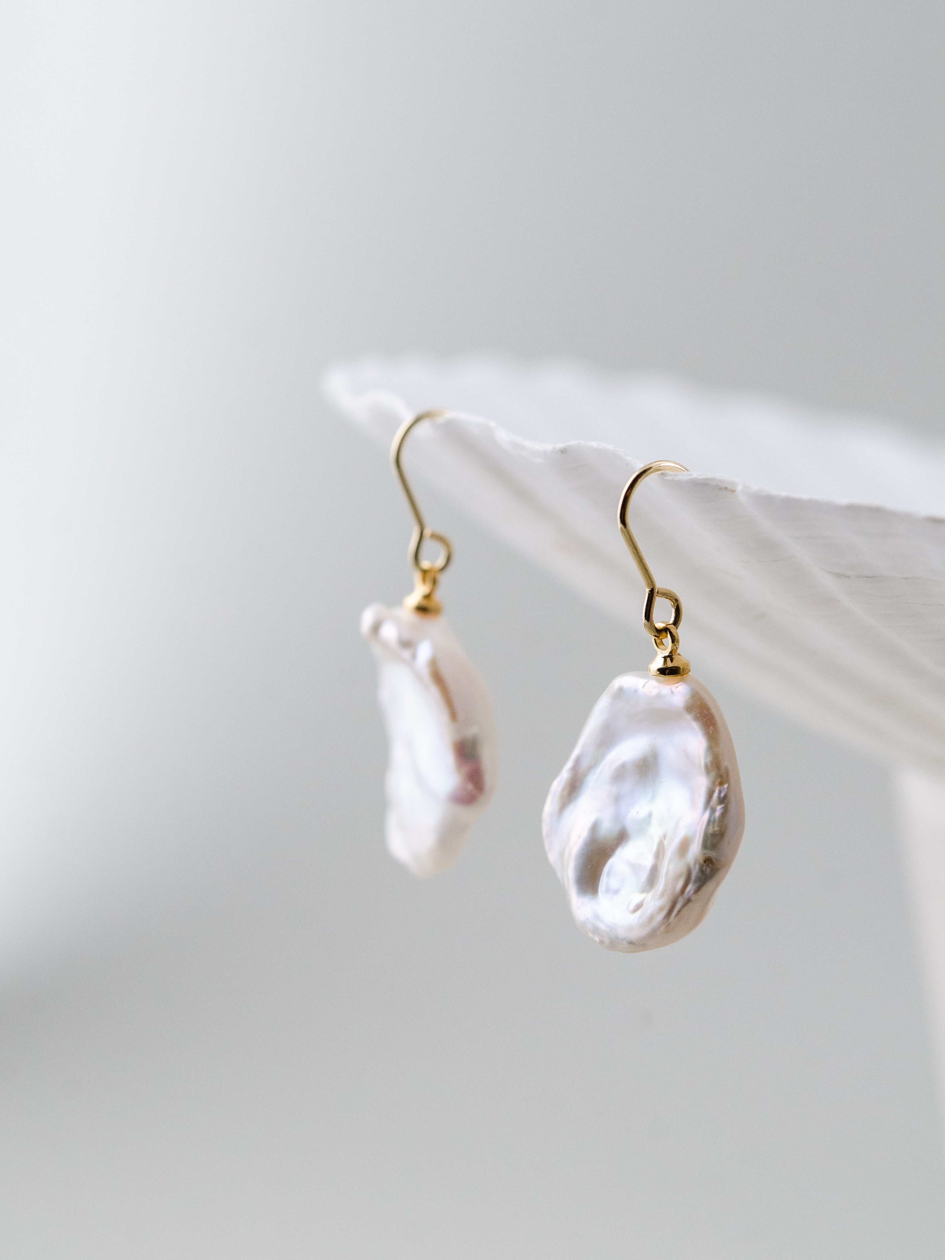 自然が生んだ一点物の美しさを耳元に。水面のような艶と、ひとつひとつ異なるシルエット。唯一無二のバロックパールの個性を活かし、シンプルなフックに仕上げました。夏の陽射しに映える、涼やかで存在感のあるアクセサリーです。