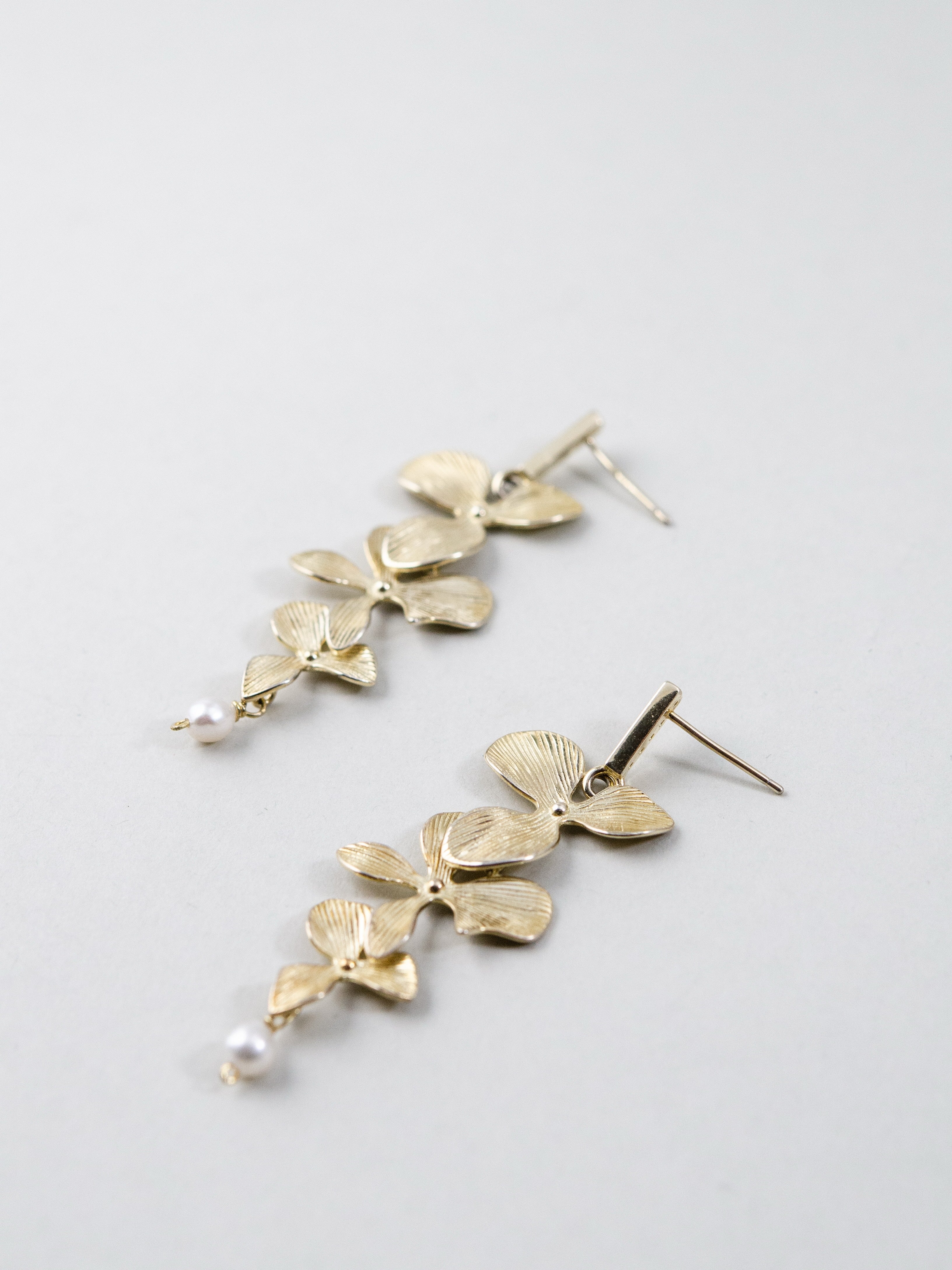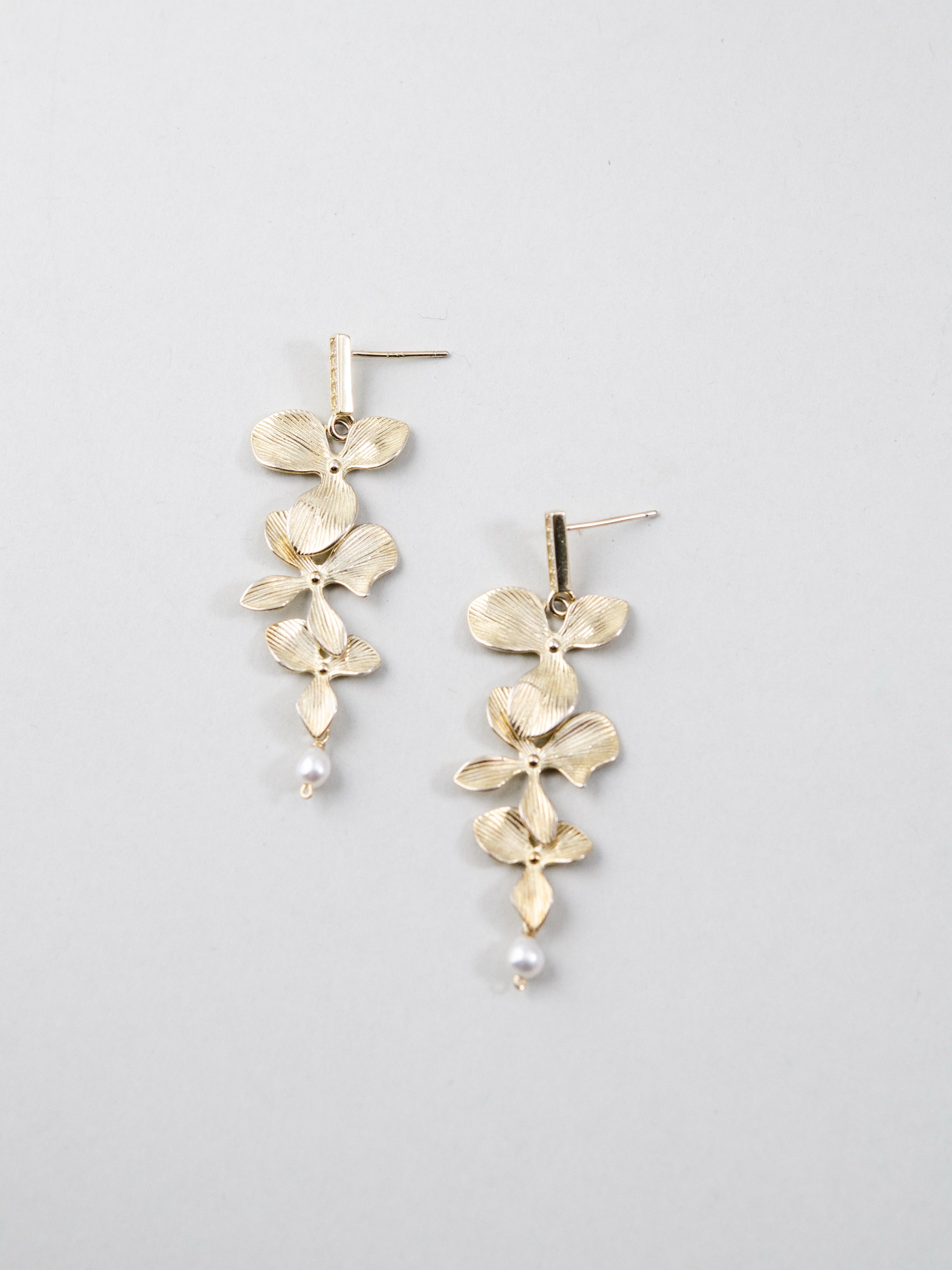 華やかなデザインながらも軽やかに仕上げているため、日常使いにもおすすめ。パールネックレスやシルバーチェーンとの組み合わせで、上品な印象をさらに高めて。