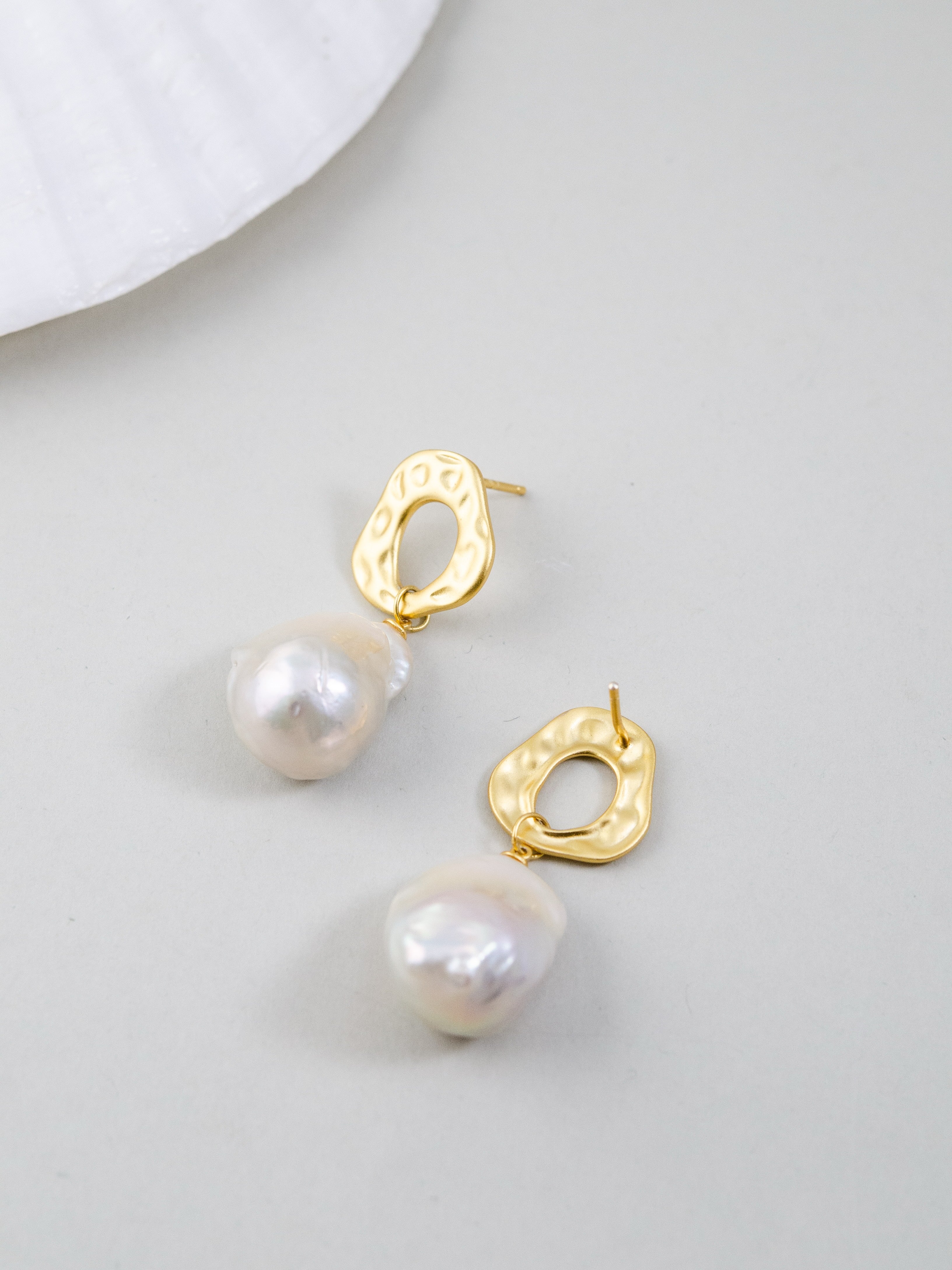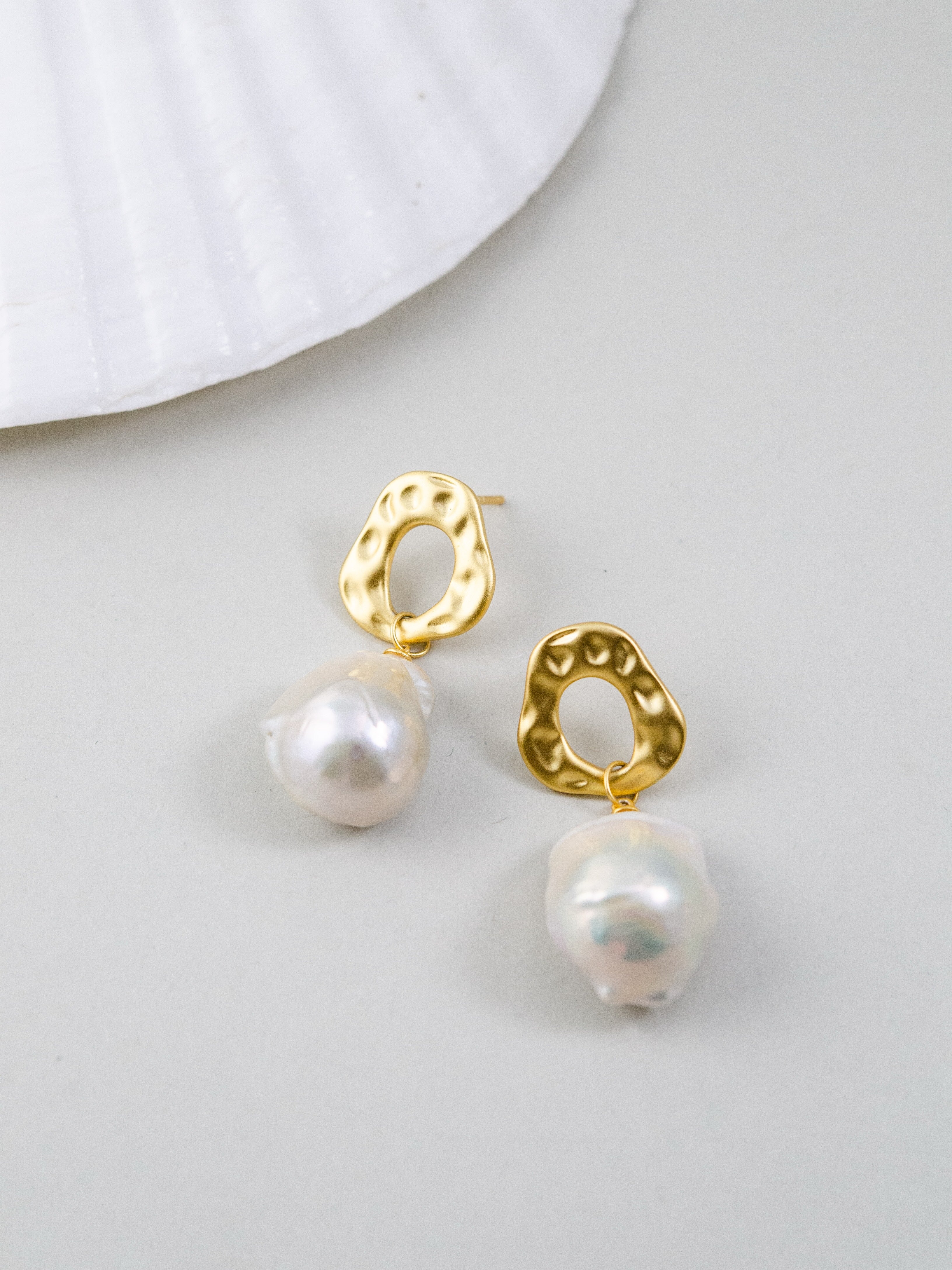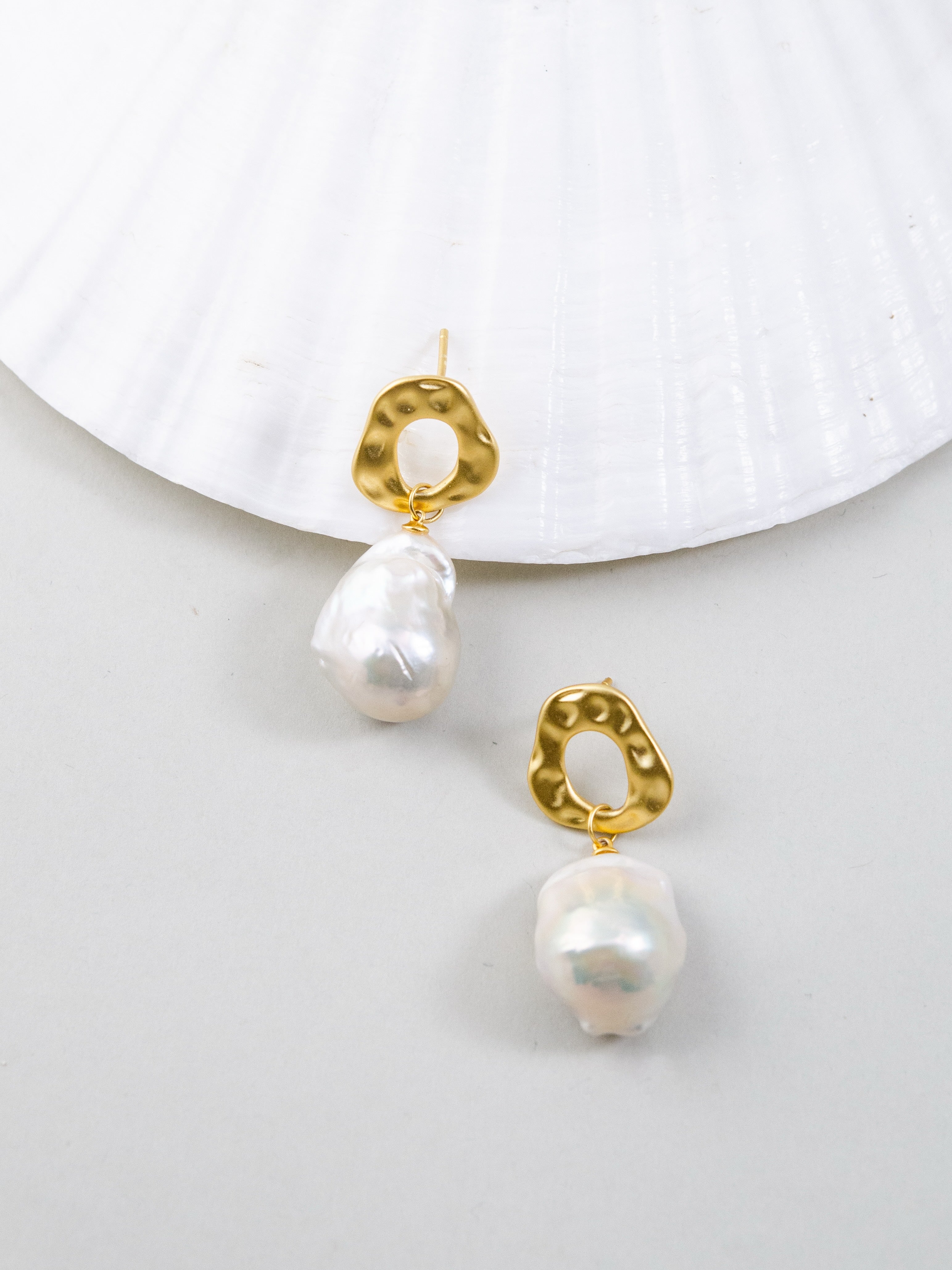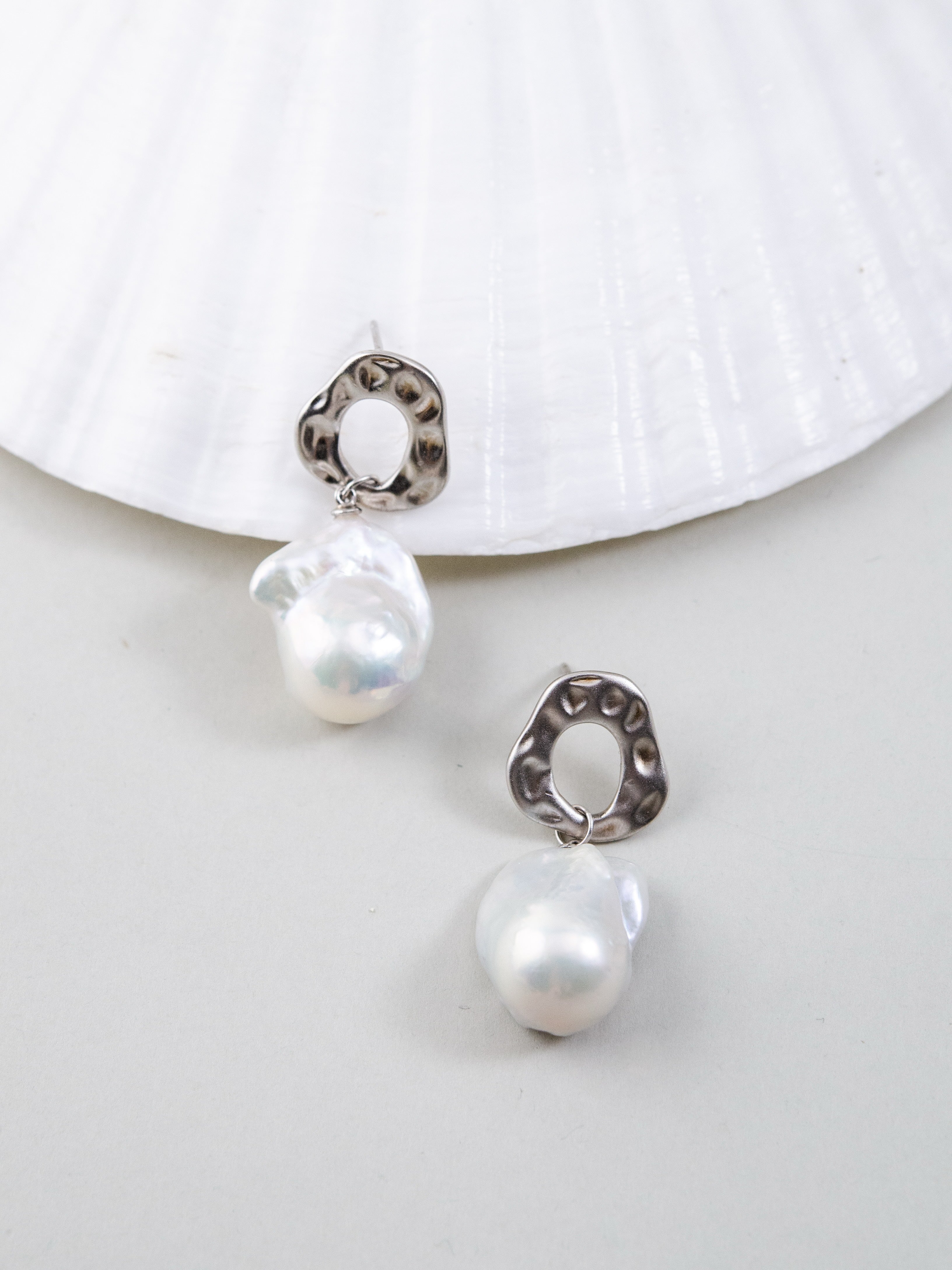 自然界からインスピレーションを受け、滑らかな凹凸が特徴のメタルパーツと個性豊かな天然バロックパールを組み合わせたピアスです。無機質な金属と有機的なパールのフォルムが融合し、モダンでアート感のある印象を演出します。一点一点形の異なるバロックパールは唯一無二の表情を持ち、耳元でさりげなく華やかさを添えます。