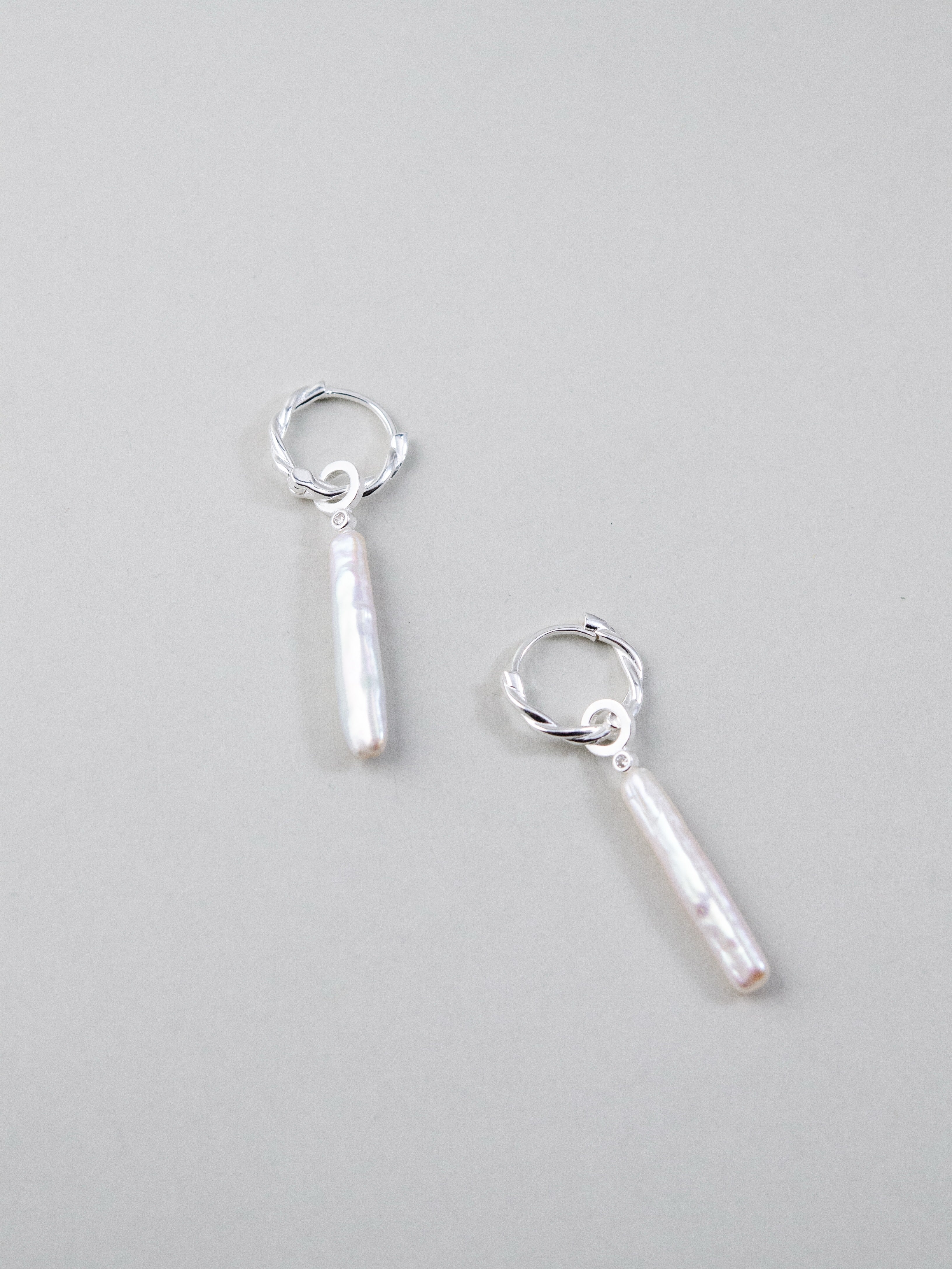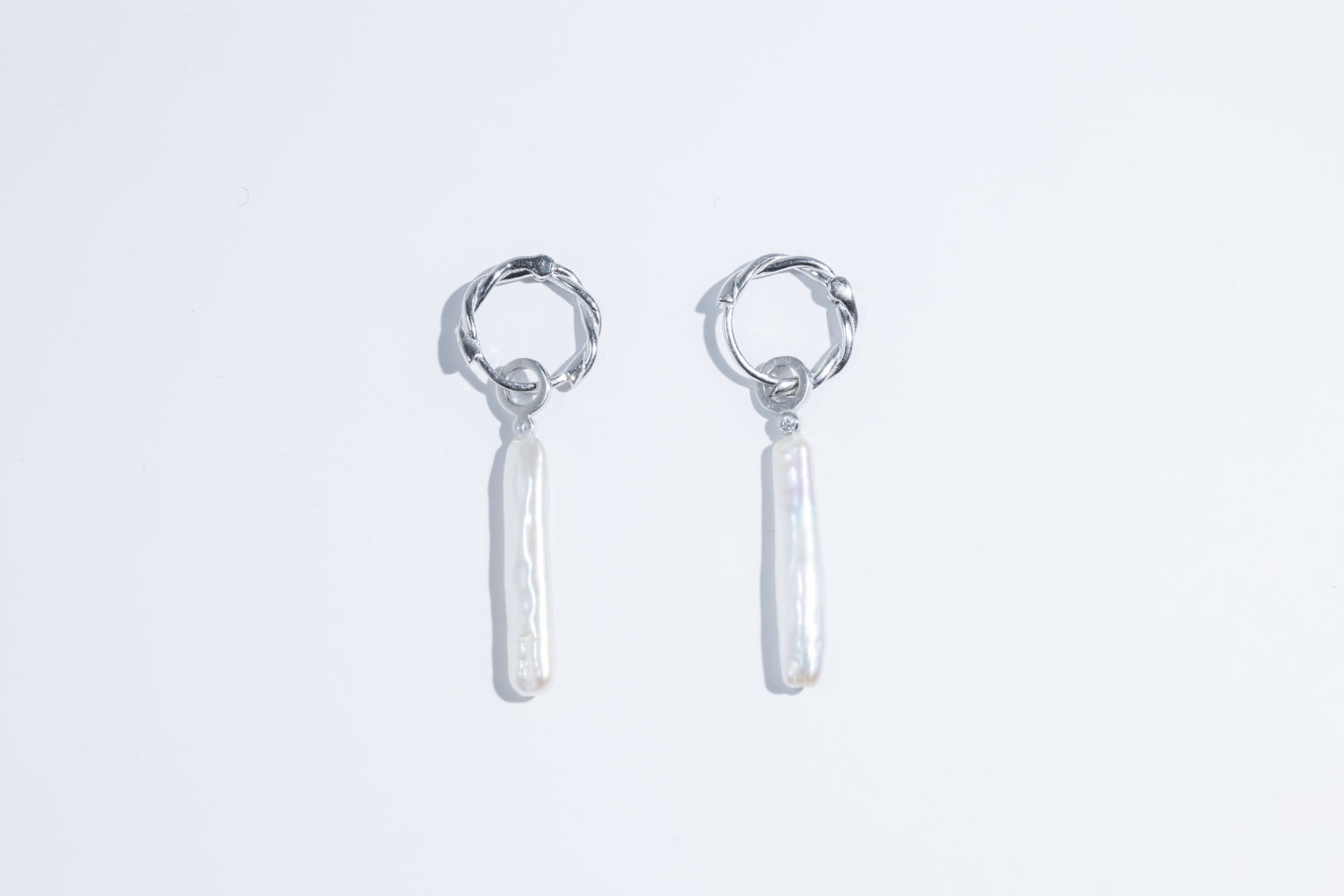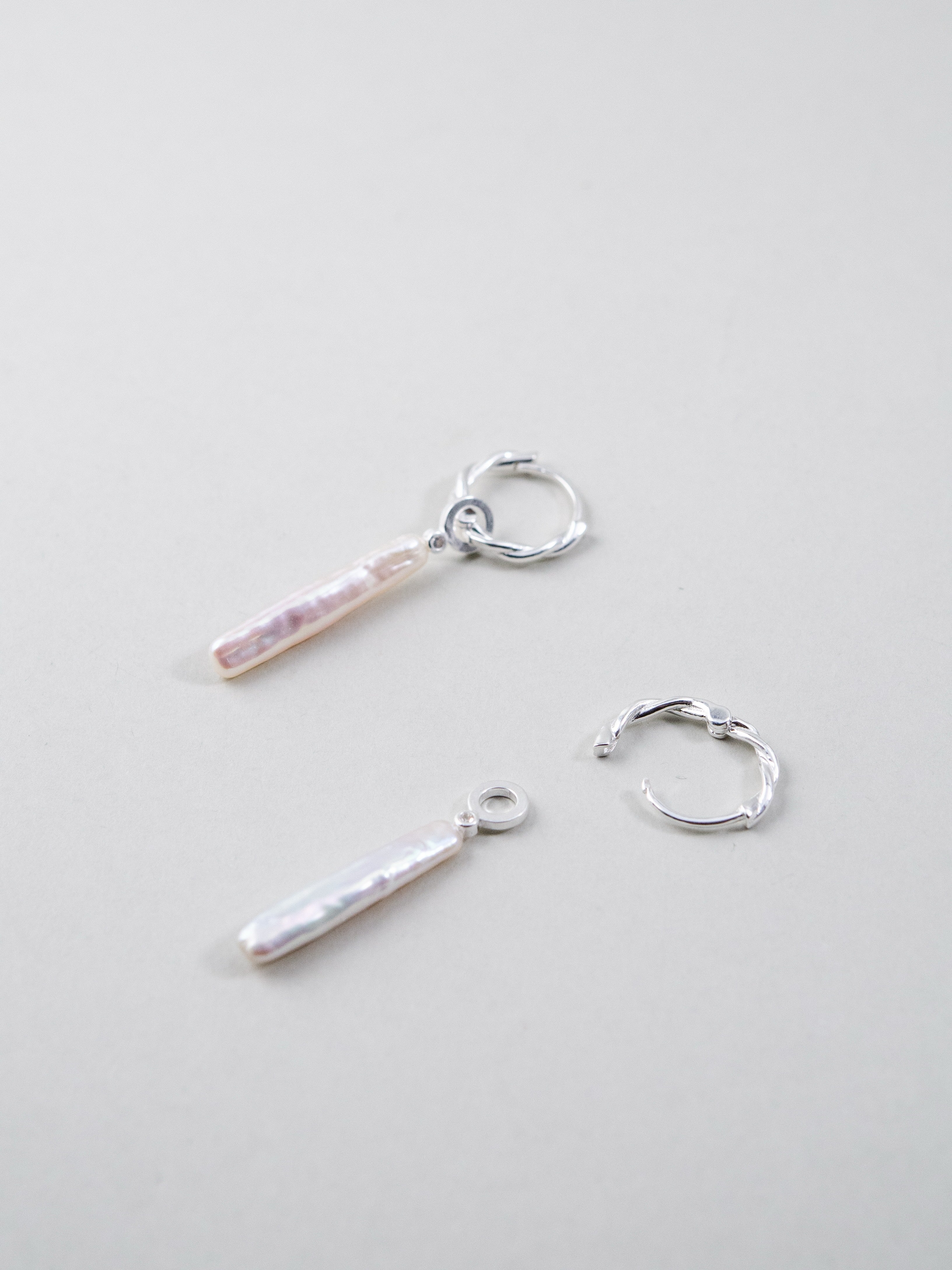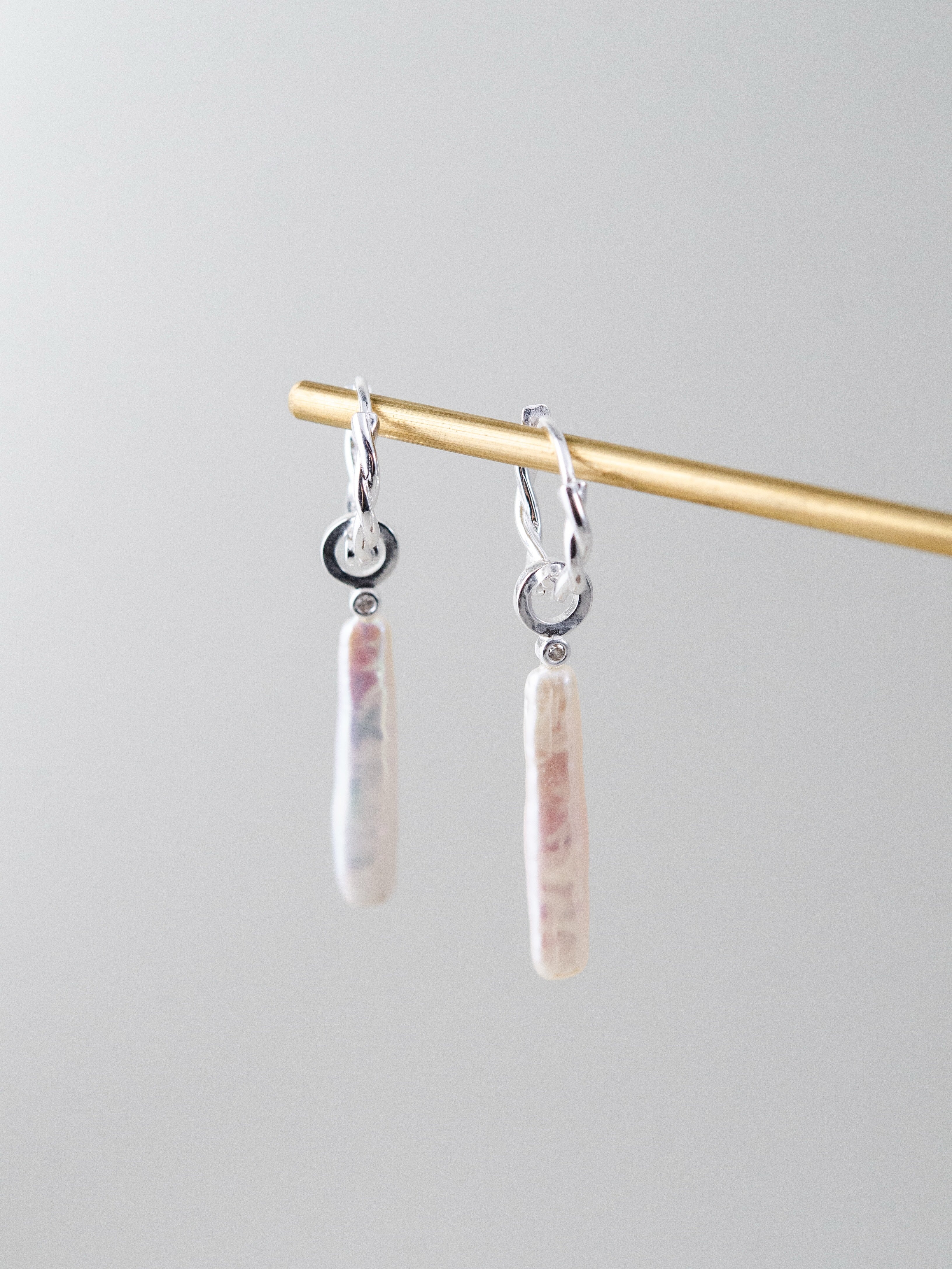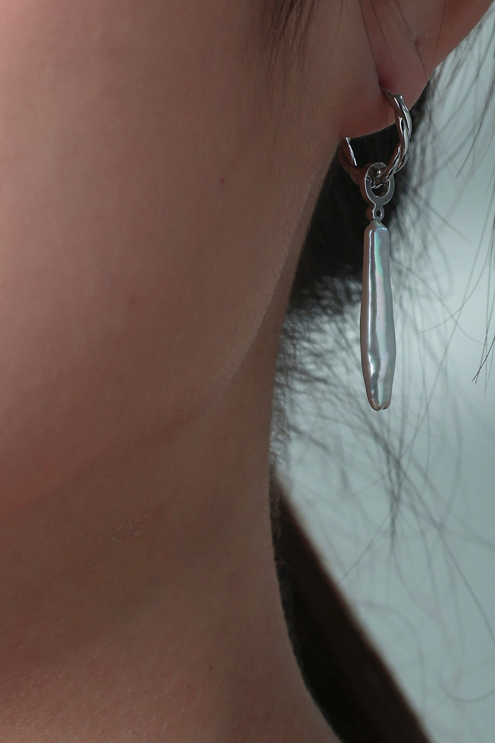 「モダンミニマリスト・バイカラーロングバーピアス」は、現代的なミニマルデザインが魅力のピアスです。ゴールドメッキとスターリングシルバーのリングから垂れる光沢のあるバイカラーバーが、シンプルながら耳元に洗練された存在感を与えます。細長いバーは動くたびにさりげなく揺れ、ナチュラルなスティックパールの個性と相まって上品さを演出。