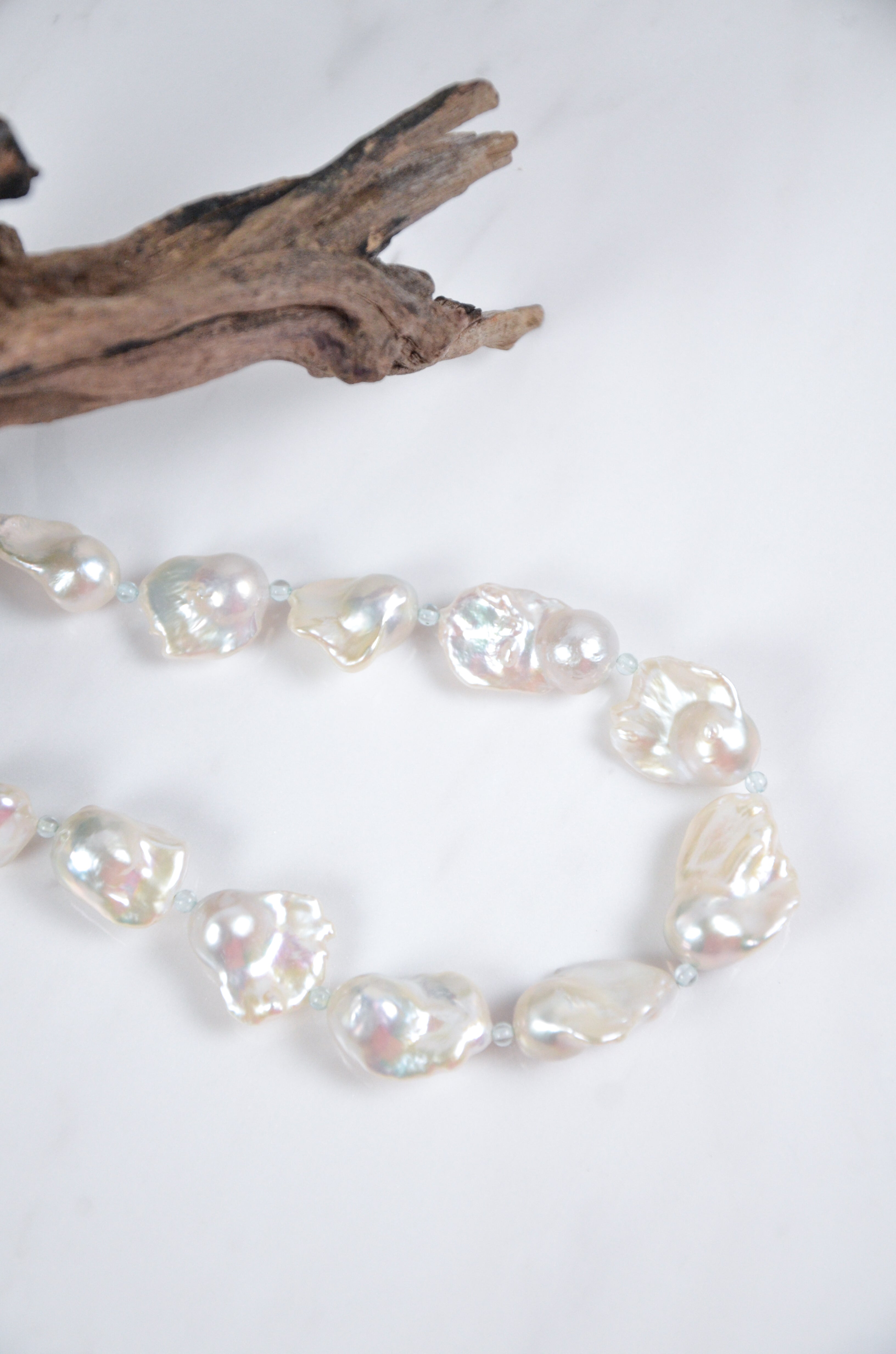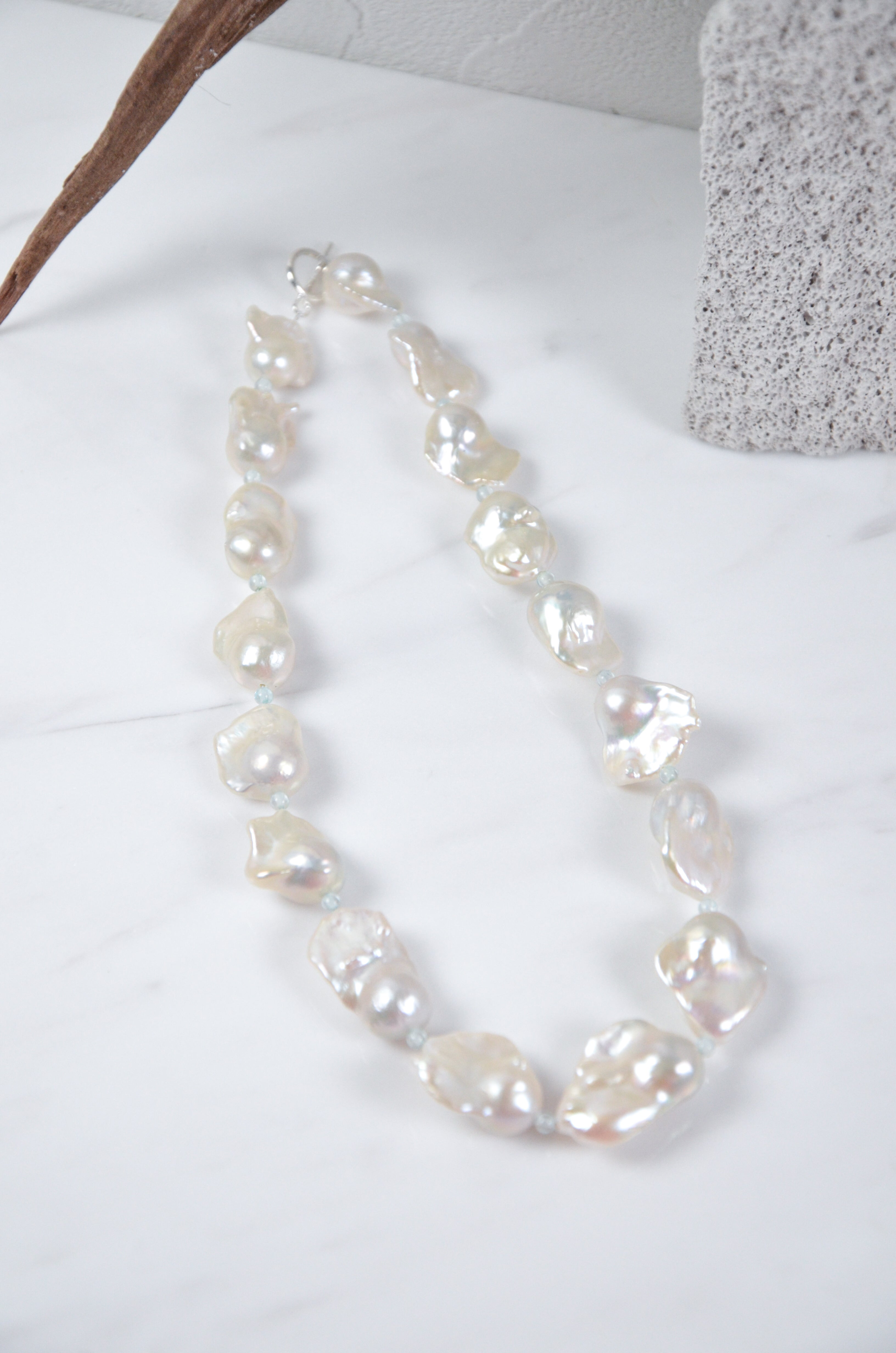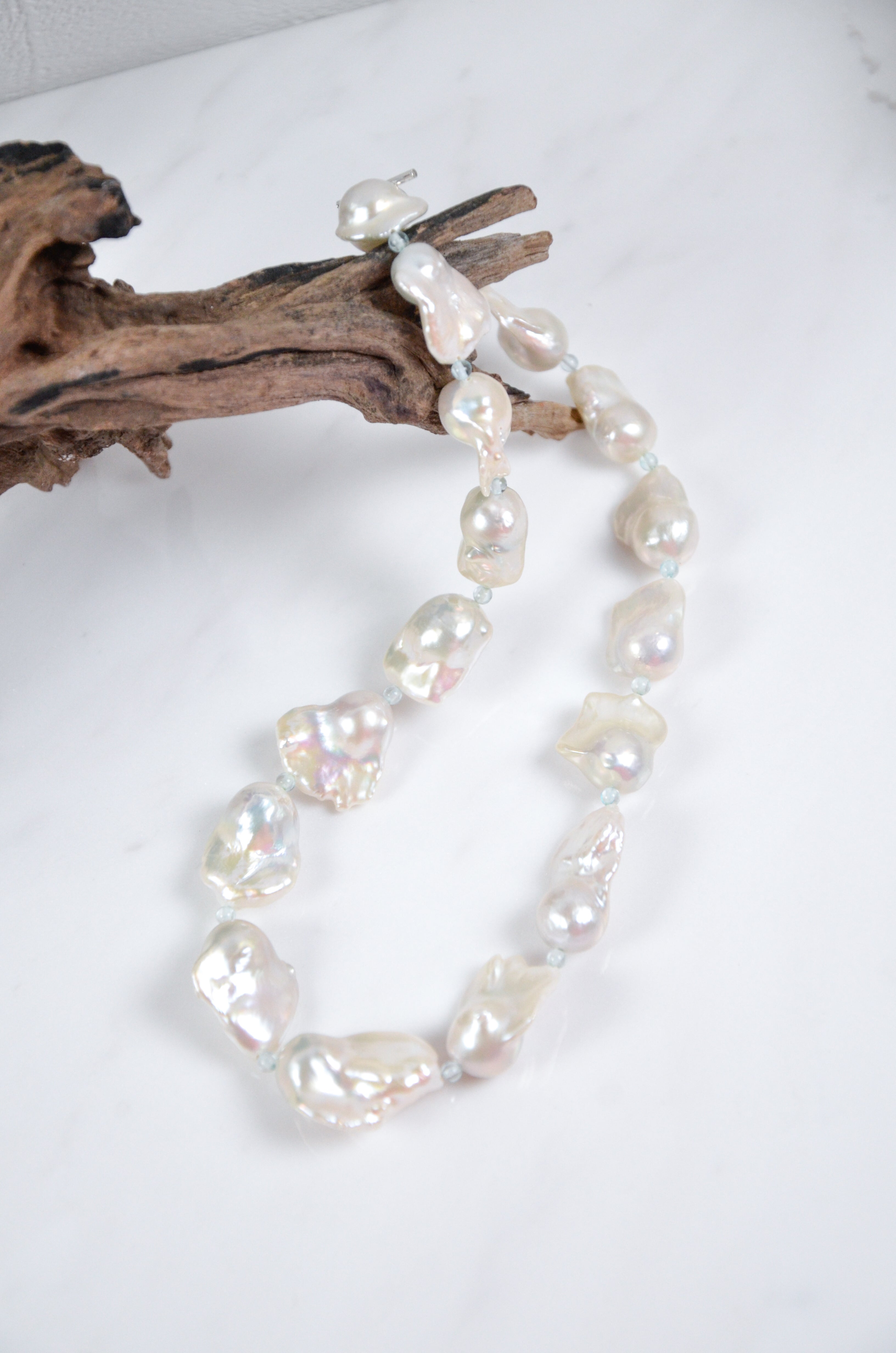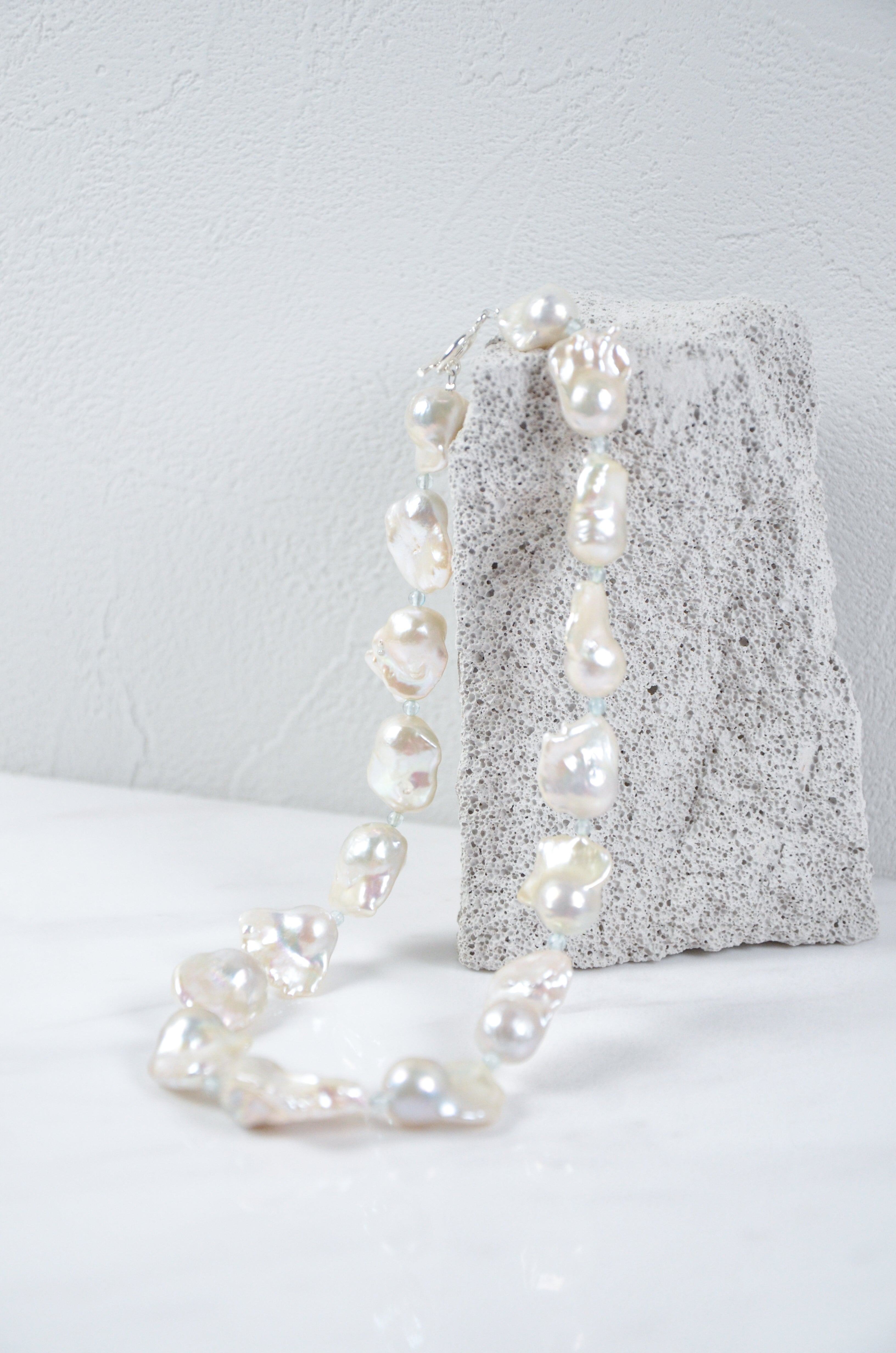 全体に大ぶりな異形淡水バロックパールを贅沢に並べたネックレスです。存在感のあるフォルムとボリューム感が、大人の華やかさと個性を際立たせます。「純粋」と「守護」の力を持つとされるパールは、心を清らかに保ち、人間関係に優しさと調和をもたらすといわれています。