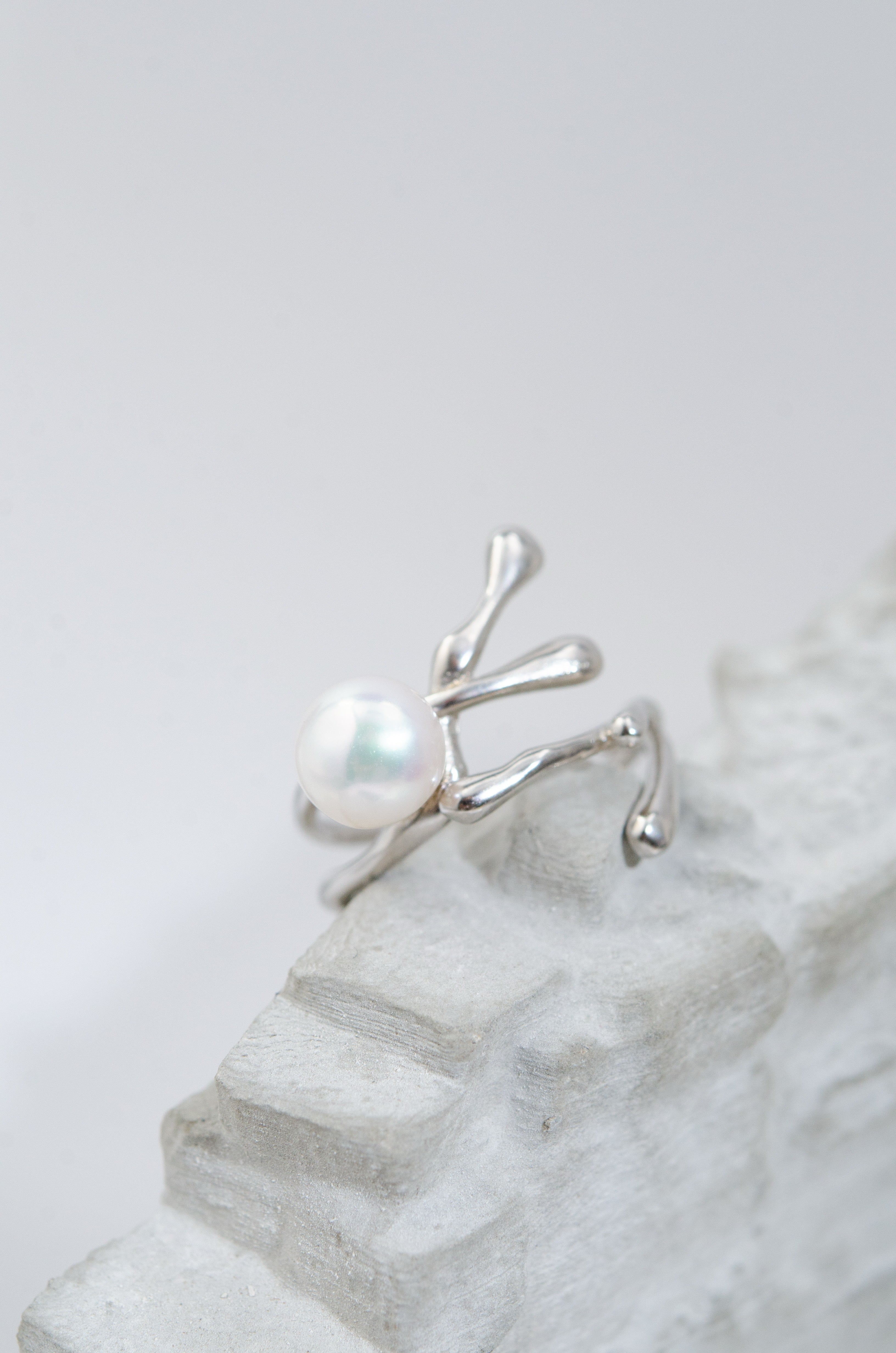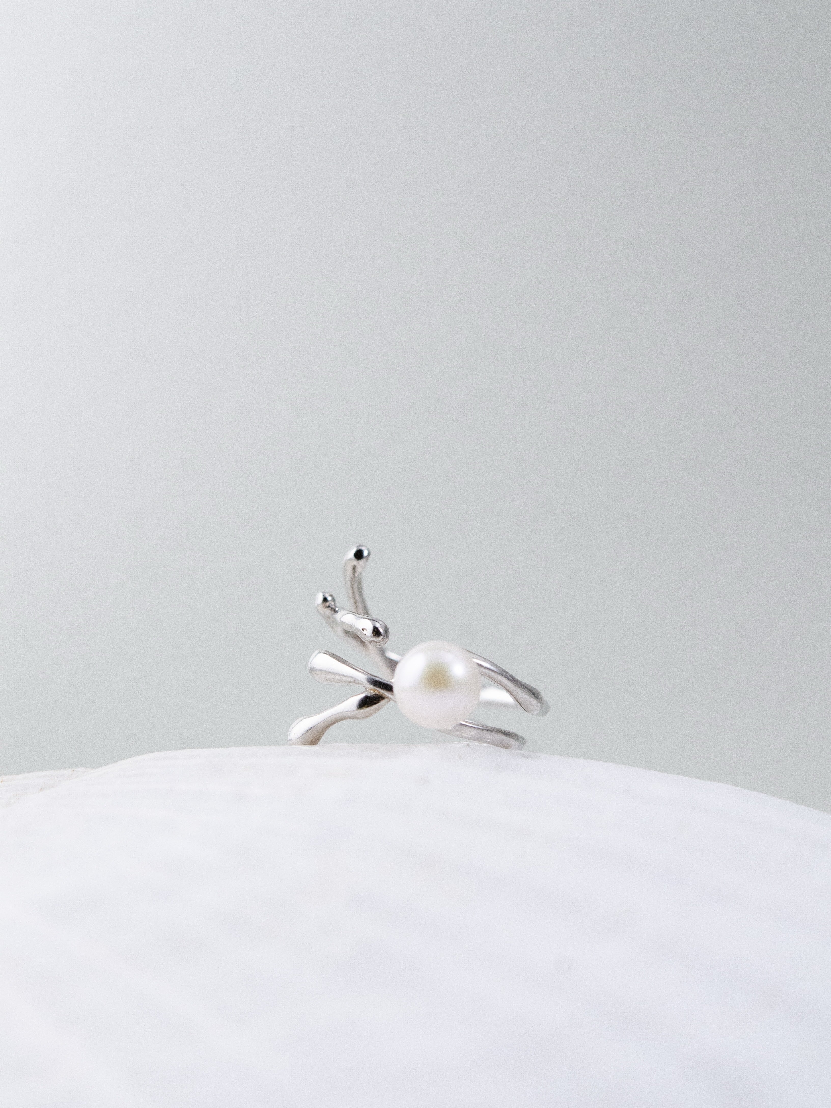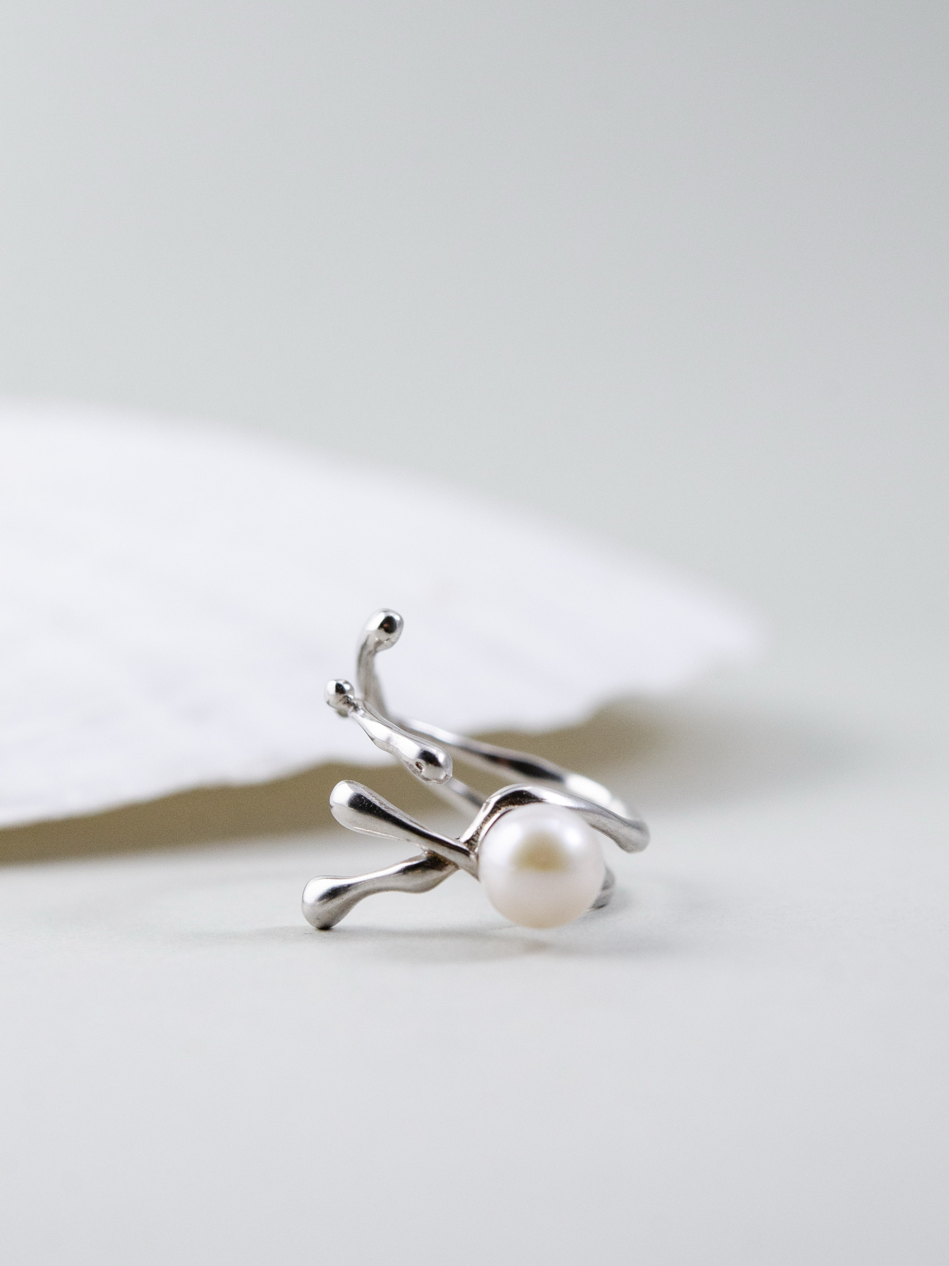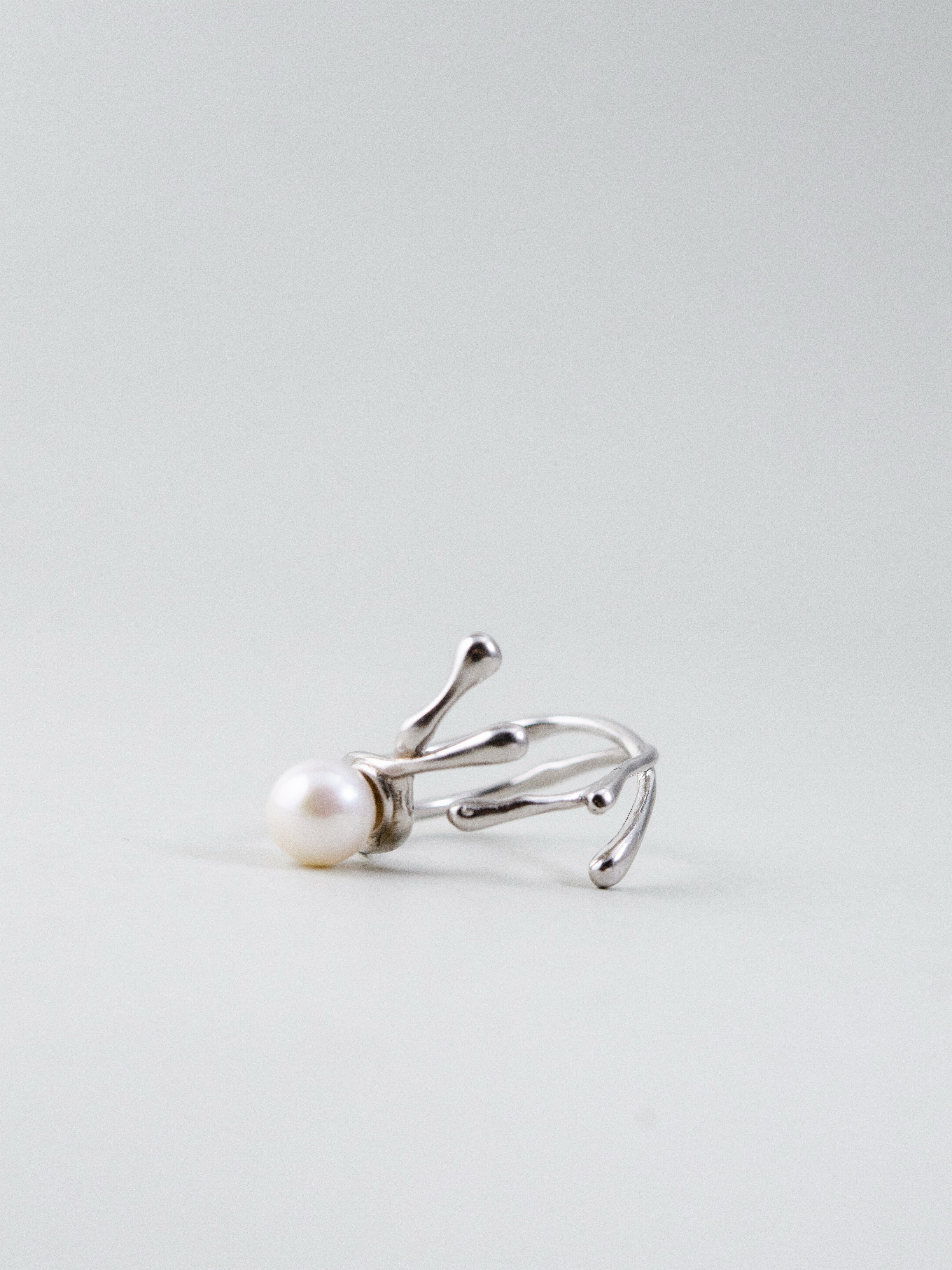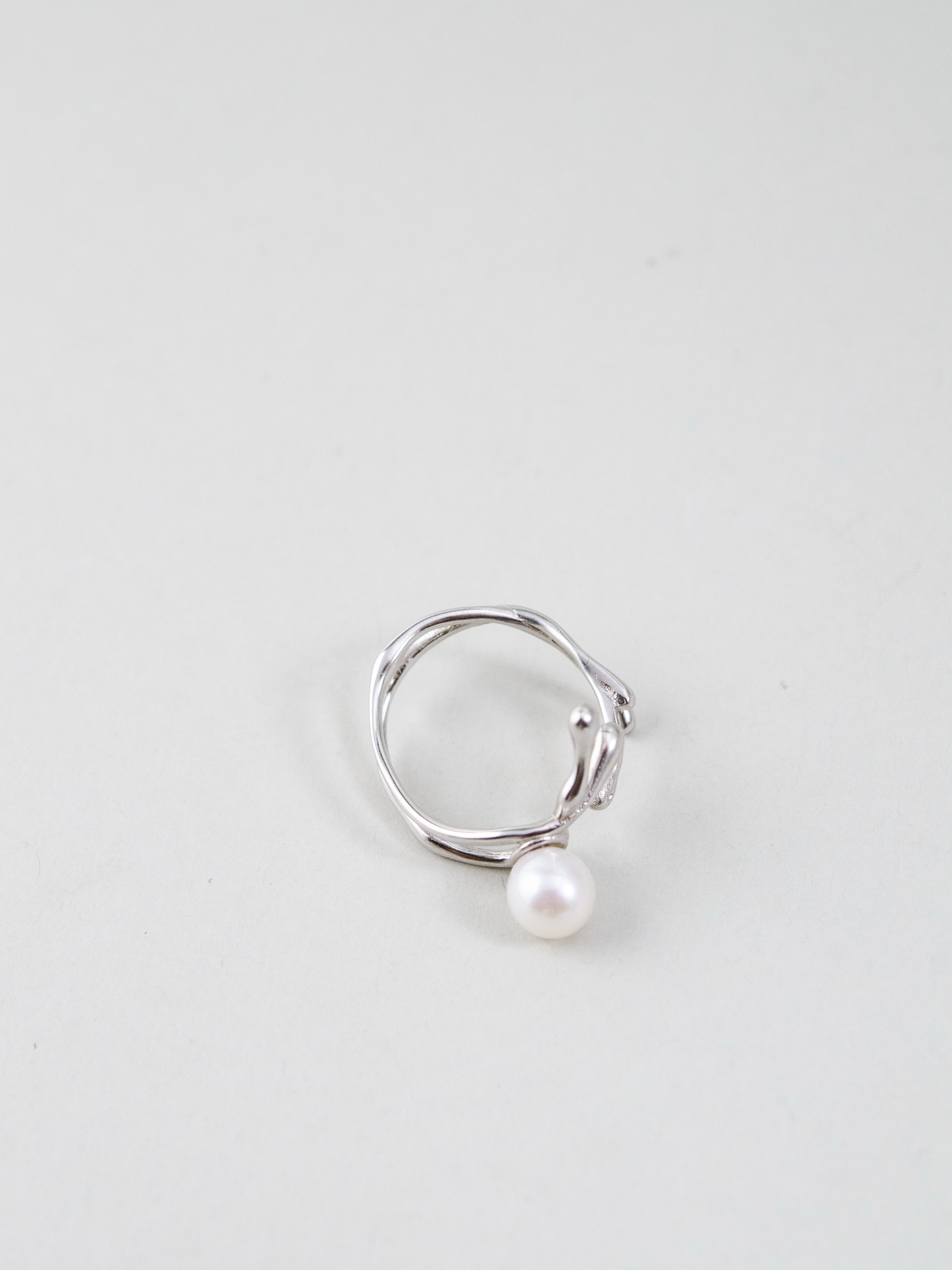 自然を思わせる流れるようなフォルムが印象的なリング。一粒の高品質パールを中心にあしらい、シルバーの光沢とパールの柔らかな輝きが絶妙に調和します。繊細ながら存在感のあるデザインは、手元に上品さと個性を添え、日常を特別なものに変えるアクセントとして活躍します。